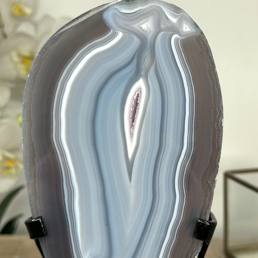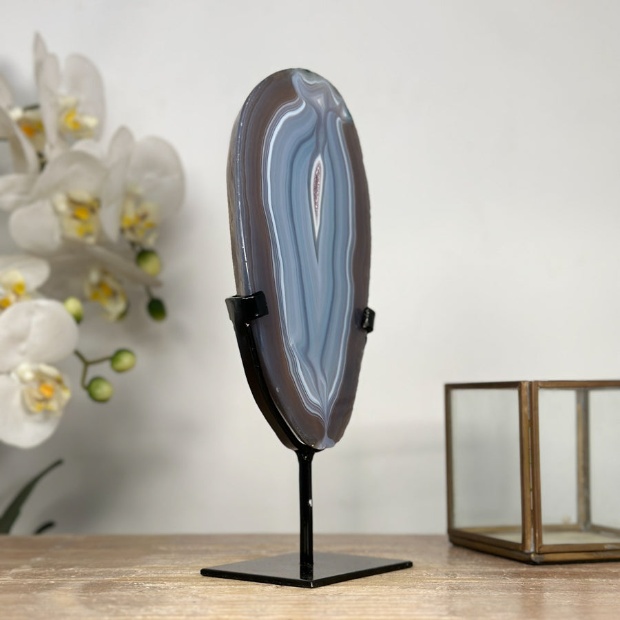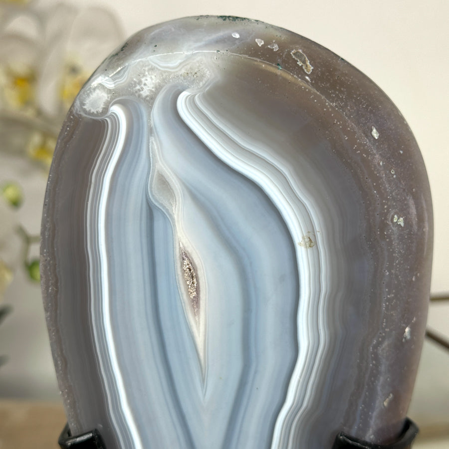 Blue Banded Agate Slice with Metal Stand - MWS2133