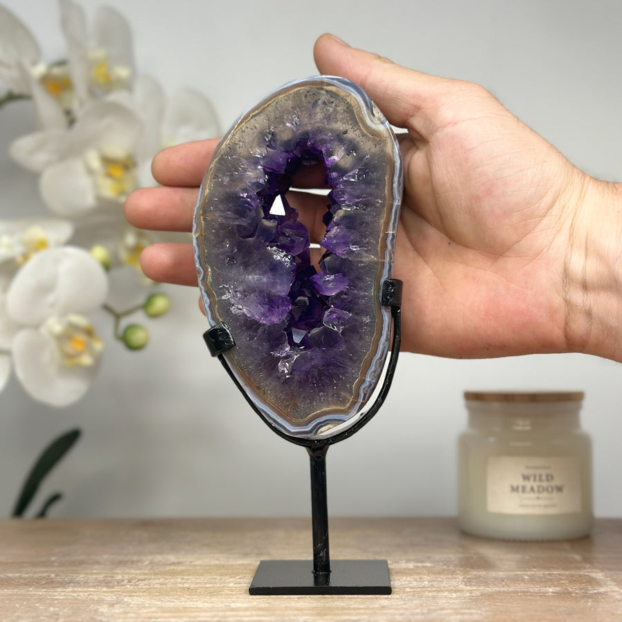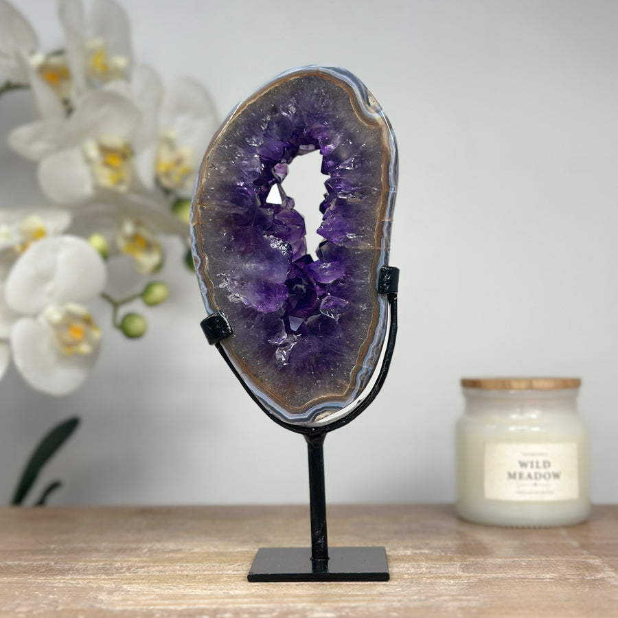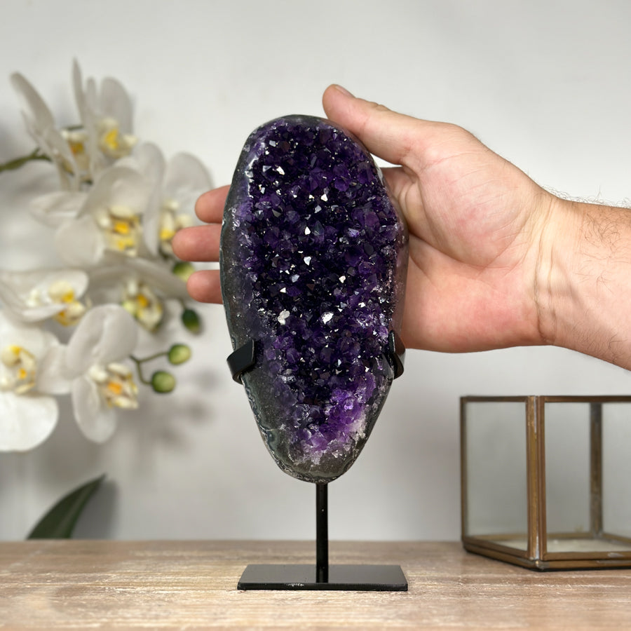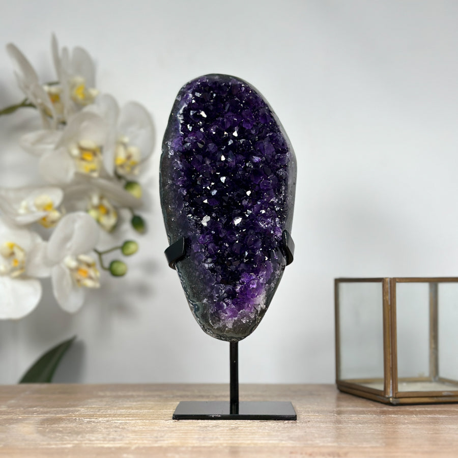 Deep Purple Amethyst Geode - Metallic Stand Included - MWS1814