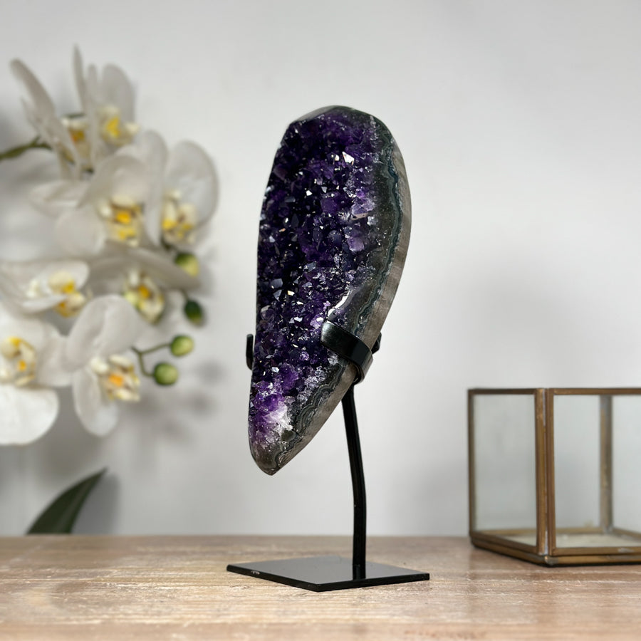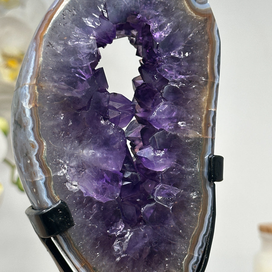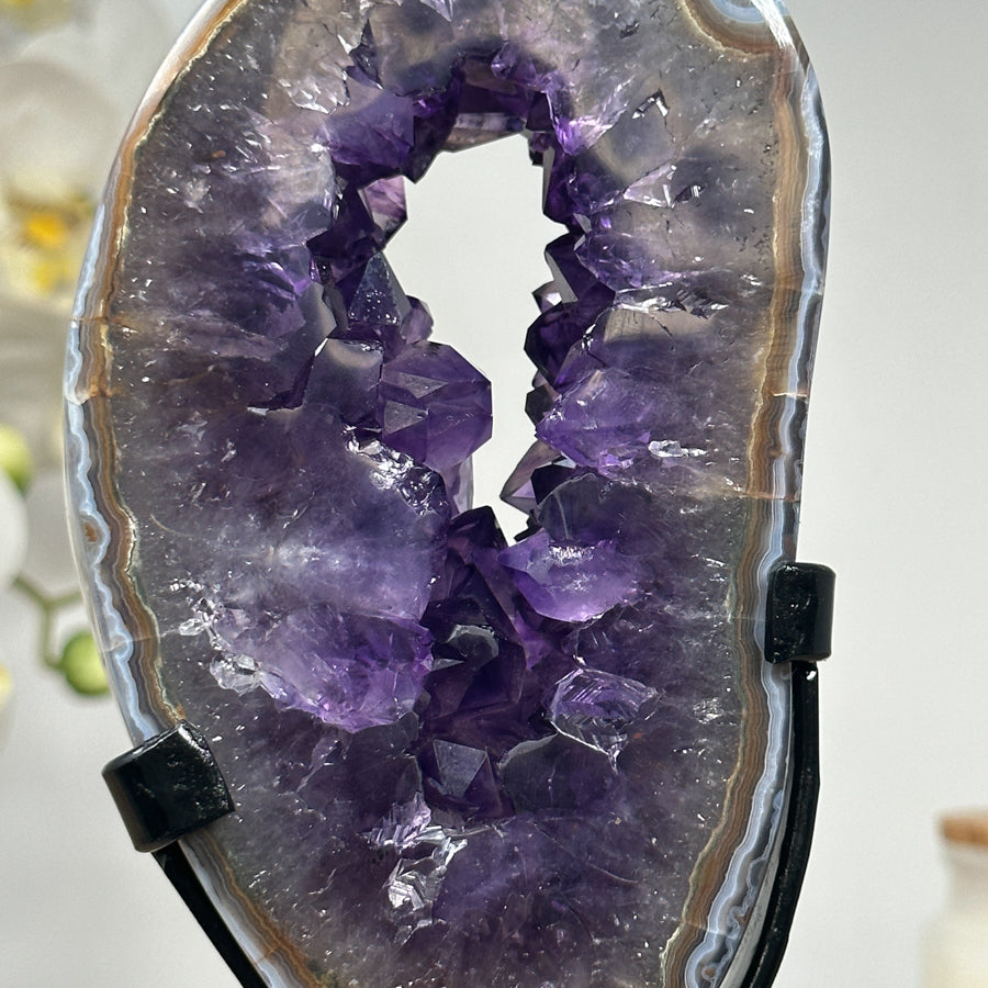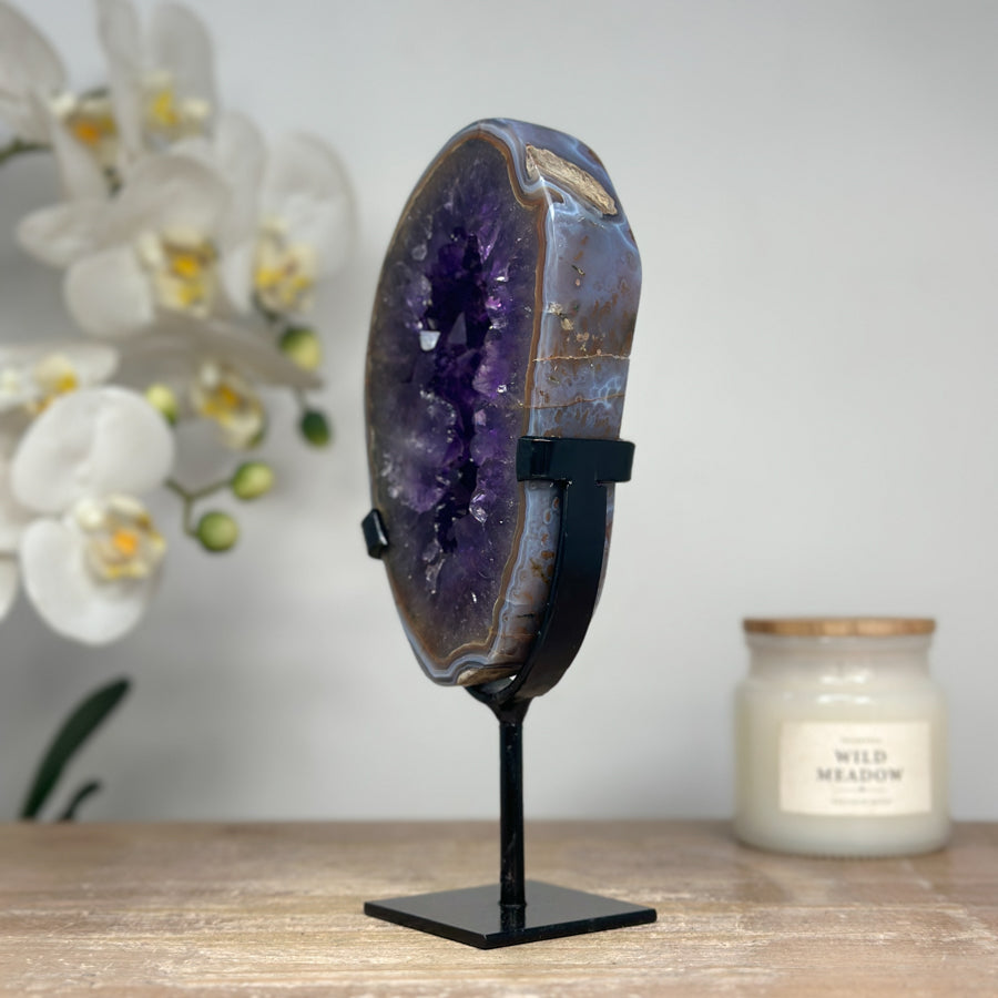 Deep Purple Amethyst Geode - Metallic Stand Included - MWS1814