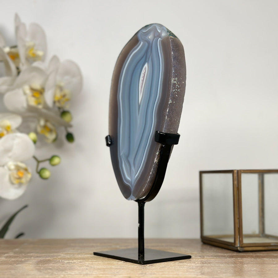 Decorative Blue Agate Slice with Metal Base – Natural Polished Stone from Uruguay - MWS2003