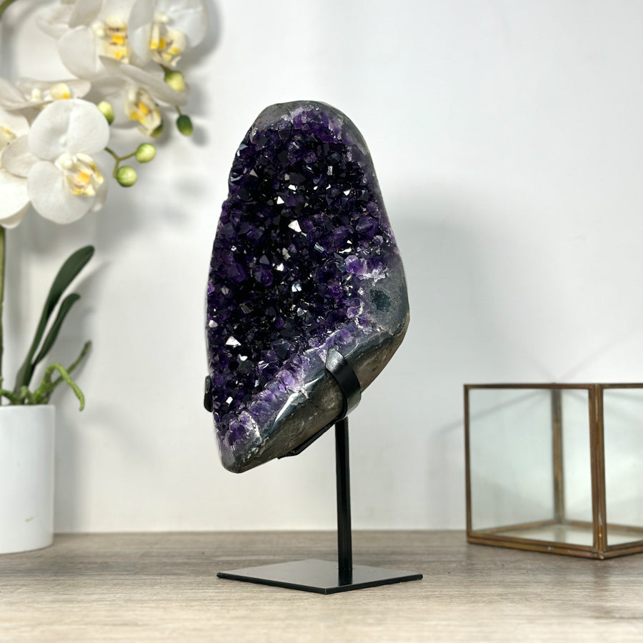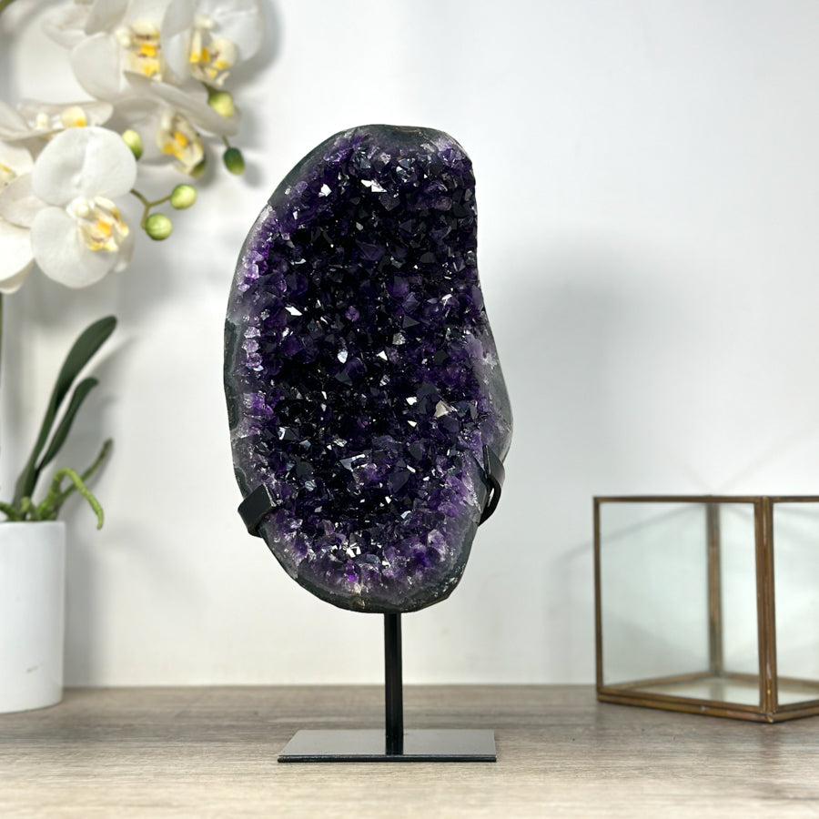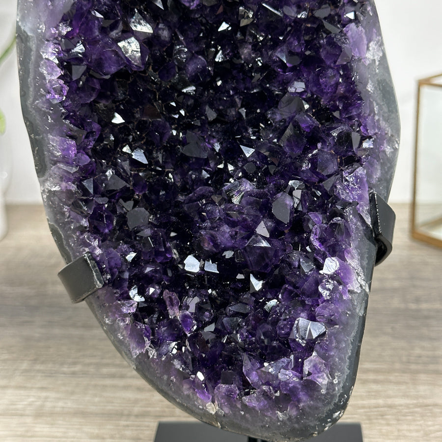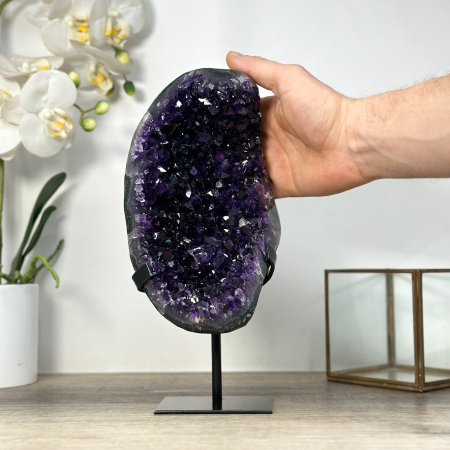 Deep Purple Amethyst Geode From Uruguay on Metal Stand – Premium Home Decor Accent - MWS2488