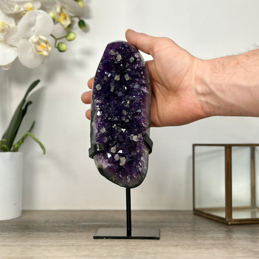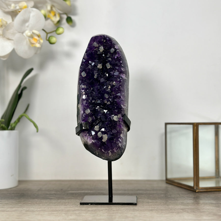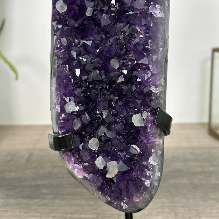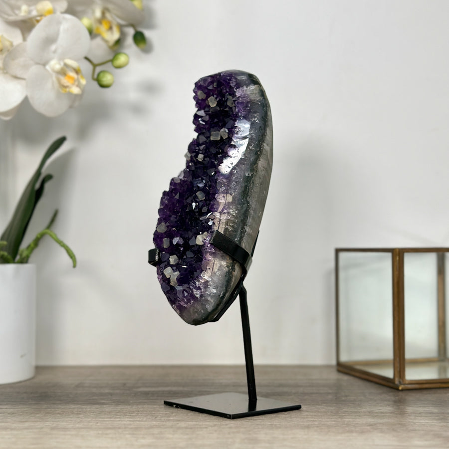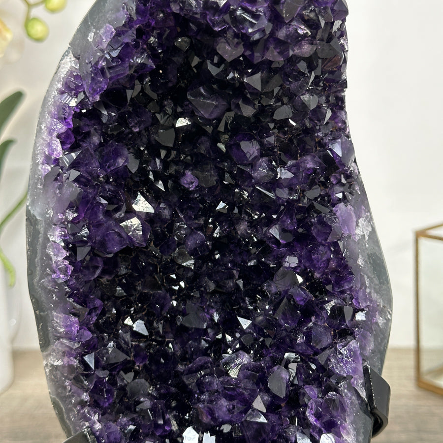 Deep Purple Amethyst Geode From Uruguay on Metal Stand – Premium Home Decor Accent - MWS2488