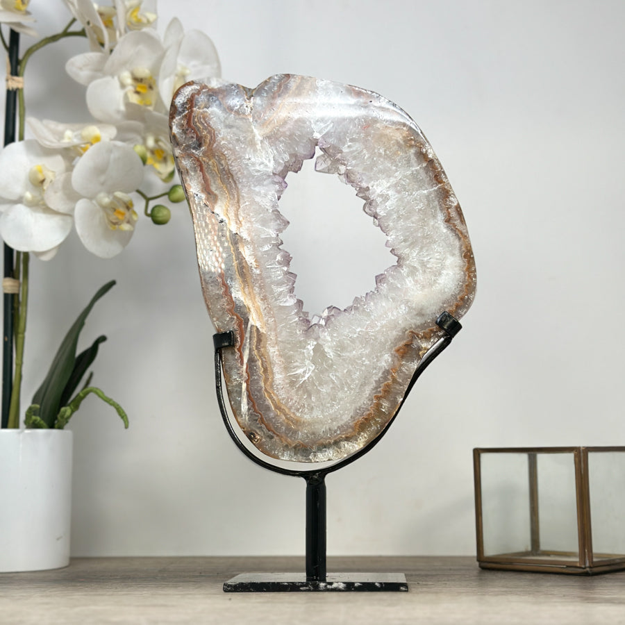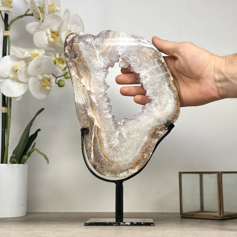 Large Polished Quartz Slice with Metal Stand - Perfect for Home Decor - MWS2021