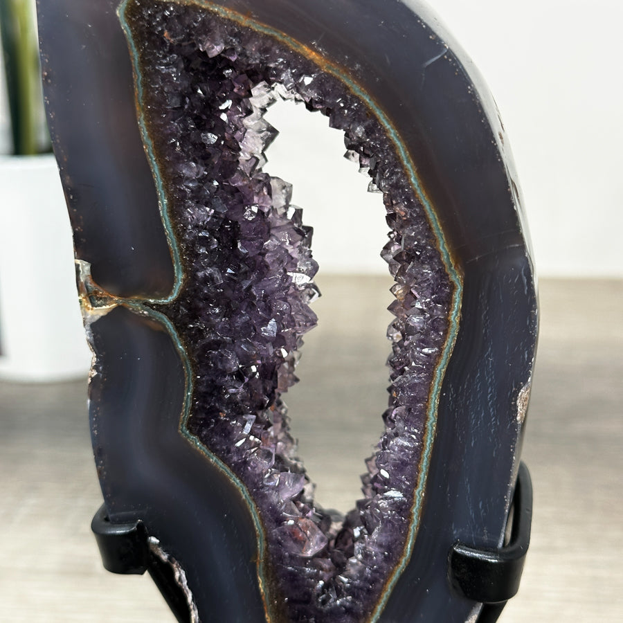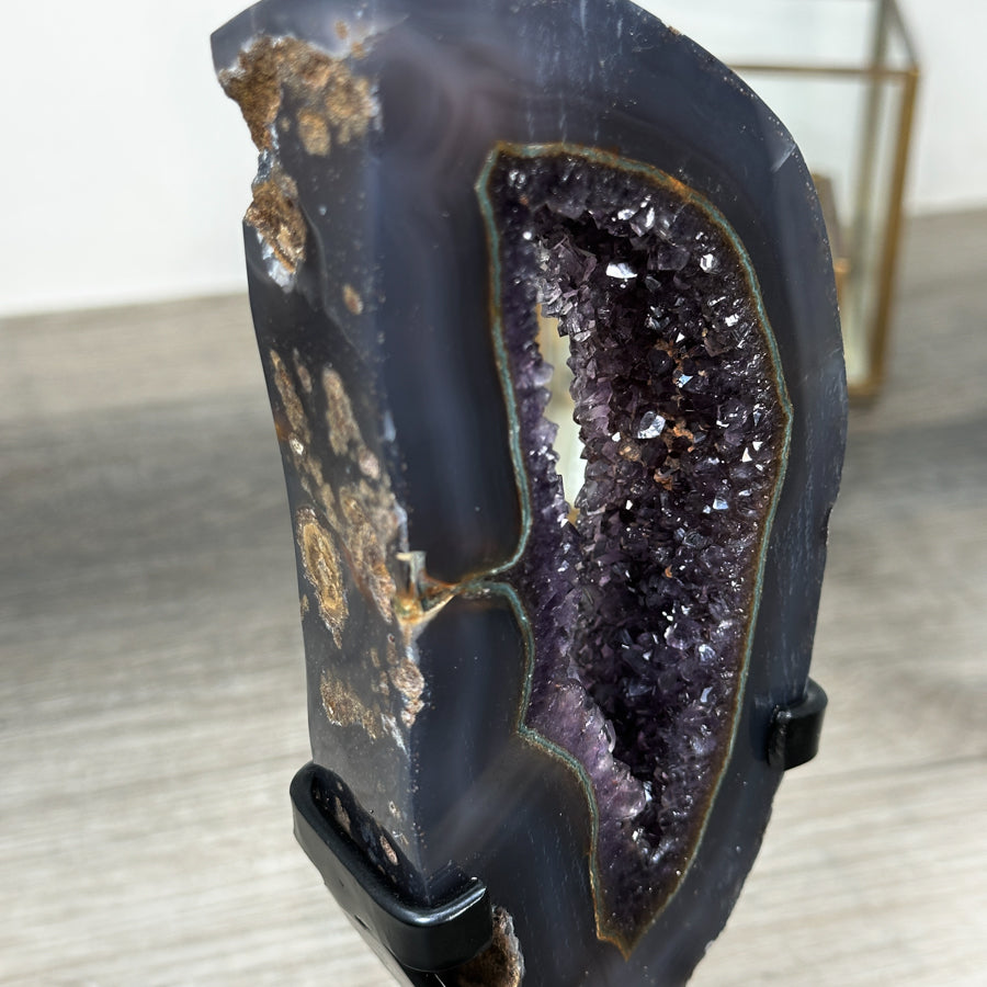 Natural Agate & Amethyst Geode Slice Portal with Metallic Stand - MWS1567