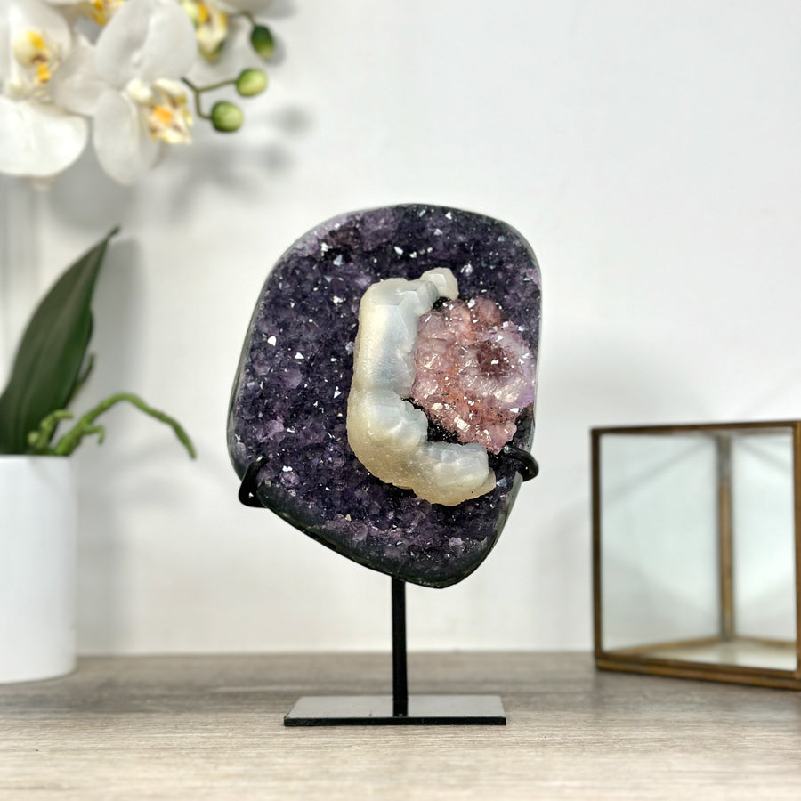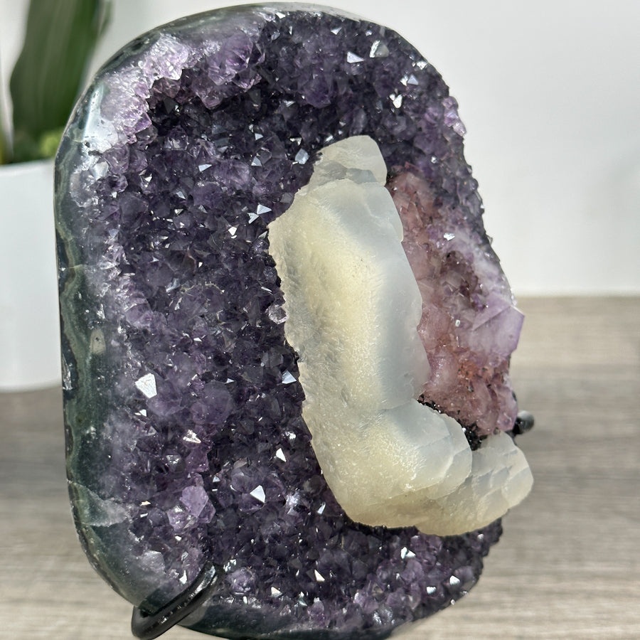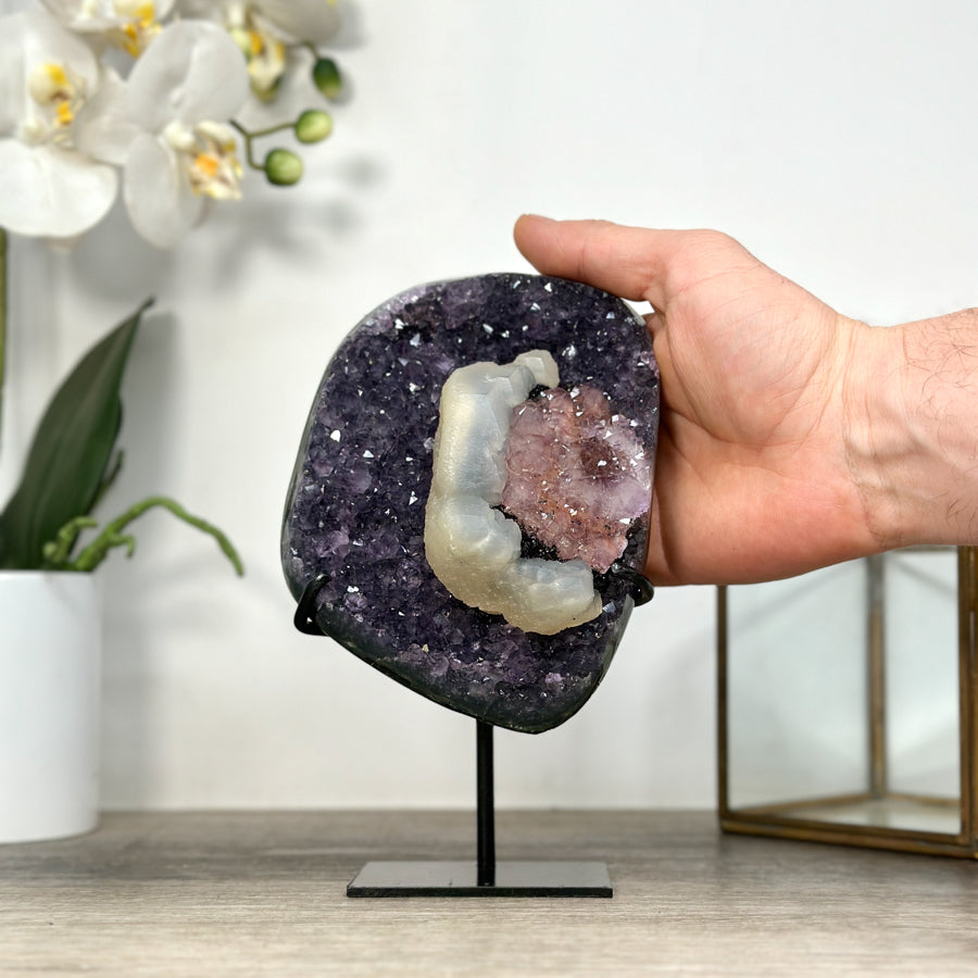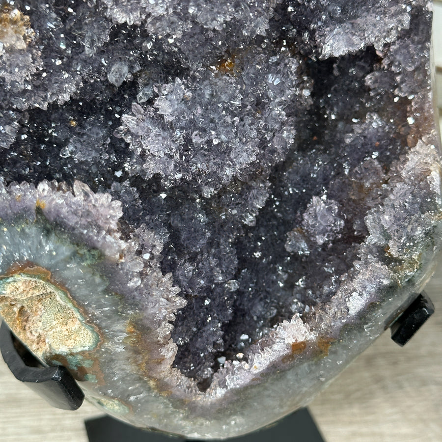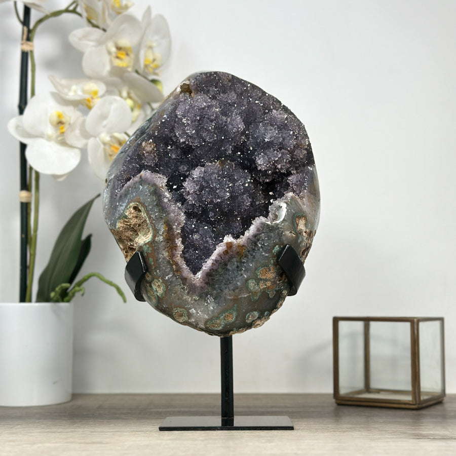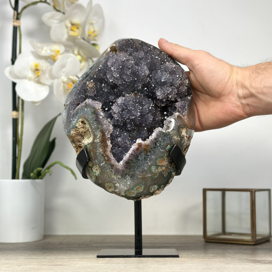 Natural Amethyst Geode with Agate Shell and Metallic Stand - MWS2464