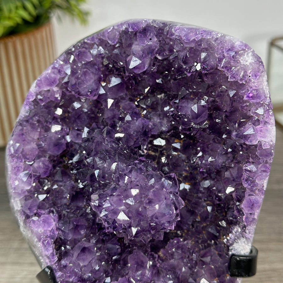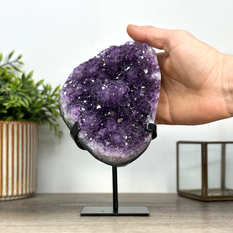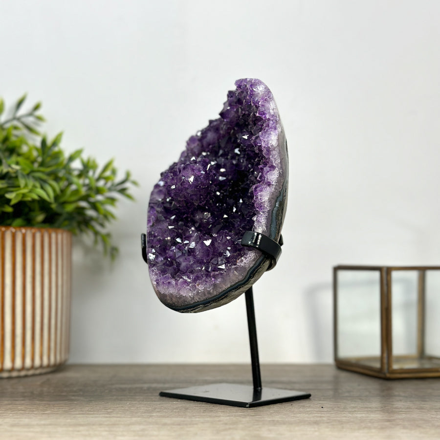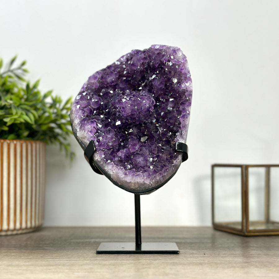 Natural Amethyst Crystal Geode, Metallic Stand Included - MWS2157