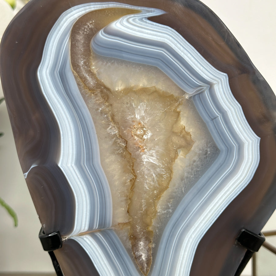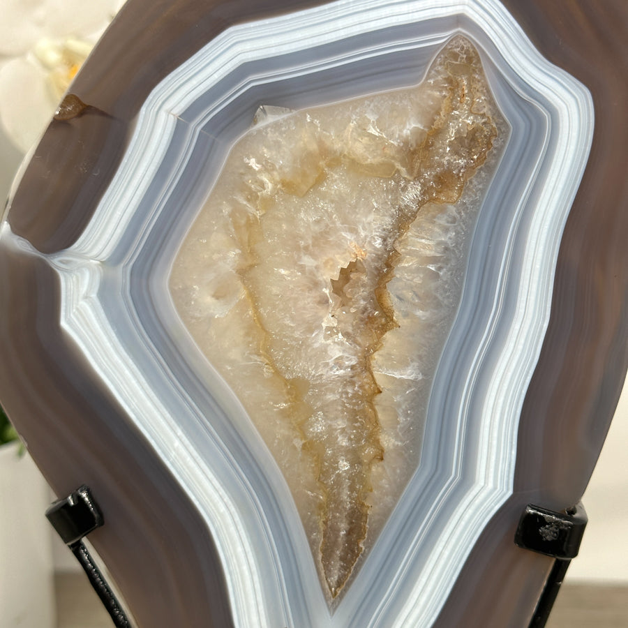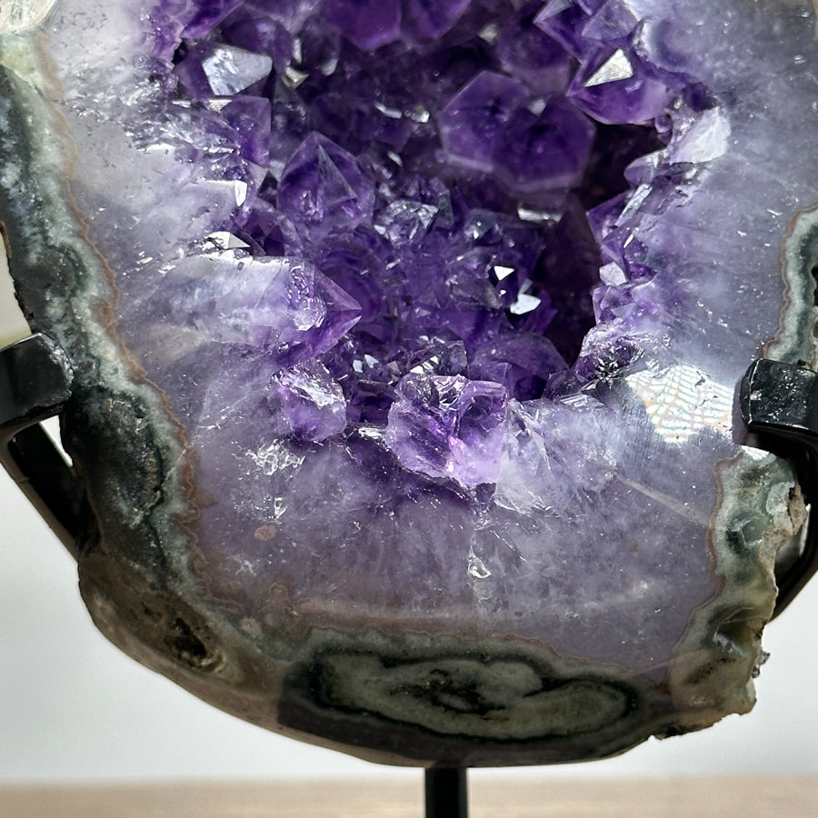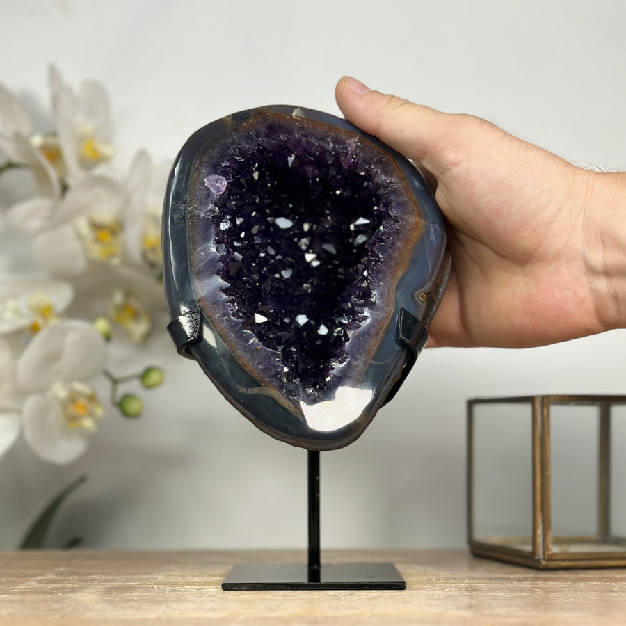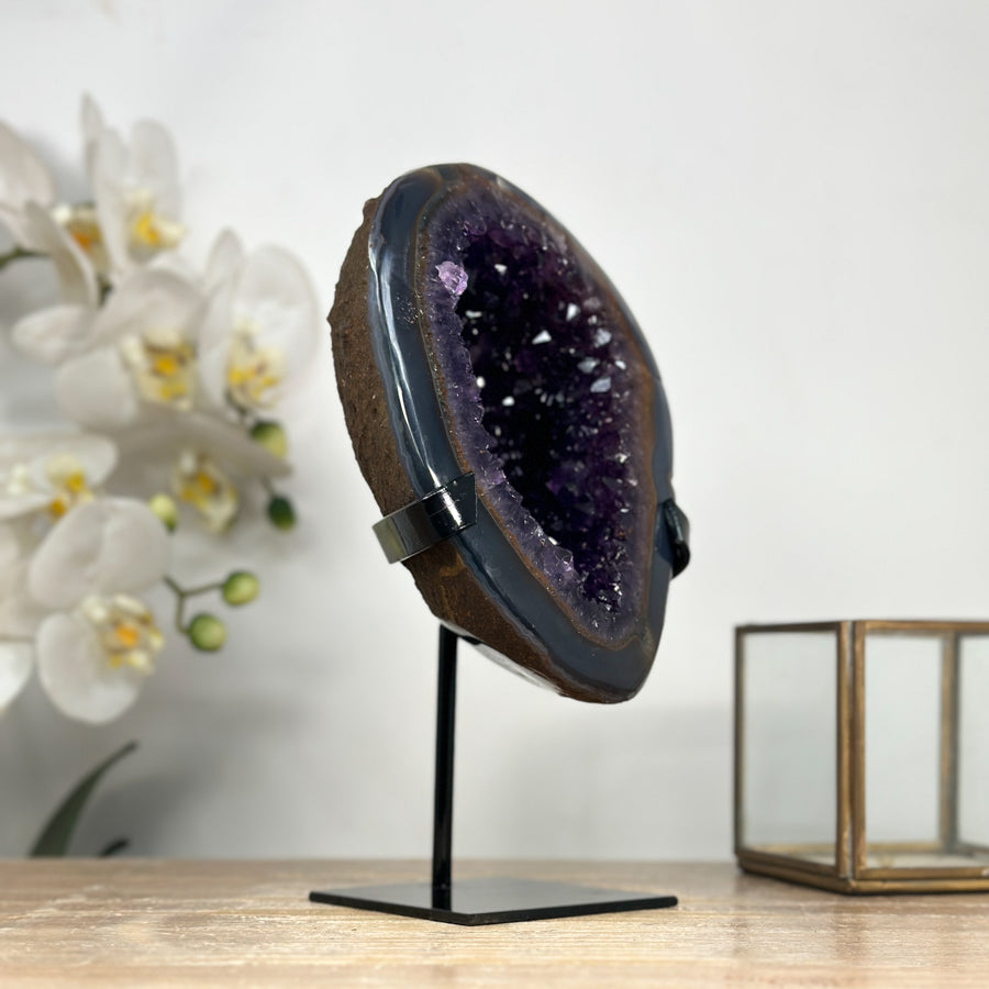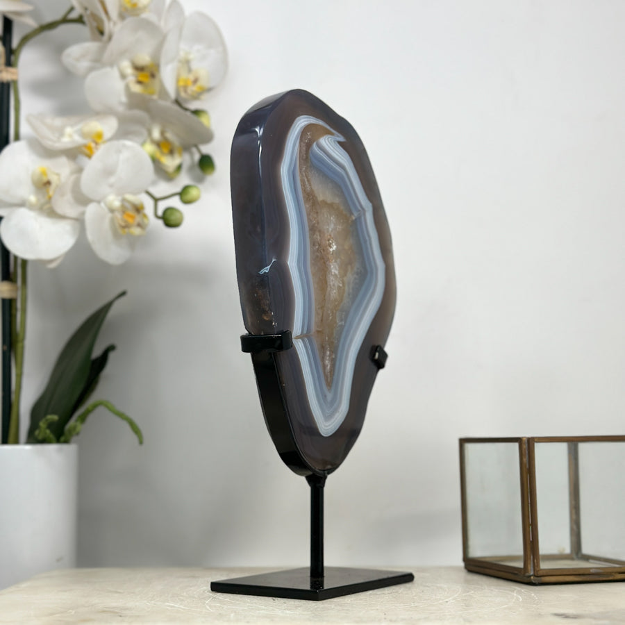 Natural Blue Banded Agate & Amethyst Geode, Metallic Stand Included - MWS1695