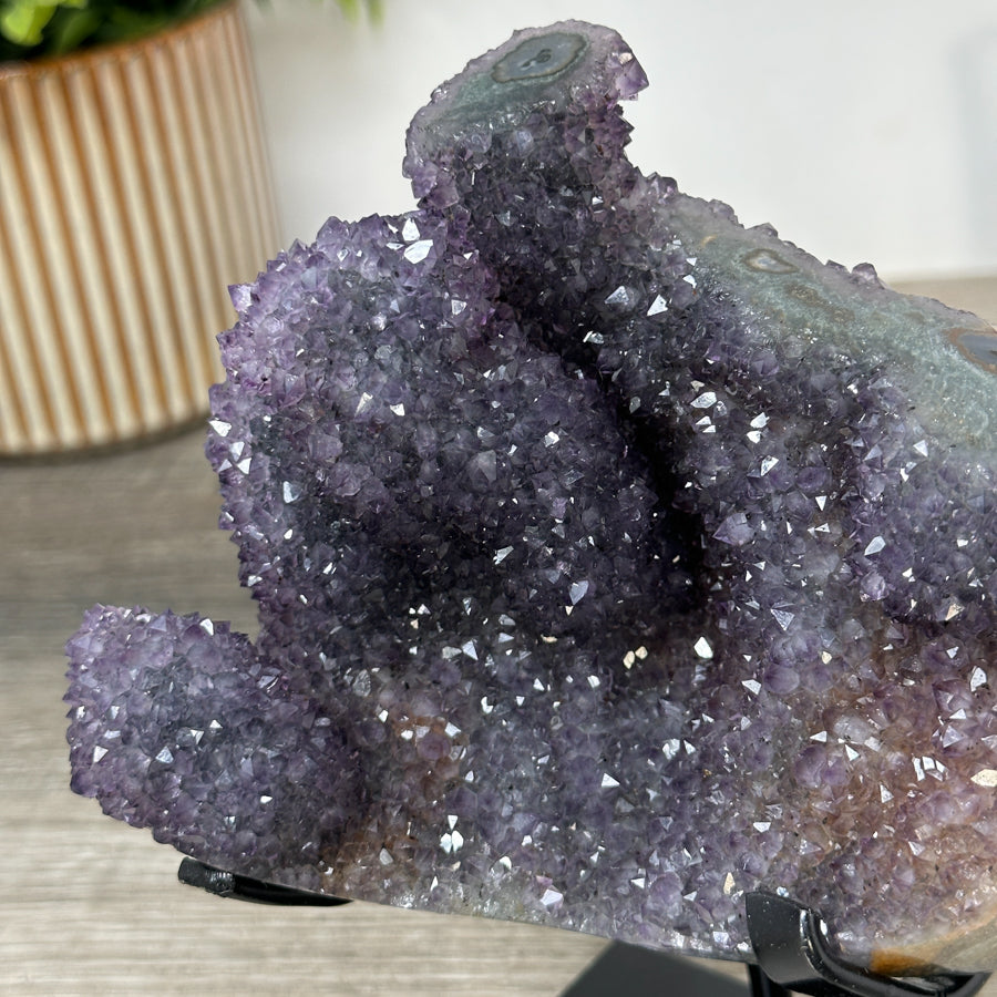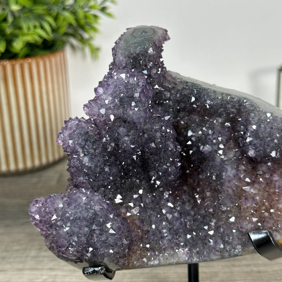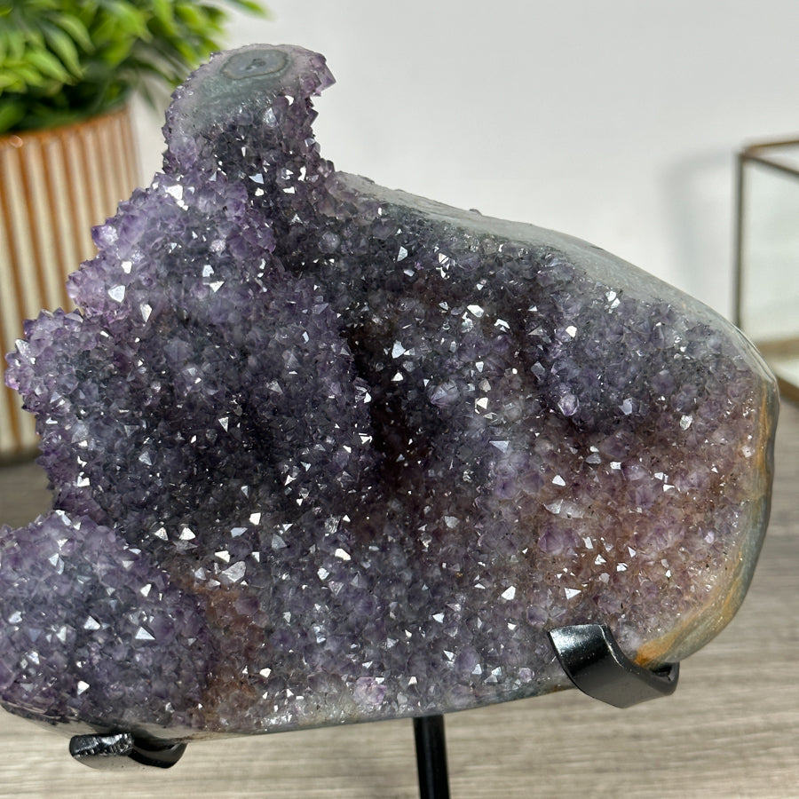 Natural Amethyst Stalactite Formation on Metal Stand – Elegant Crystal Display from Uruguay - MWS2408