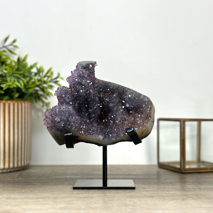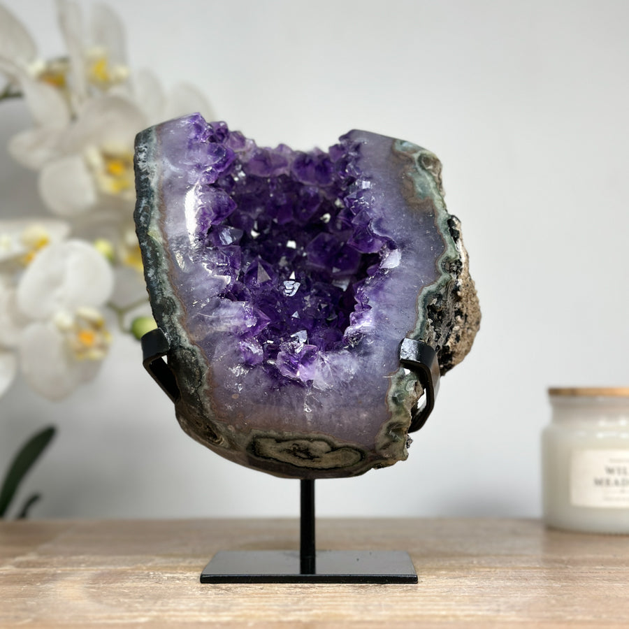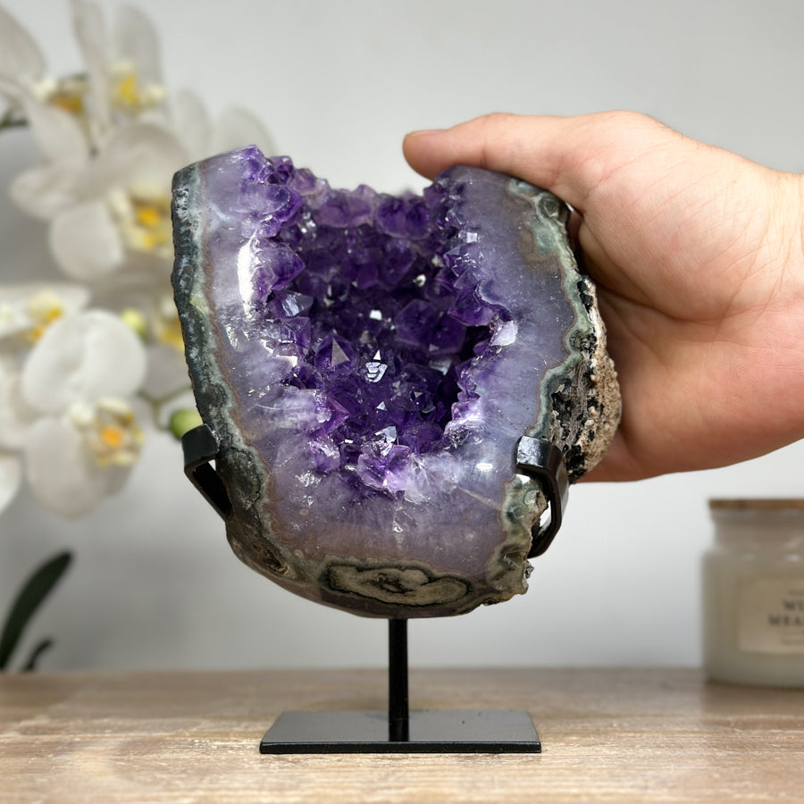 Natural Amethyst Stone Geode with Metallic Stand - MWS1706