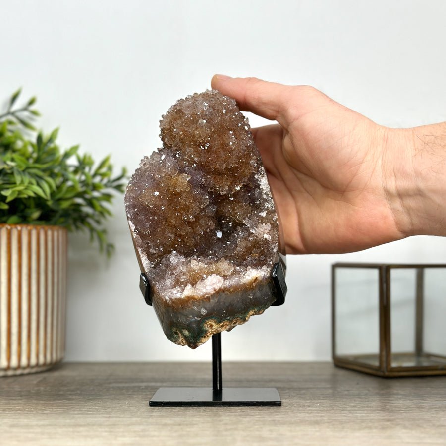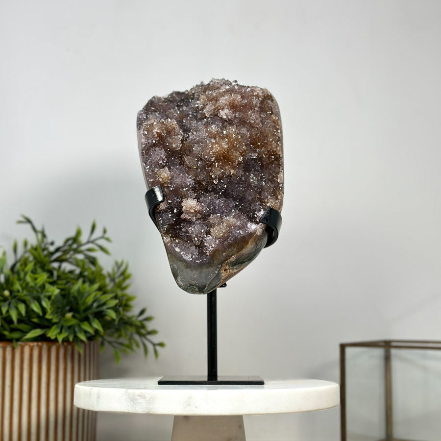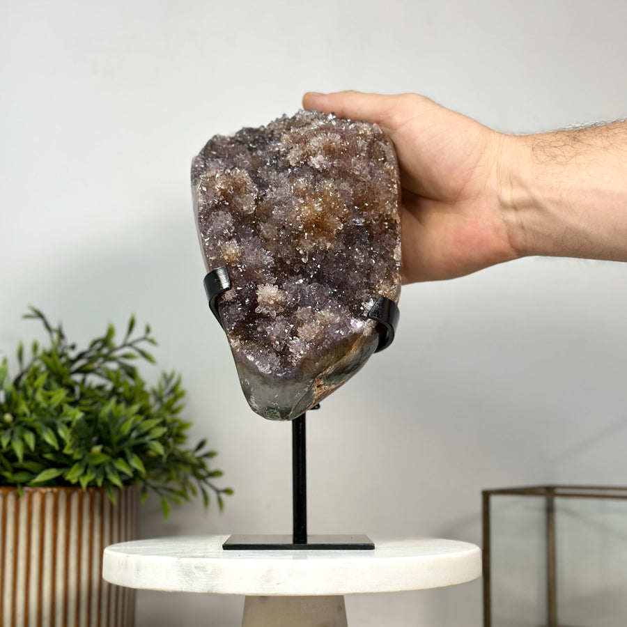 Natural Amethyst Stone with Calcite Crystal Formation, Metallic Display Included - MWS2355