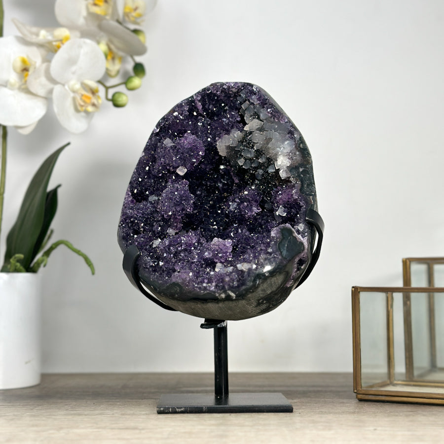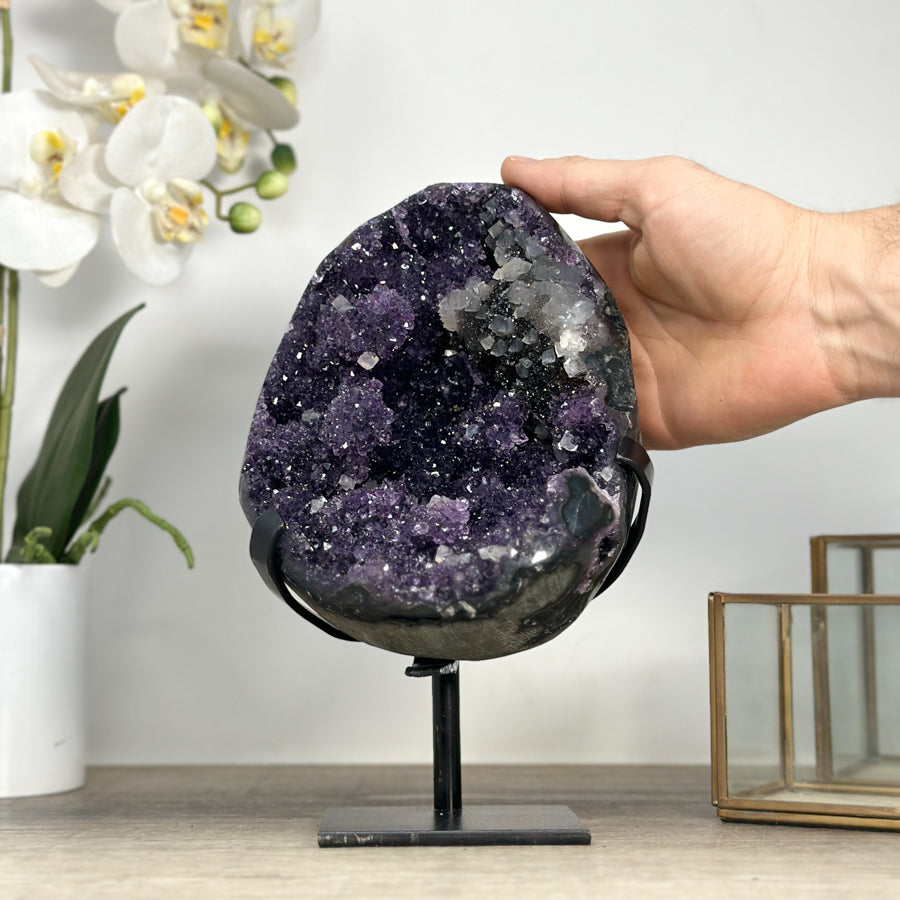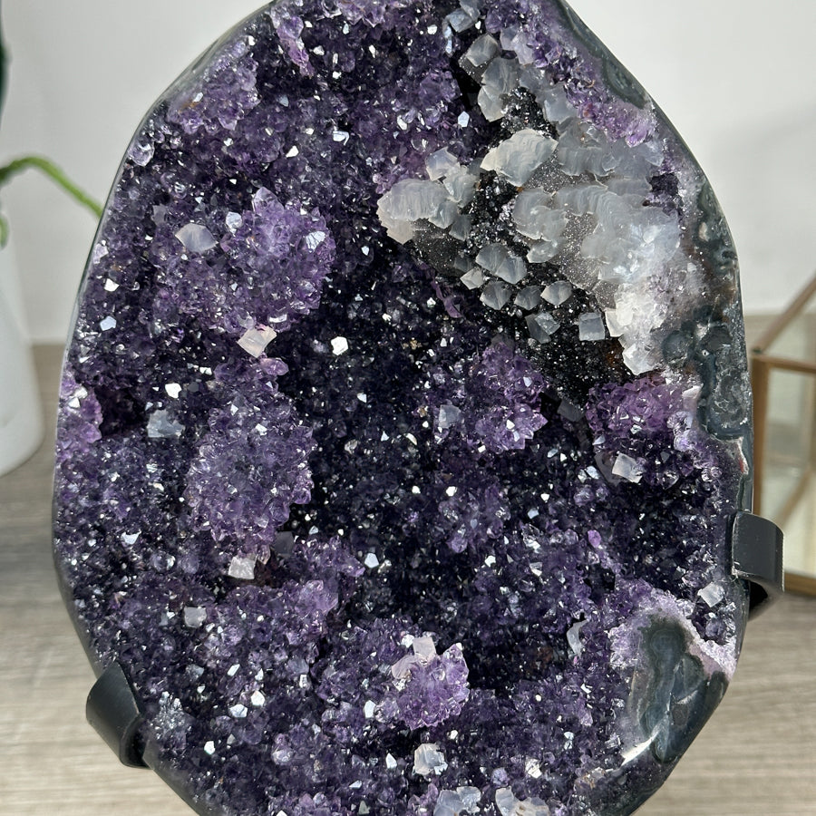 Natural Sparkling Amethyst Geode with Calcite & Hematite Inclusions - MWS2218