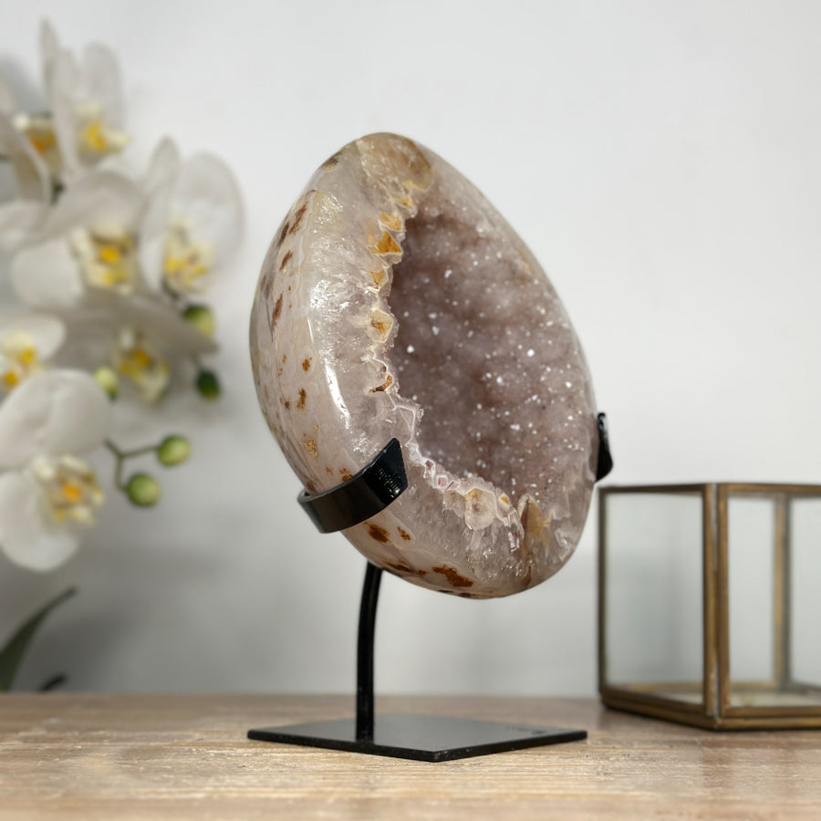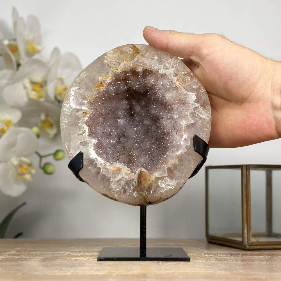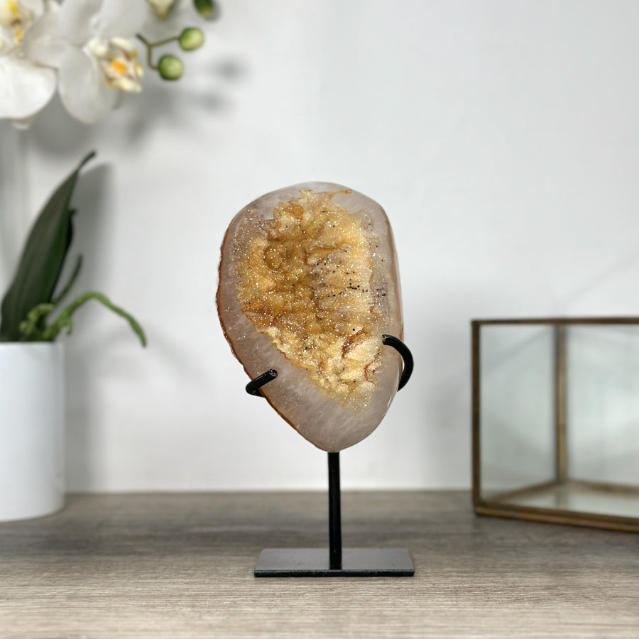 Natural Sugar Druzy Quartz Geode with Stand - MWS1969