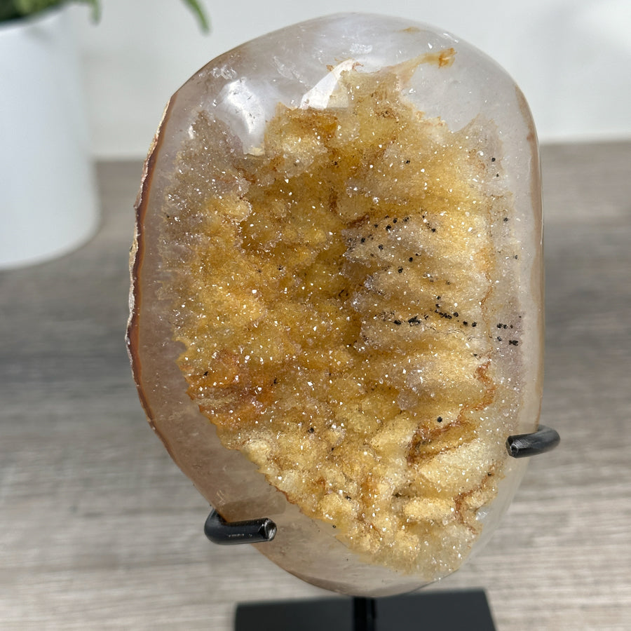 Natural Quartz Geode with Yellow Sugar Quartz Druzy Crystals - MWS2517