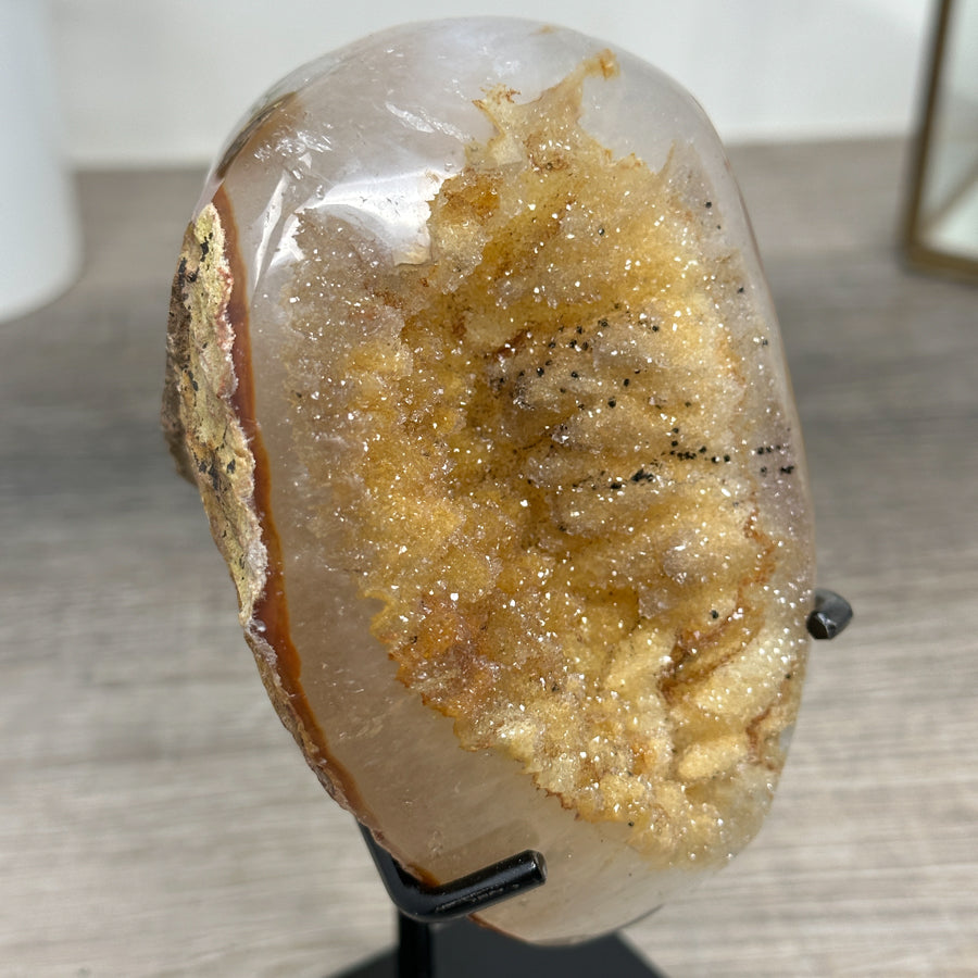 Natural Sugar Druzy Quartz Geode with Stand - MWS1899