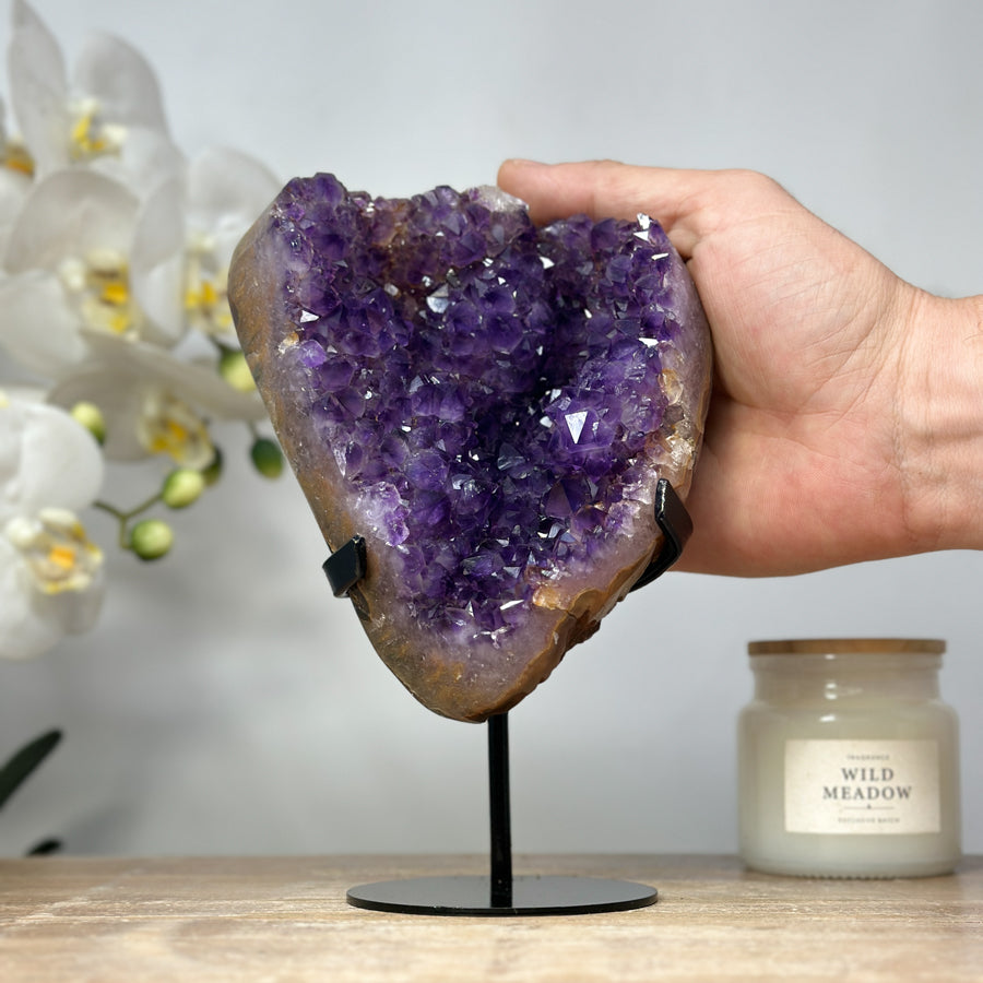 Natural Uruguayan Amethyst Heart Carving with Metal Stand - HST0292