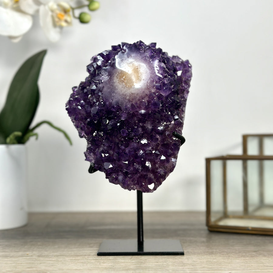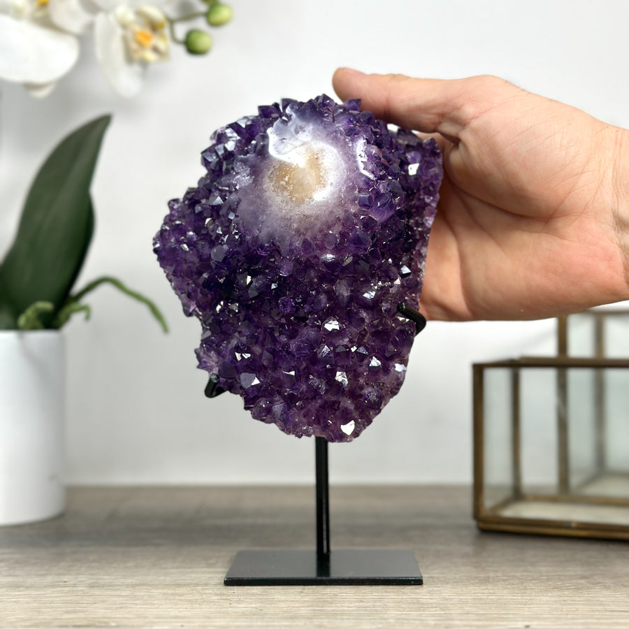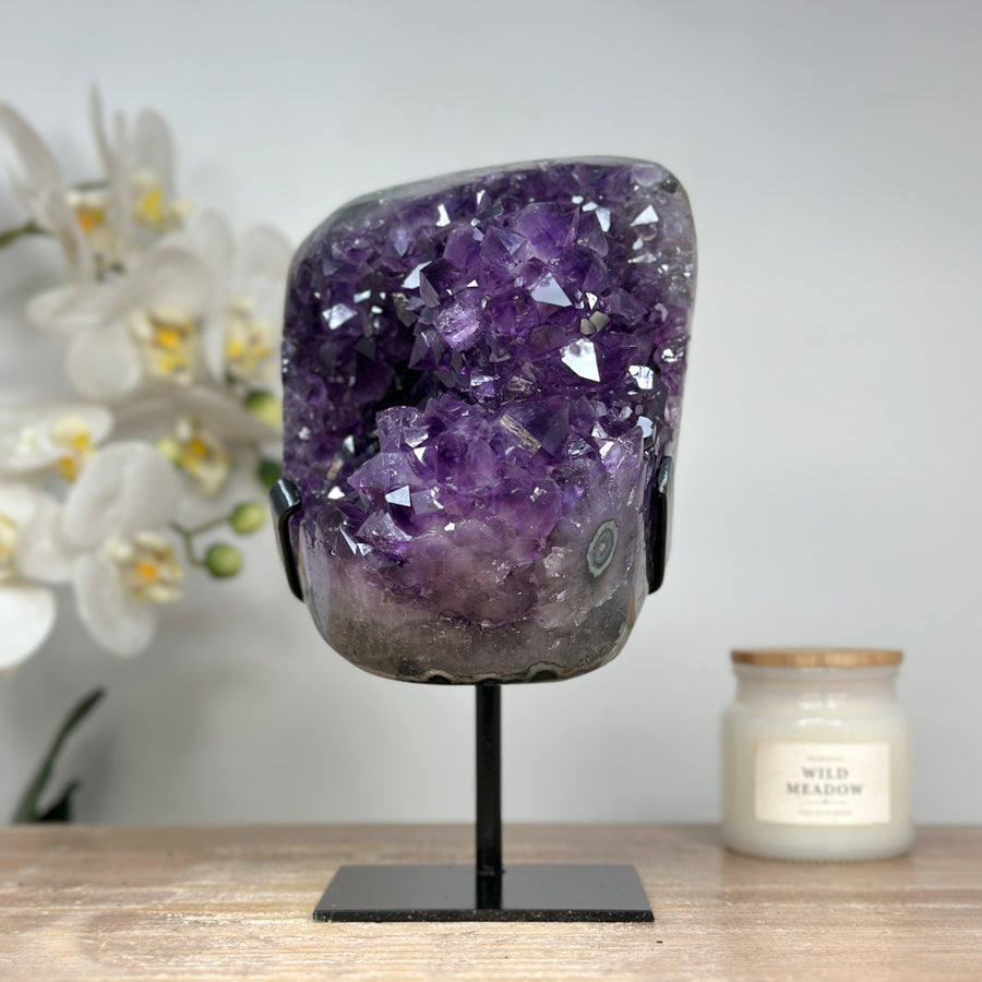 Natural Uruguayan Amethyst Crystal Formation with Stand