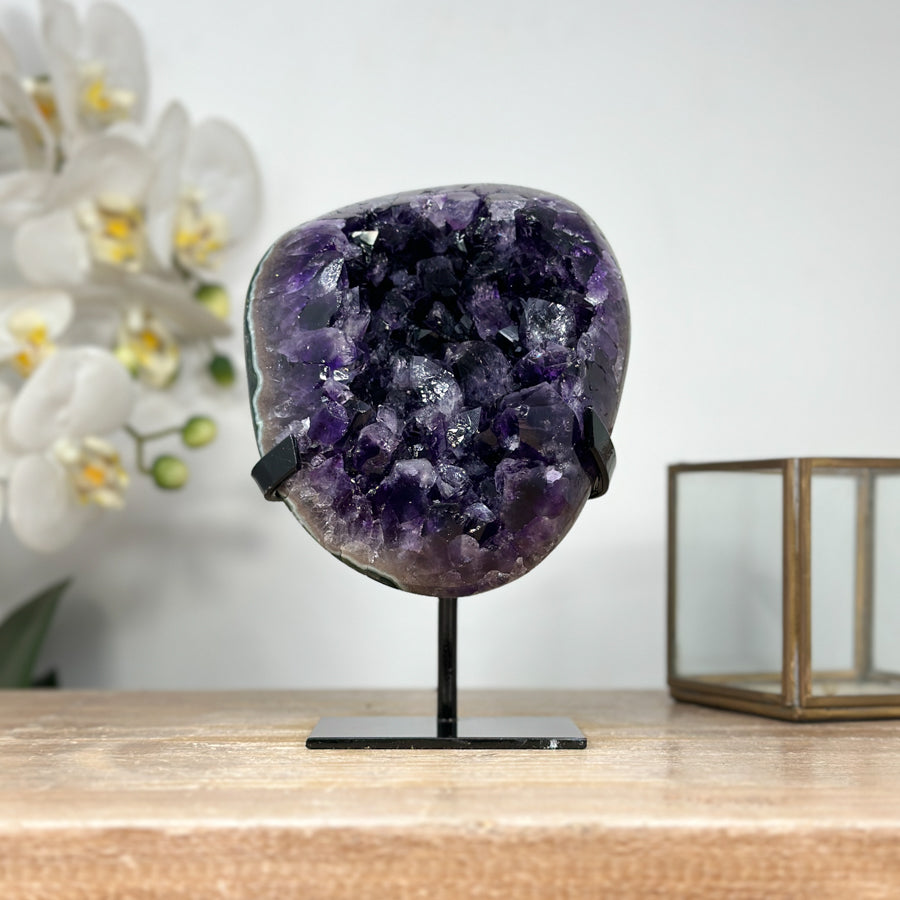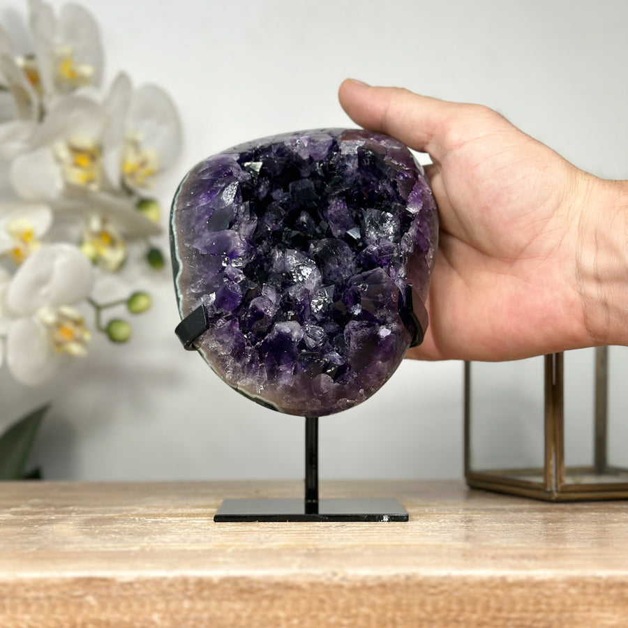 Natural Uruguayan Amethyst Geode, Metallic Stand included - MWS1839
