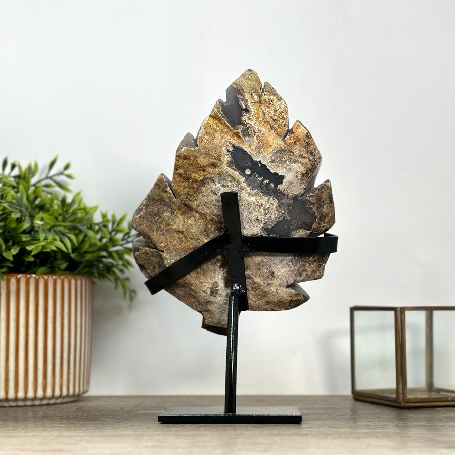 Amethyst & Agate Heart Carving with Metal Stand - HST0232