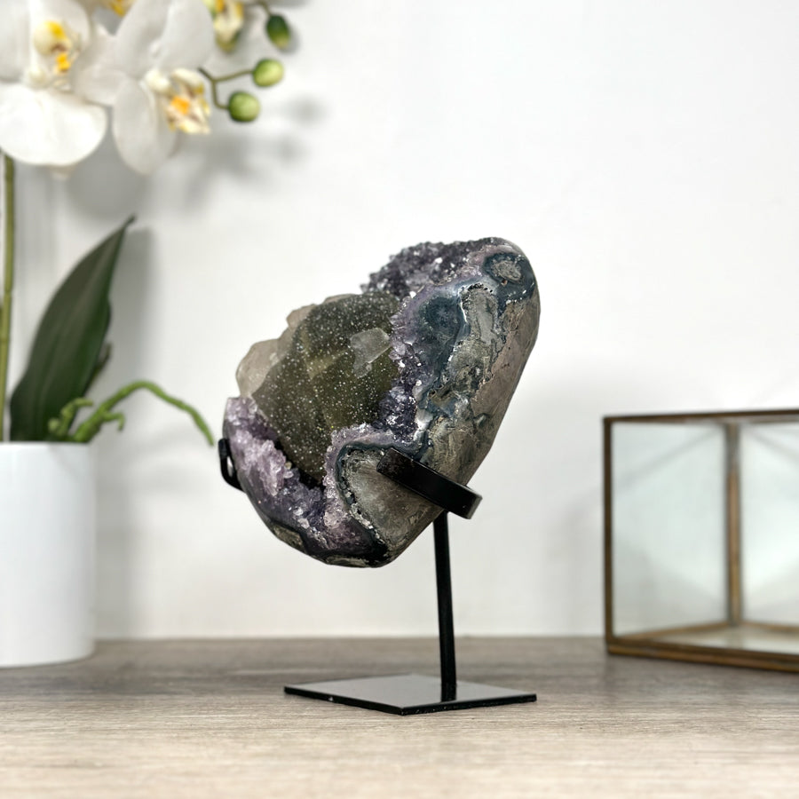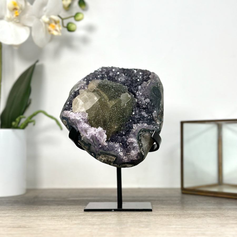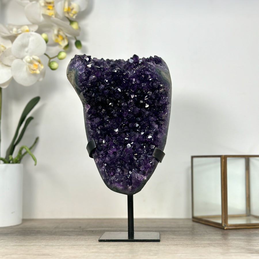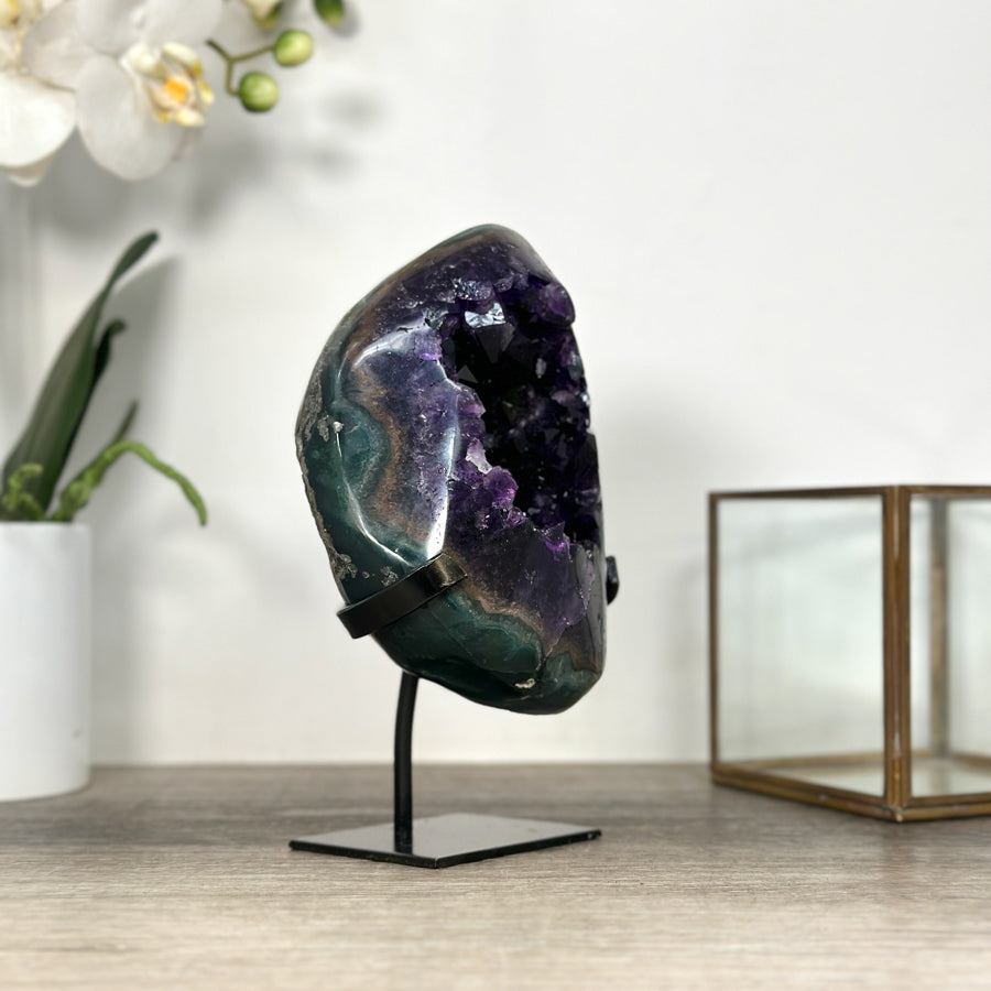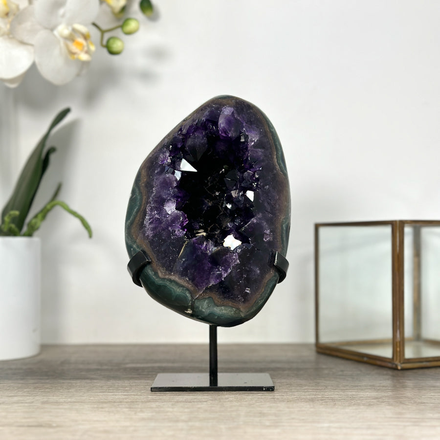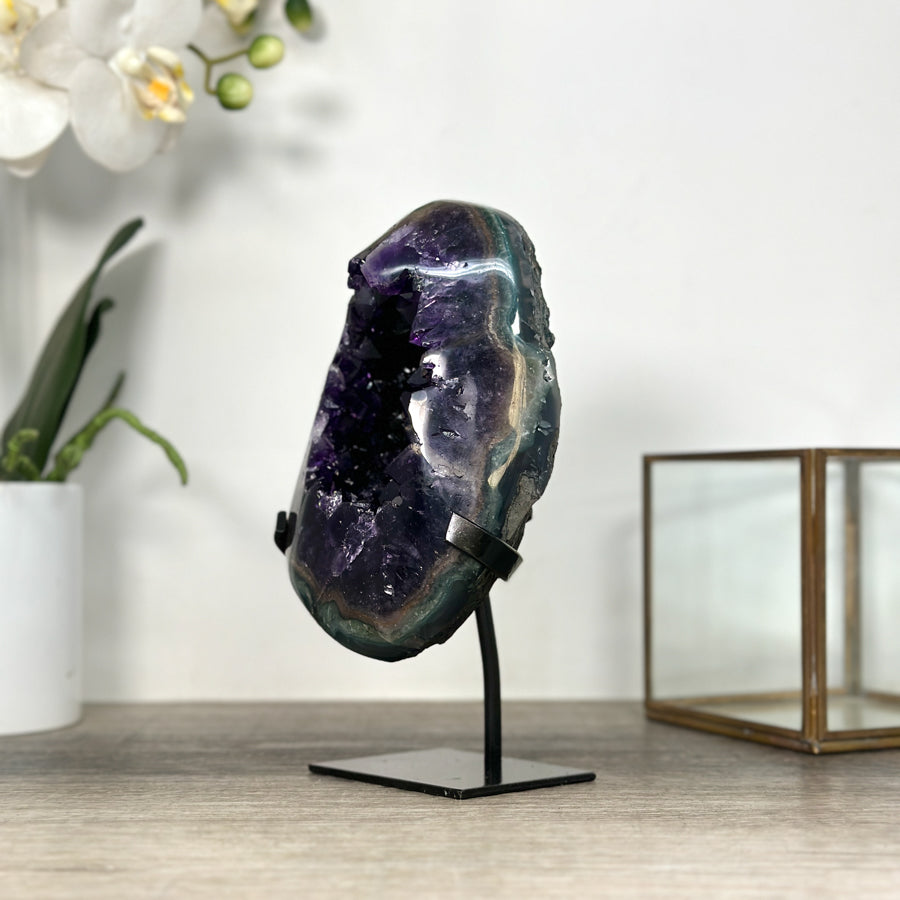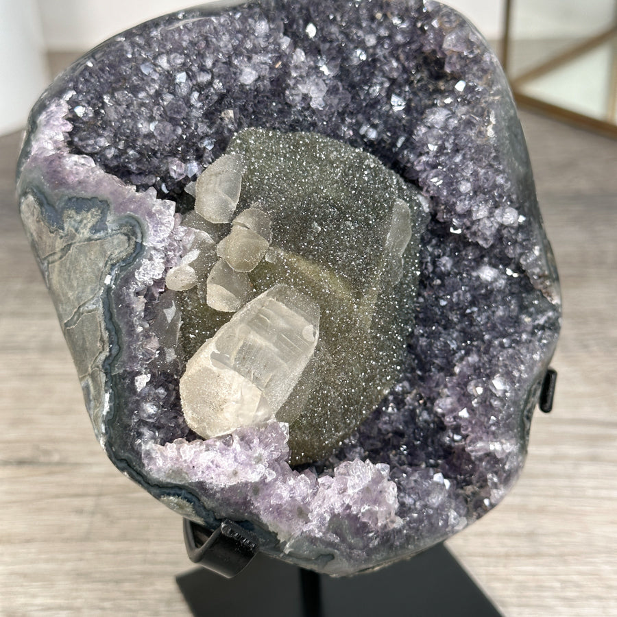 Top Quality Natural Amethyst Geode, Metallic Stand Inlcuded - MWS1752