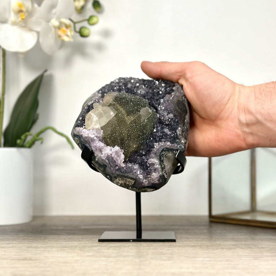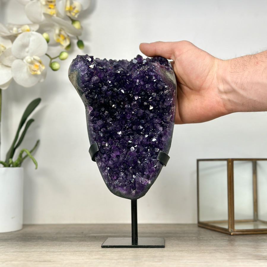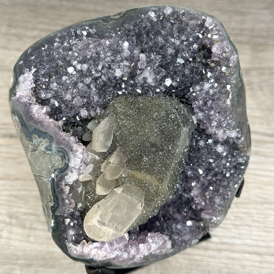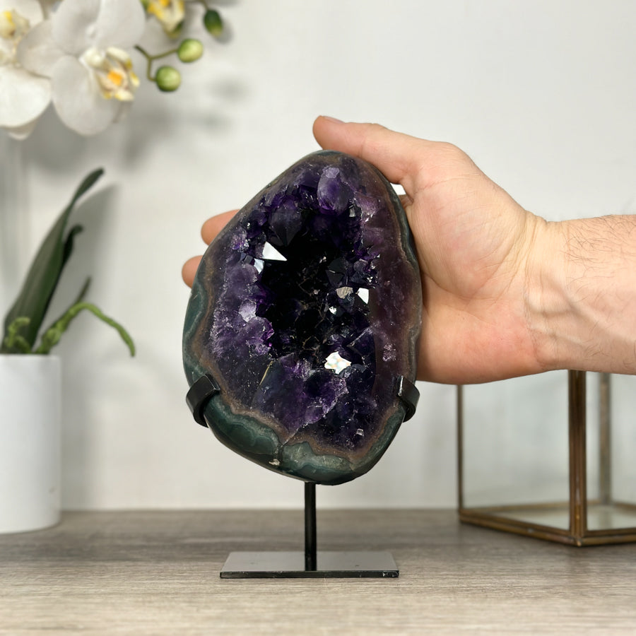 Top Quality Natural Amethyst Geode, Metallic Stand Inlcuded - MWS1817