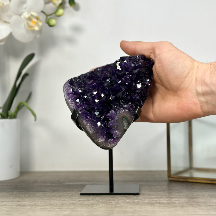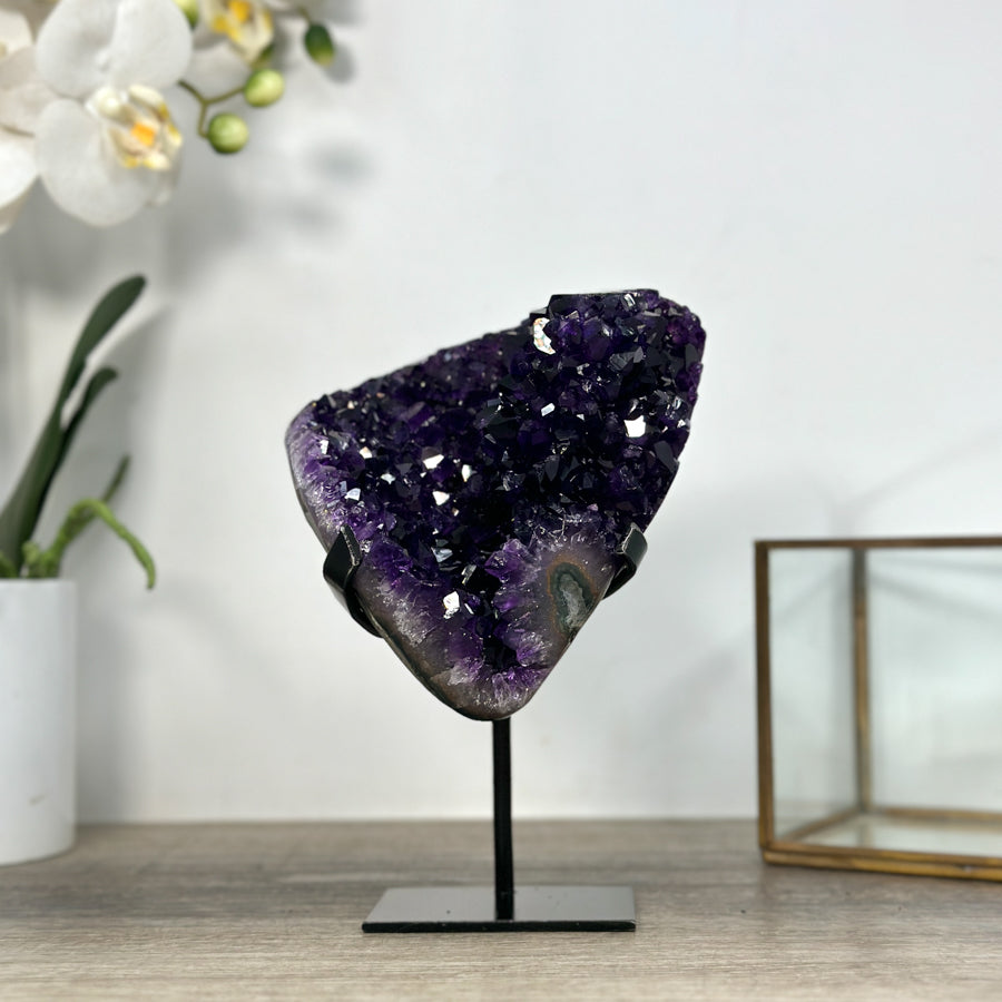 Amethyst Crystal Cluster on Metal Stand – Natural Purple Home Décor Accent - MWS2415