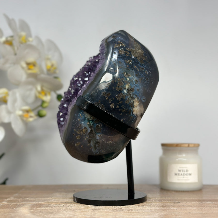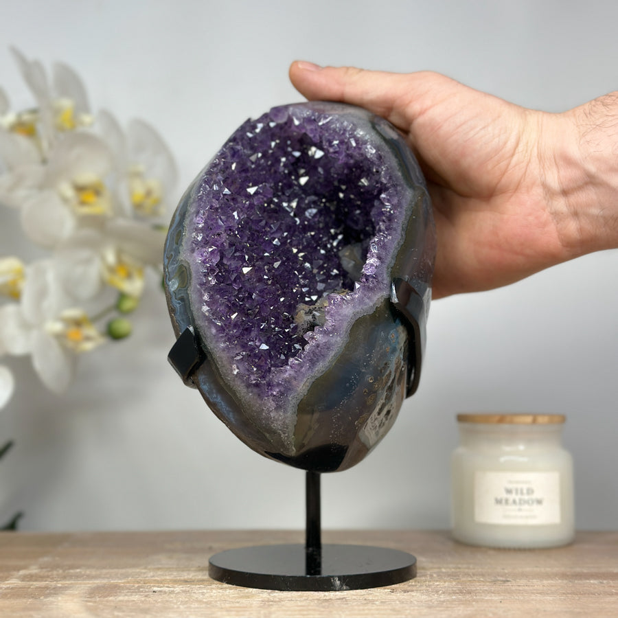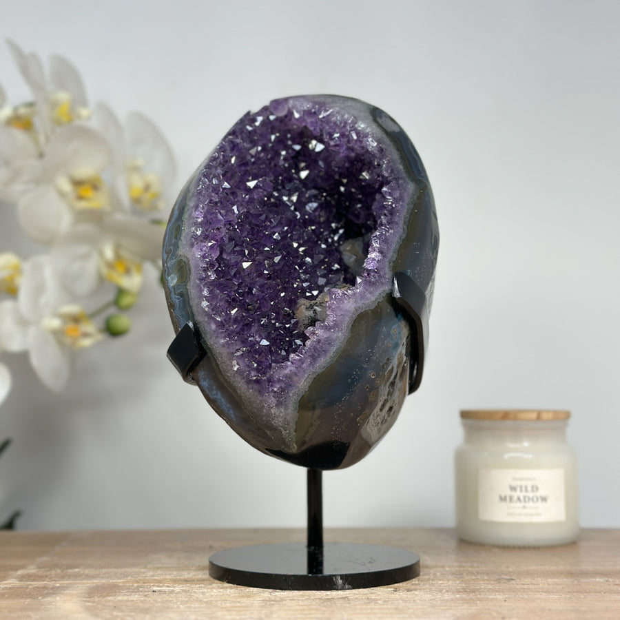 Amethyst Geode with Metallic Stand - Top grade Uruguayan Crystal - MWS2421