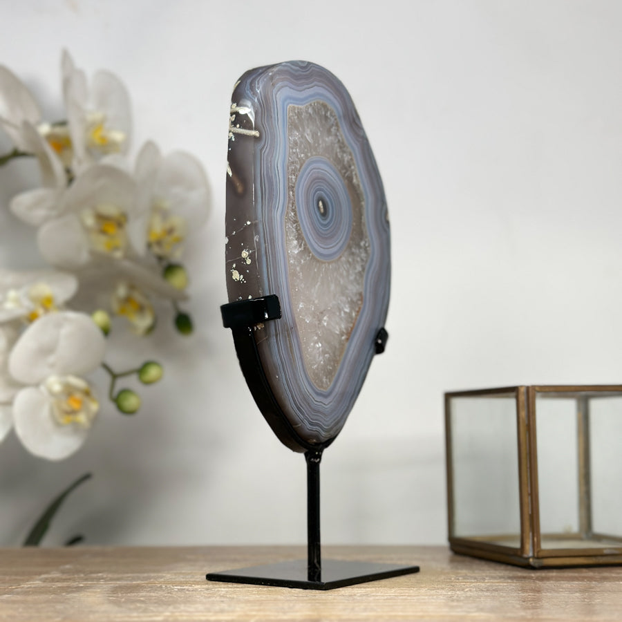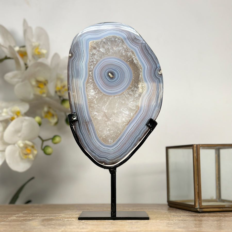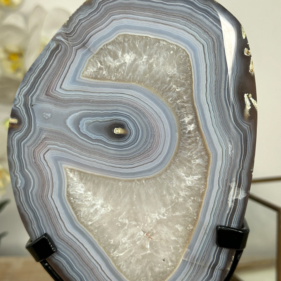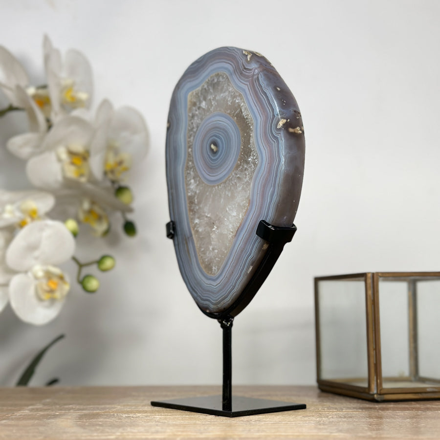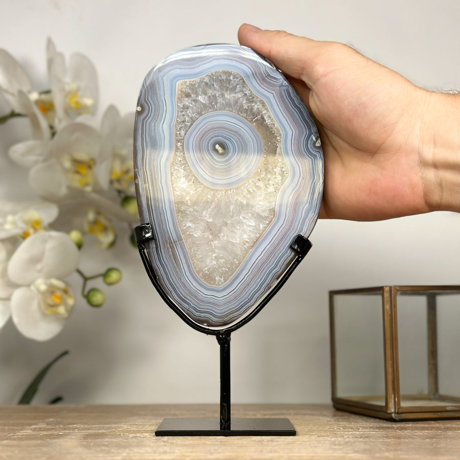 Banded Blue Agate Slice from Uruguay – Polished Stone Display for Healing Decor - MWS2006