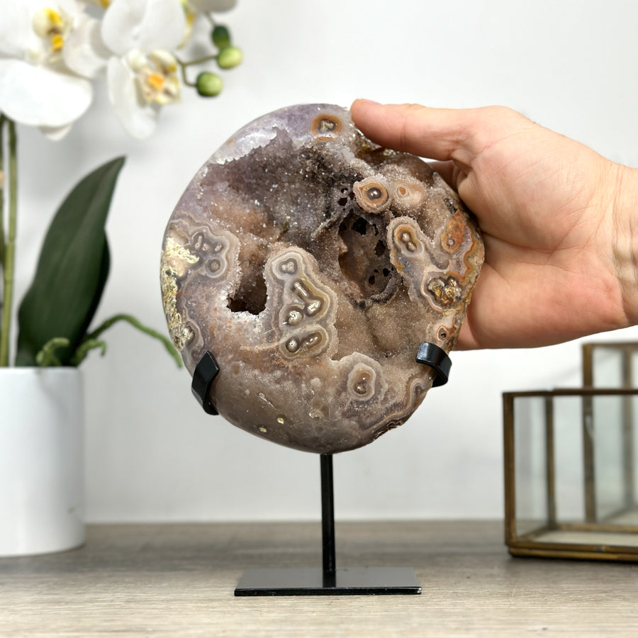 Amethyst Stone Geode with Hand Made Metallic Stand - MWS2433