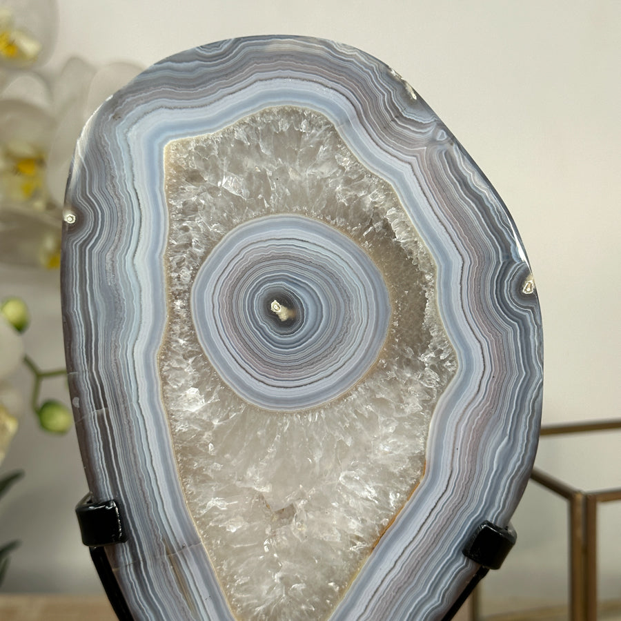 Banded Blue Agate & Quartz Slice from Uruguay – Polished Stone Display - MWS2011