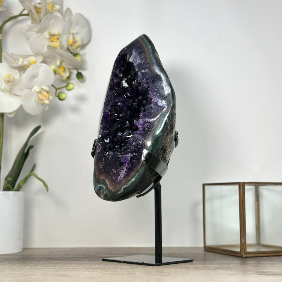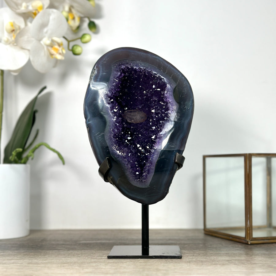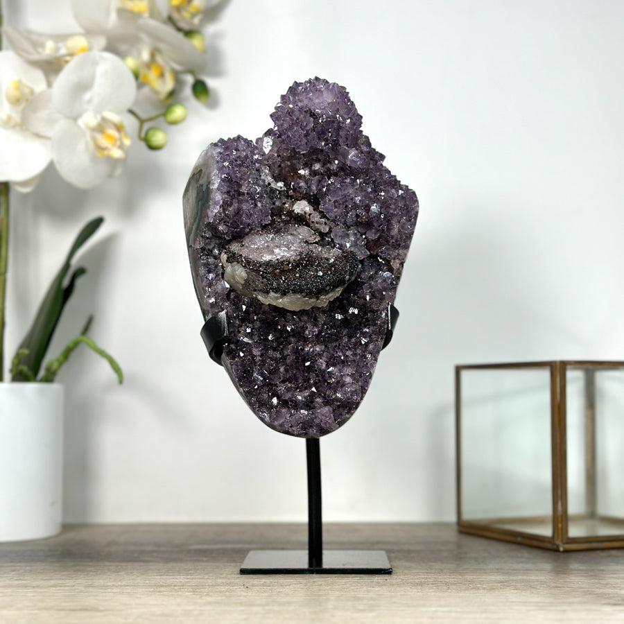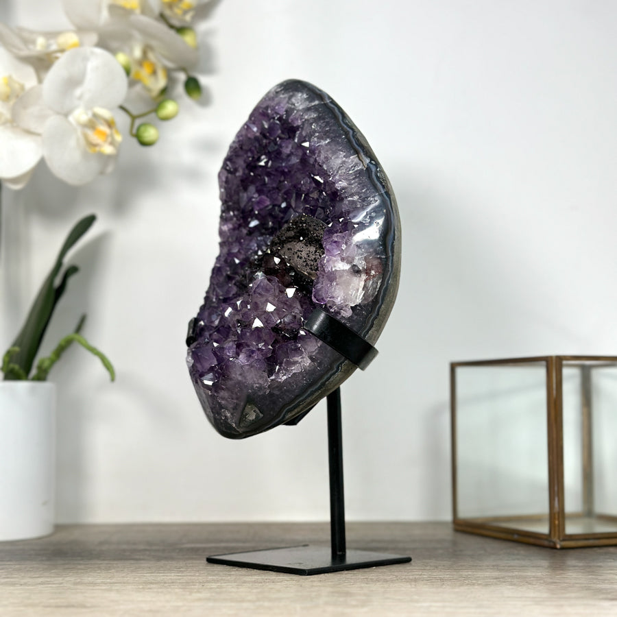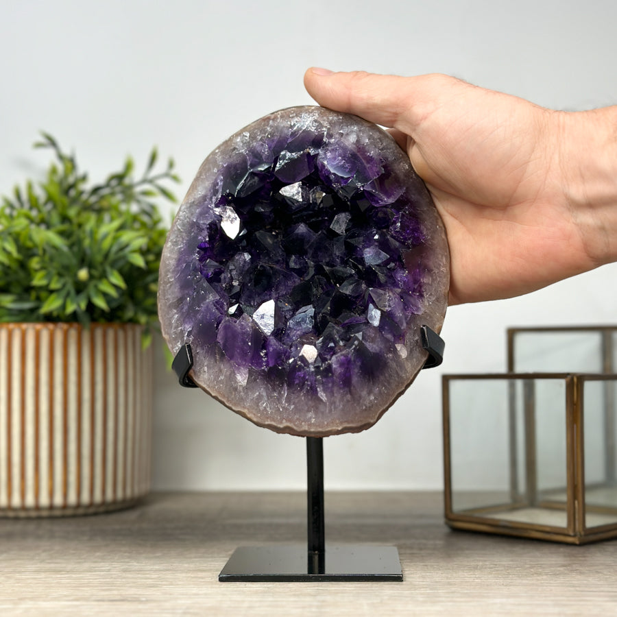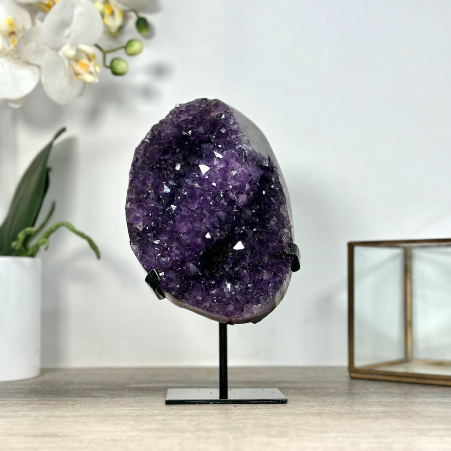Large Deep Purple Amethyst Geode on Metal Stand – Statement Crystal for Home Décor - MWS2537