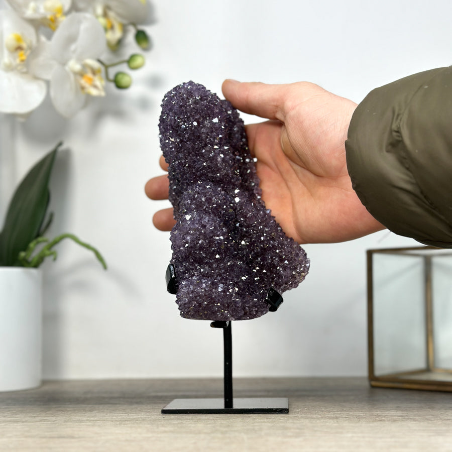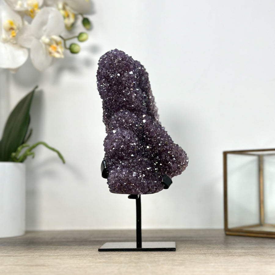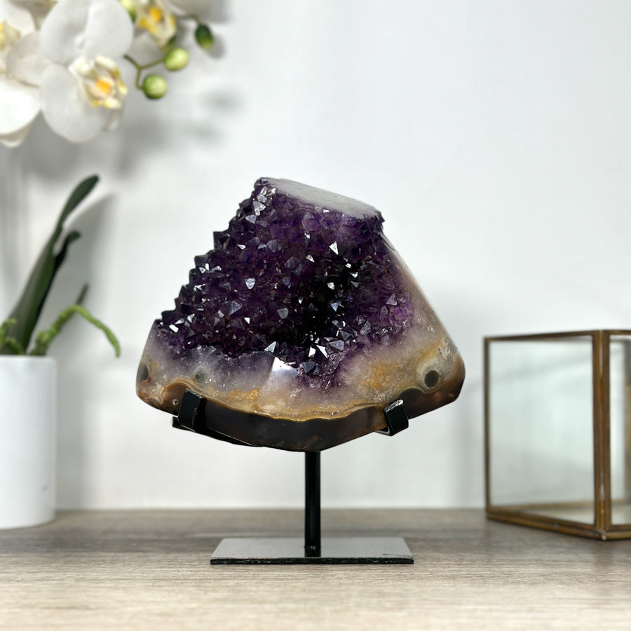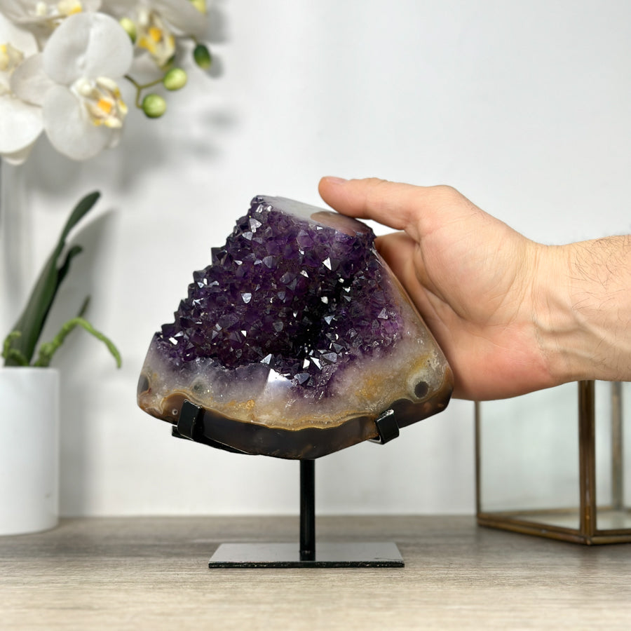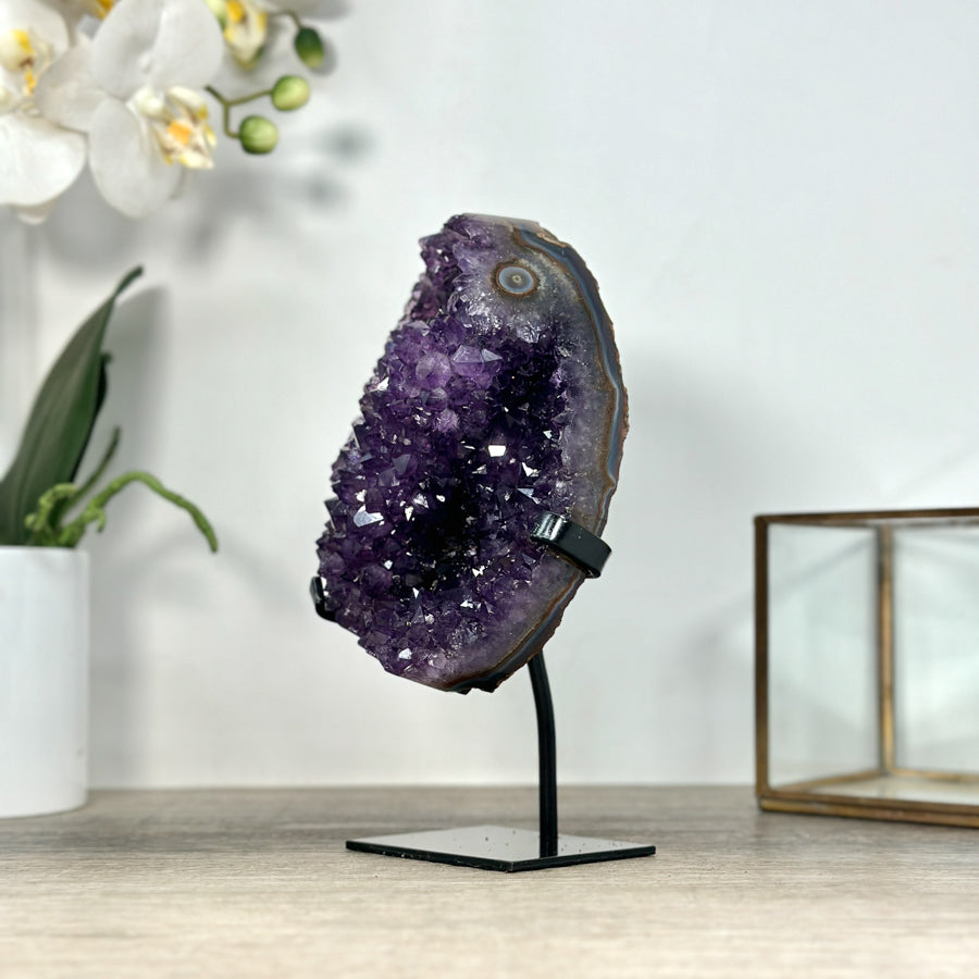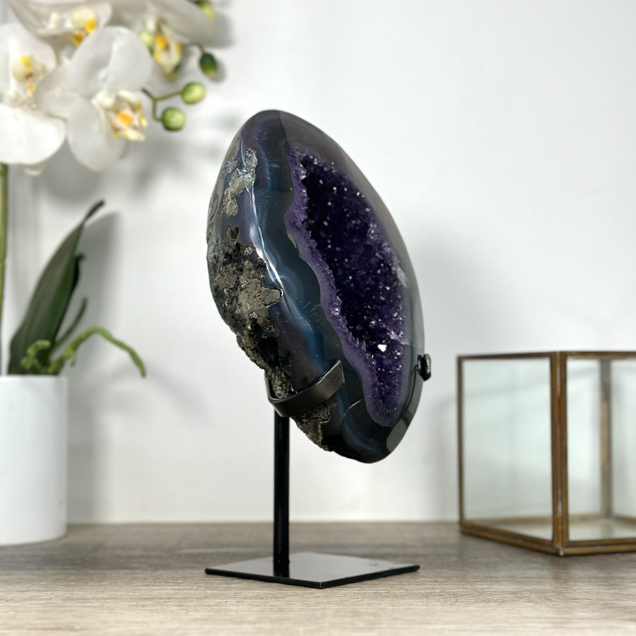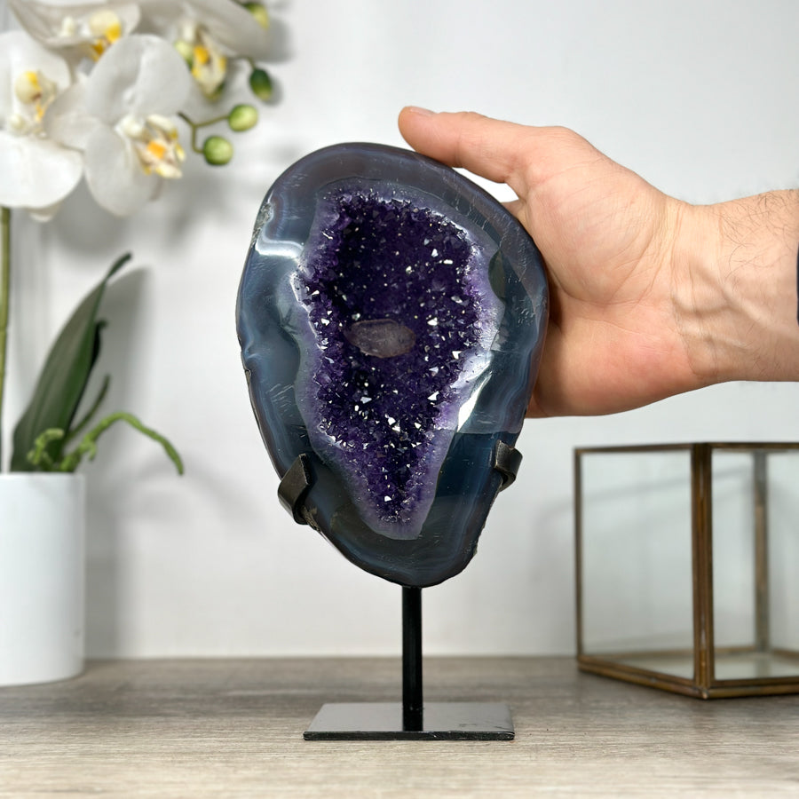Large Deep Purple Amethyst Geode on Metal Stand – Statement Crystal for Home Décor - MWS2537