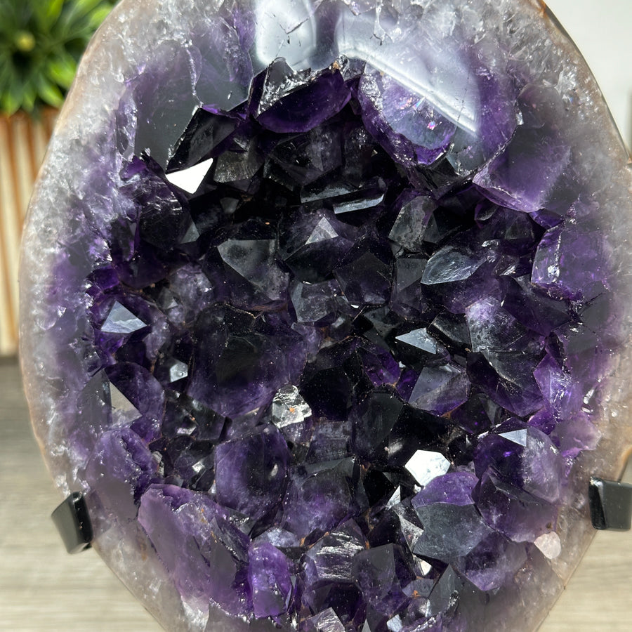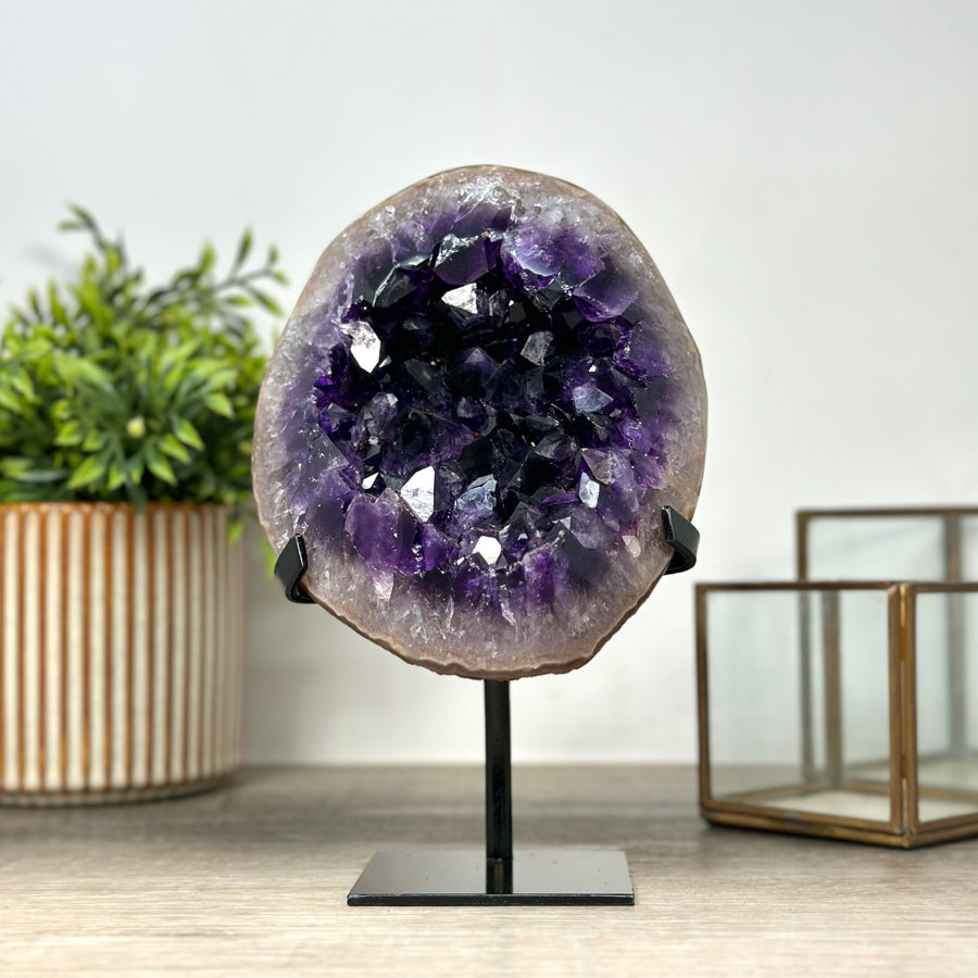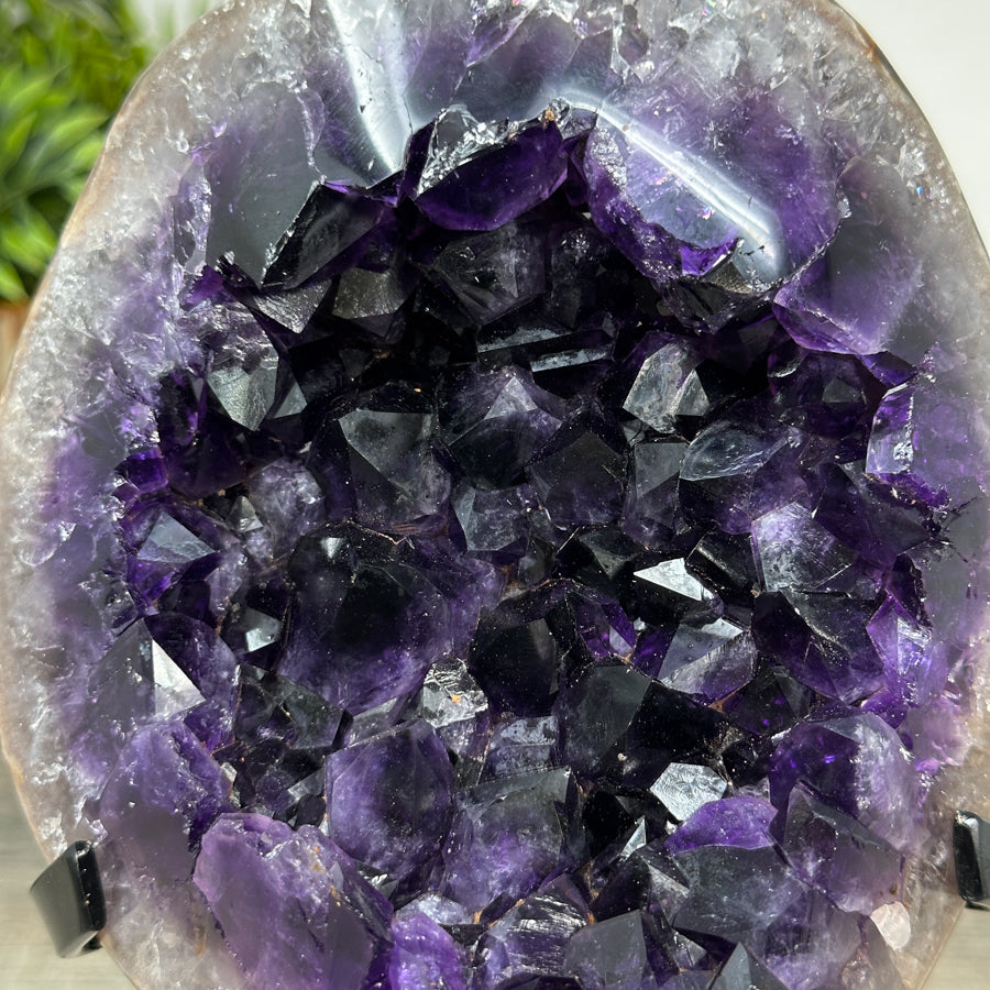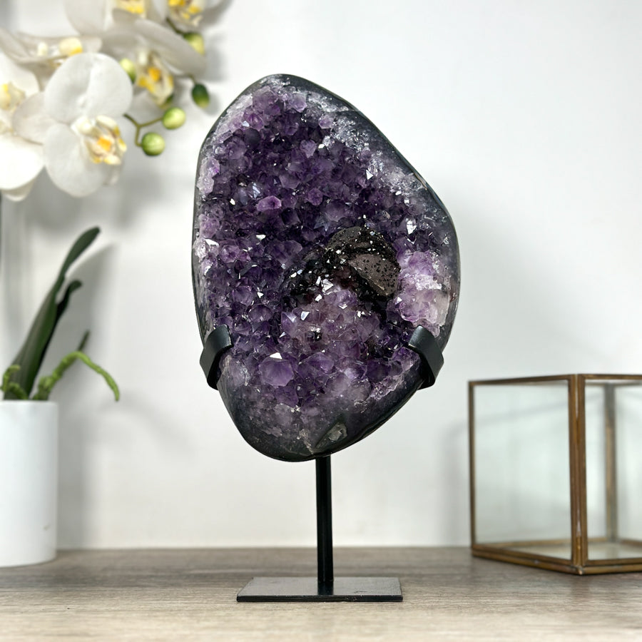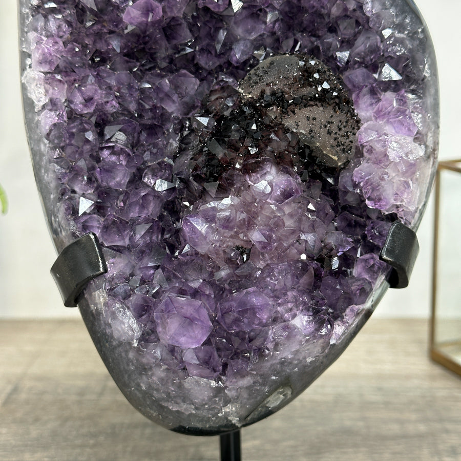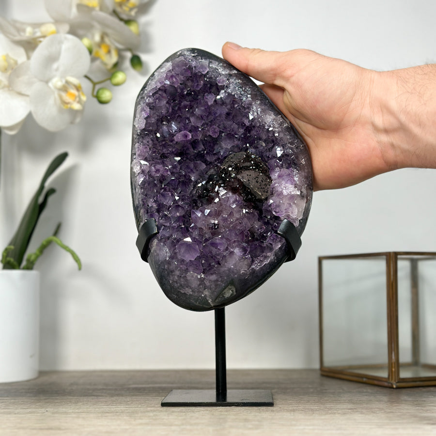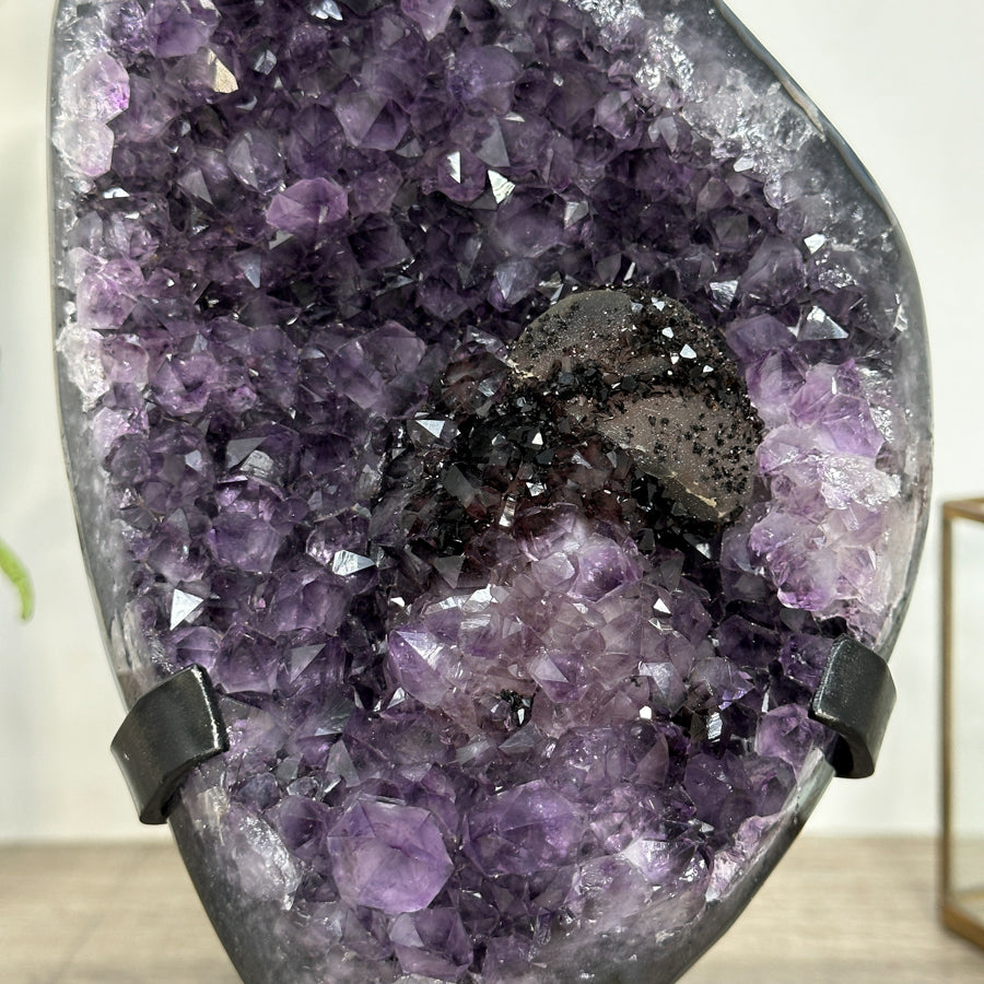 Uruguayan Amethyst Geode With Large Crystals & Black Hematite – Deep Purple Premium Display Piece for Elegant Home Decor - MWS2524