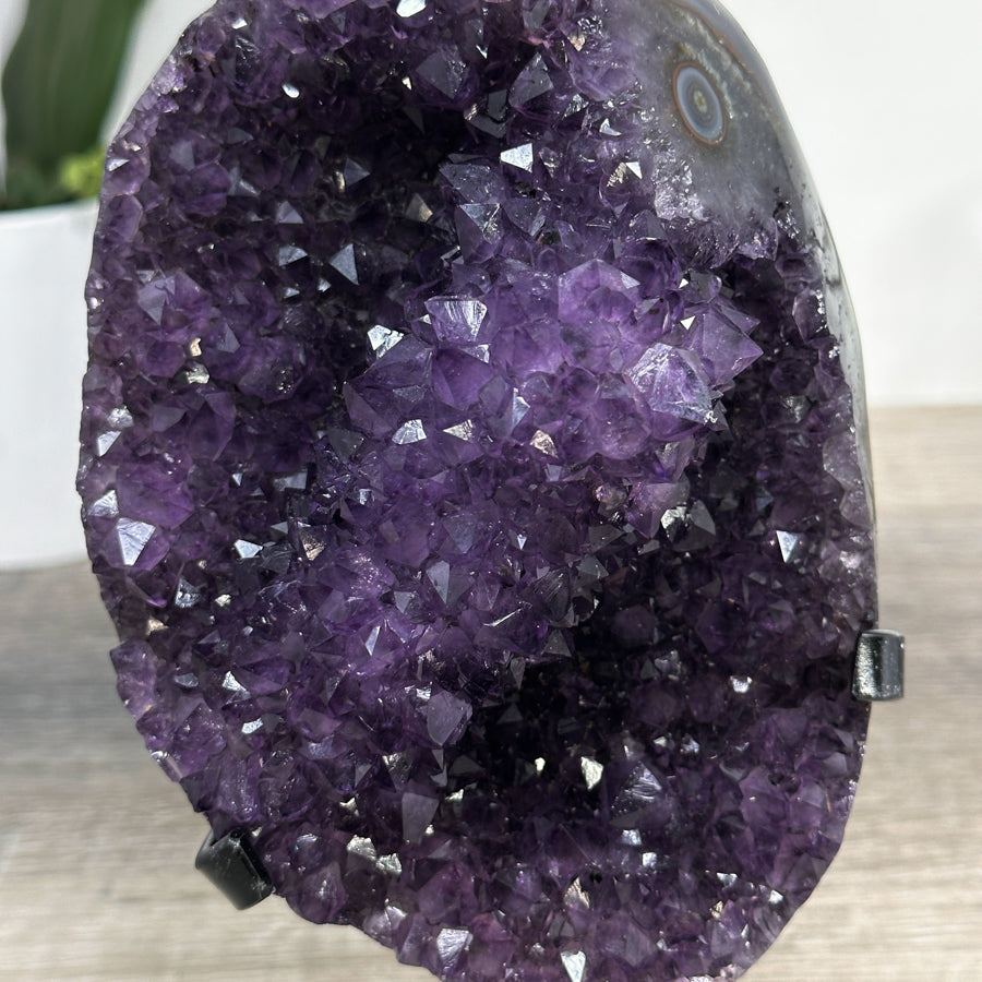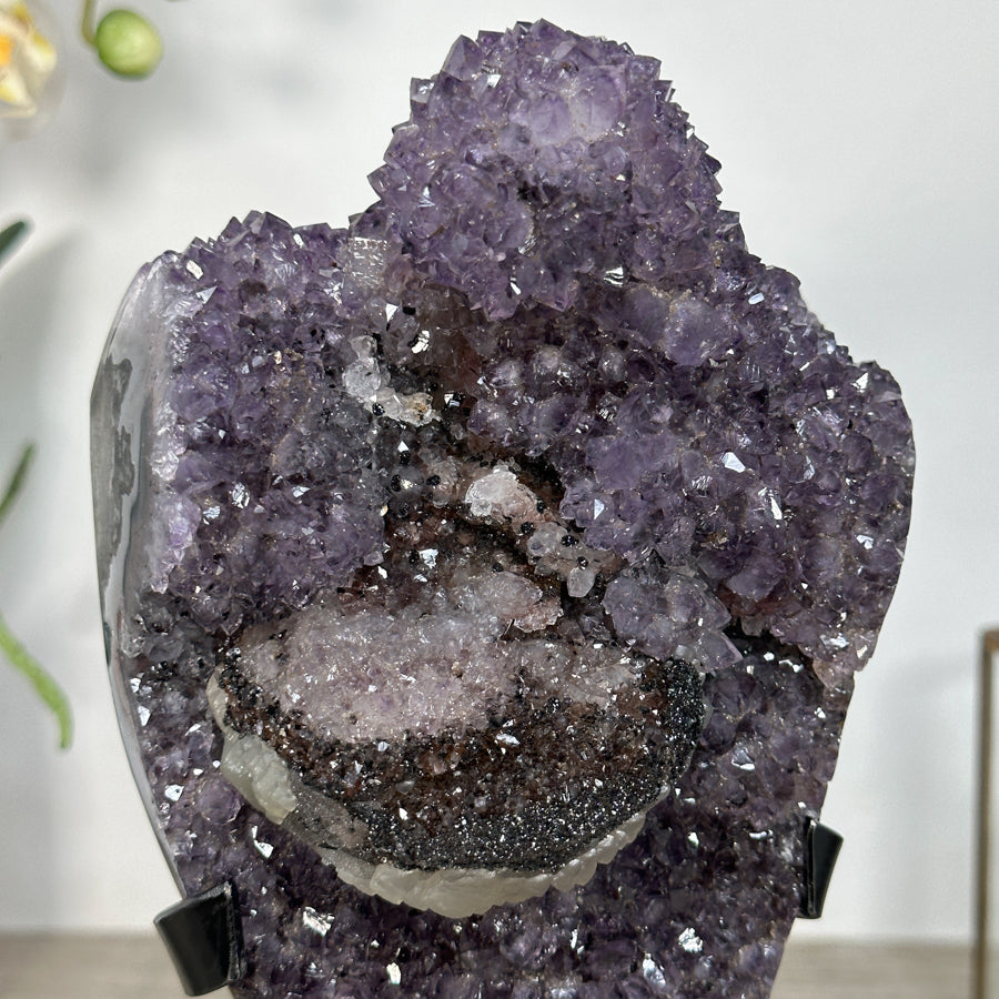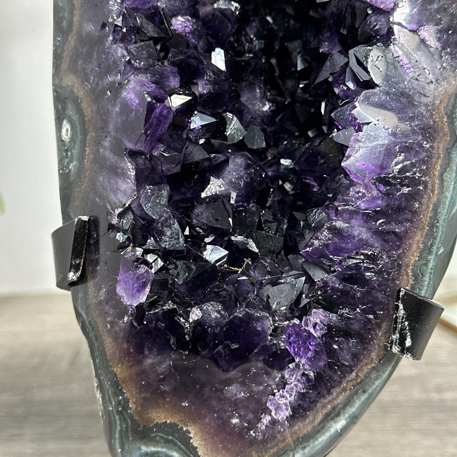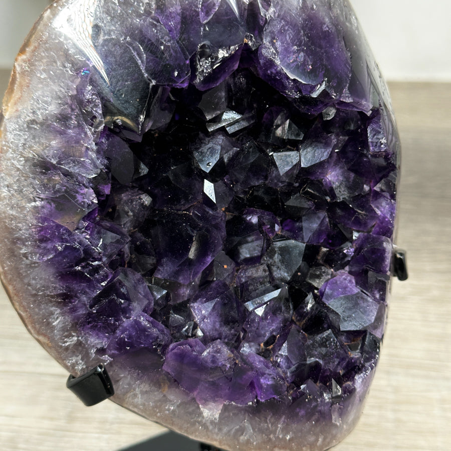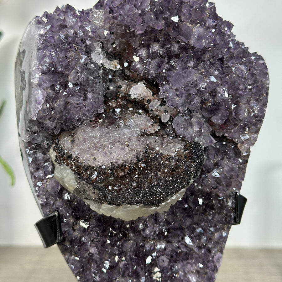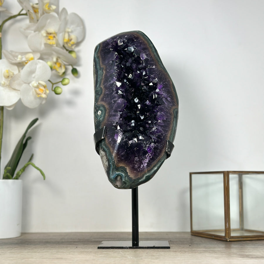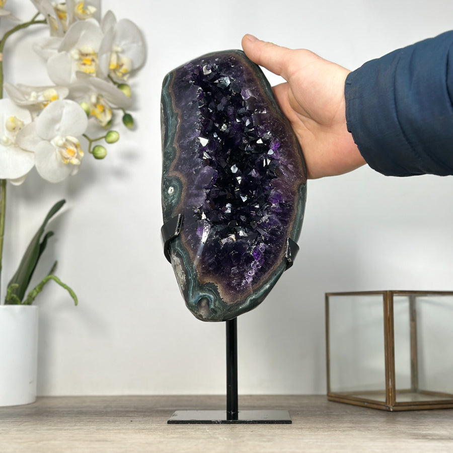 Uruguayan Amethyst Geode With Large Crystals & Black Hematite – Deep Purple Premium Display Piece for Elegant Home Decor - MWS2524