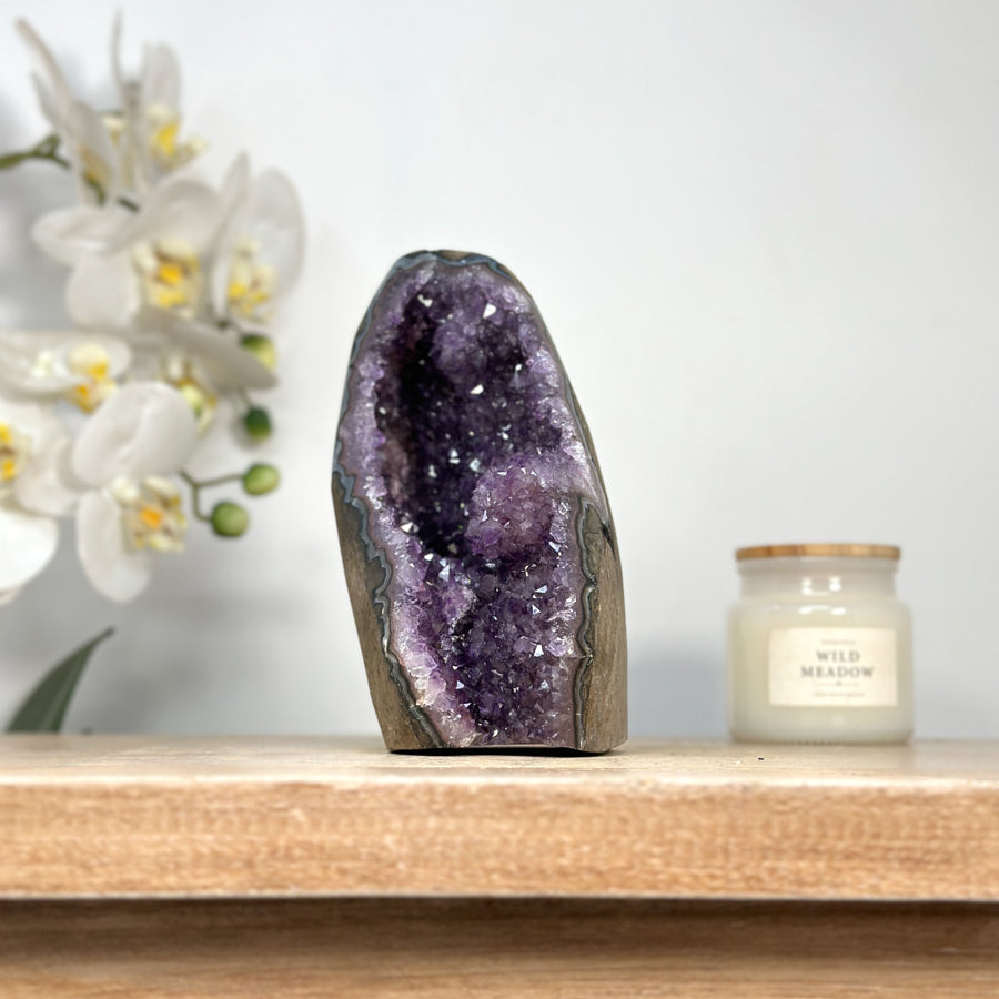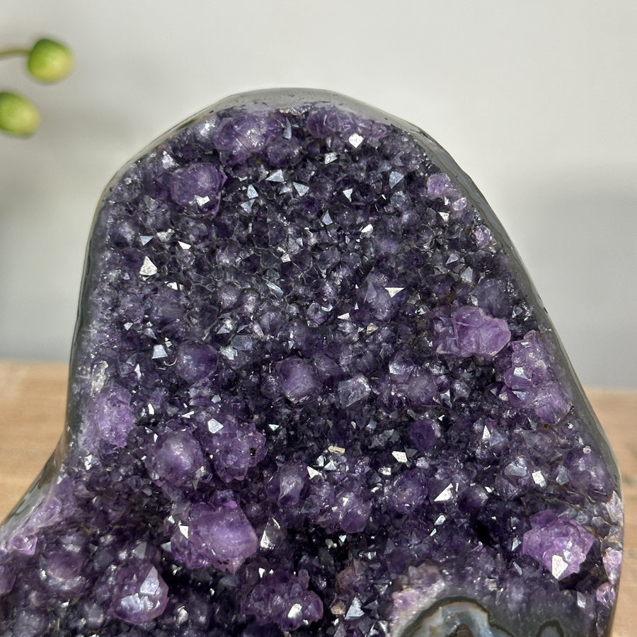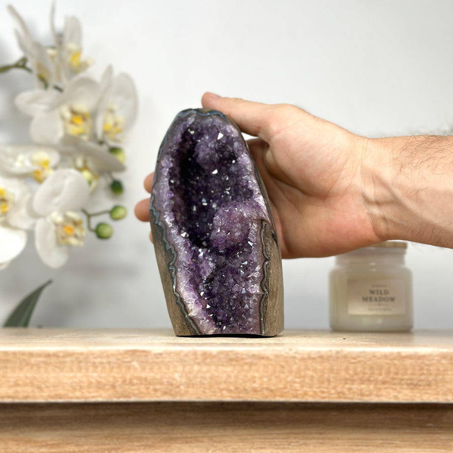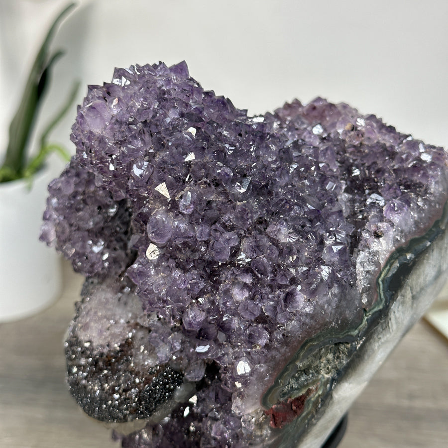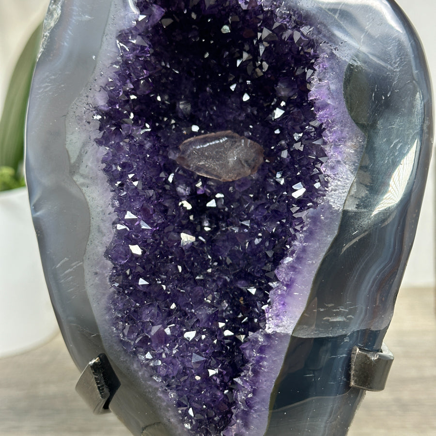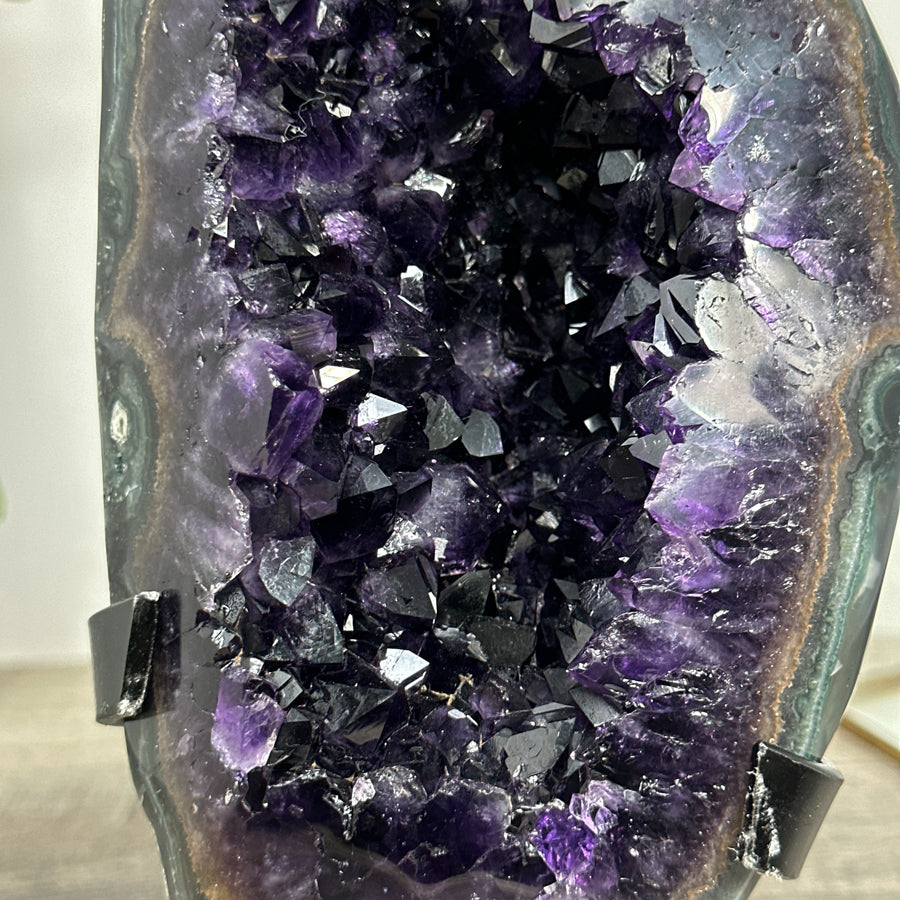 Uruguayan Amethyst Geode With Large Crystals & Black Hematite – Deep Purple Premium Display Piece for Elegant Home Decor - MWS2524