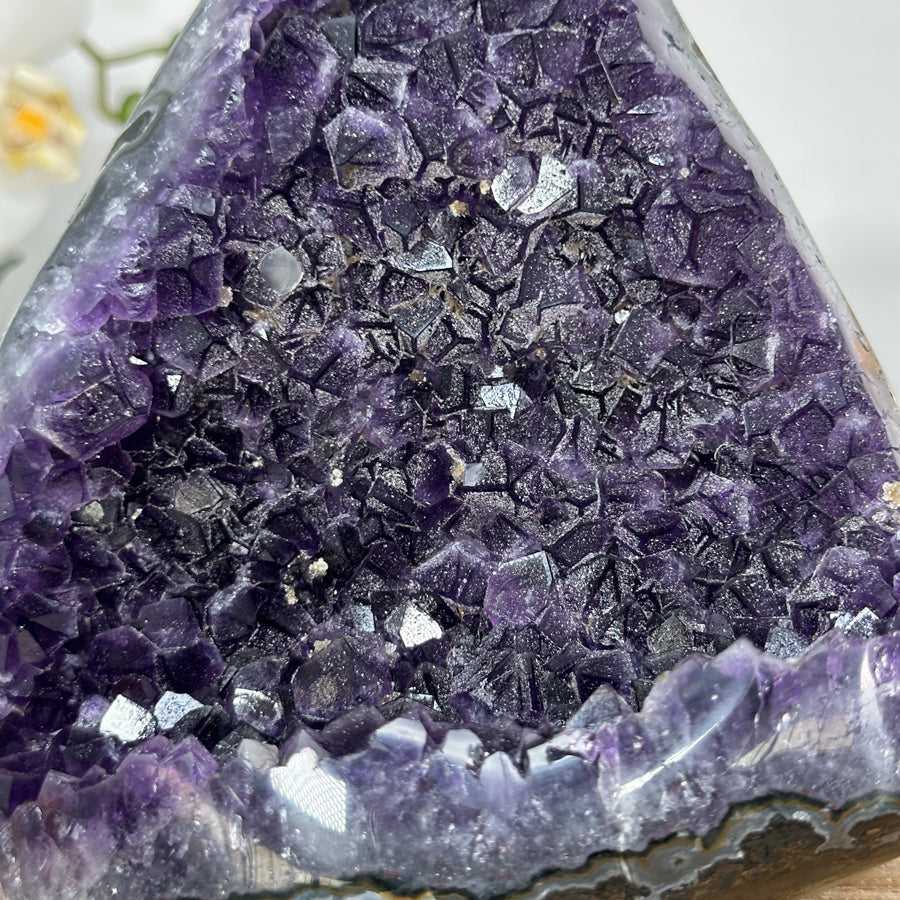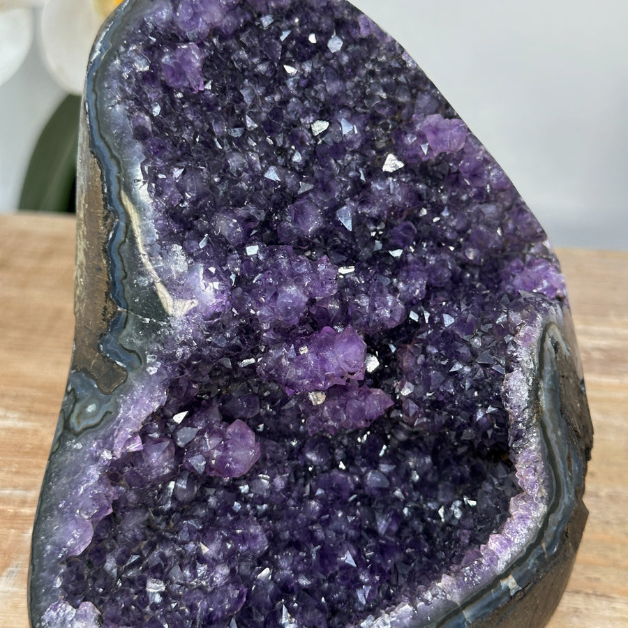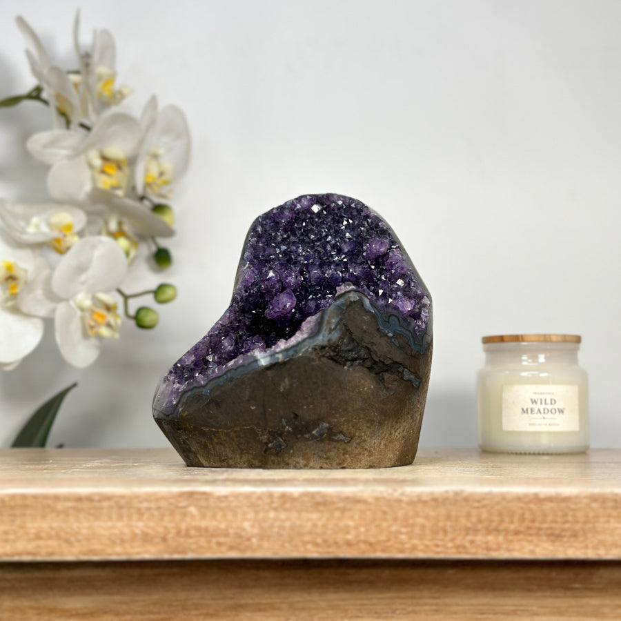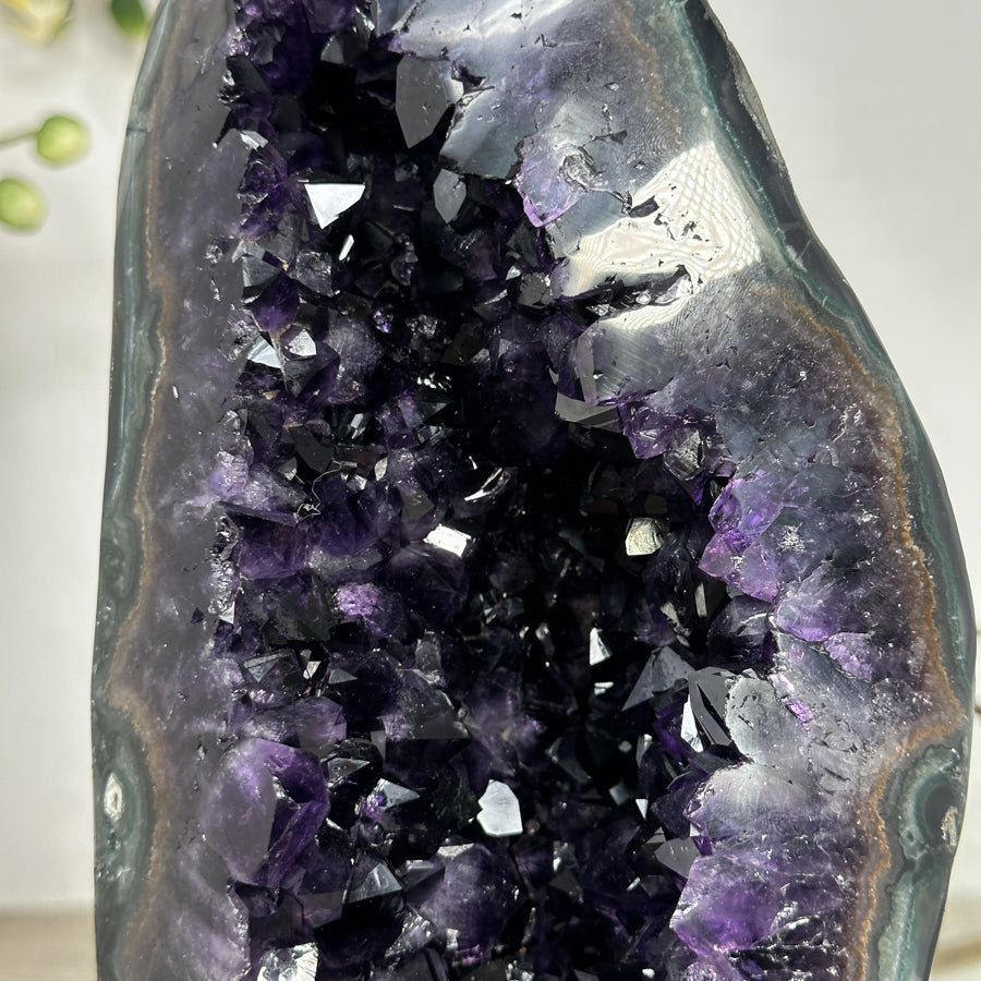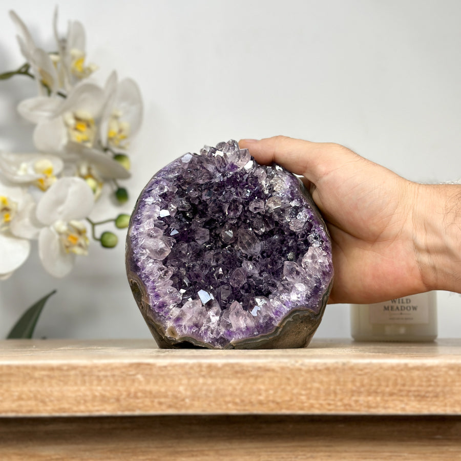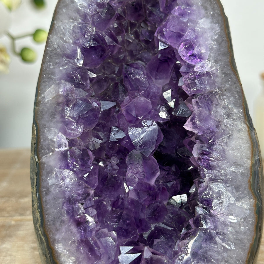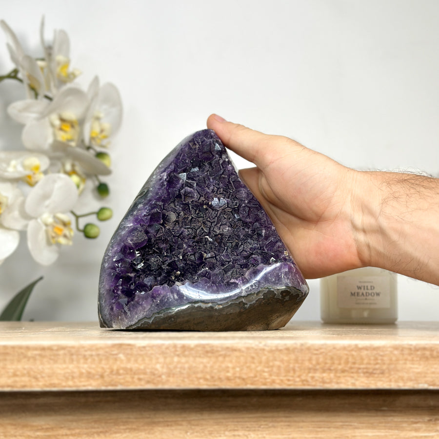 Uruguayan Amethyst Geode With Large Crystals & Black Hematite – Deep Purple Premium Display Piece for Elegant Home Decor - MWS2524