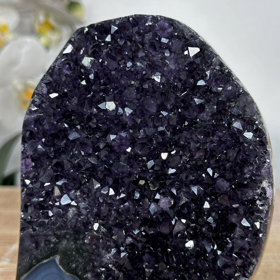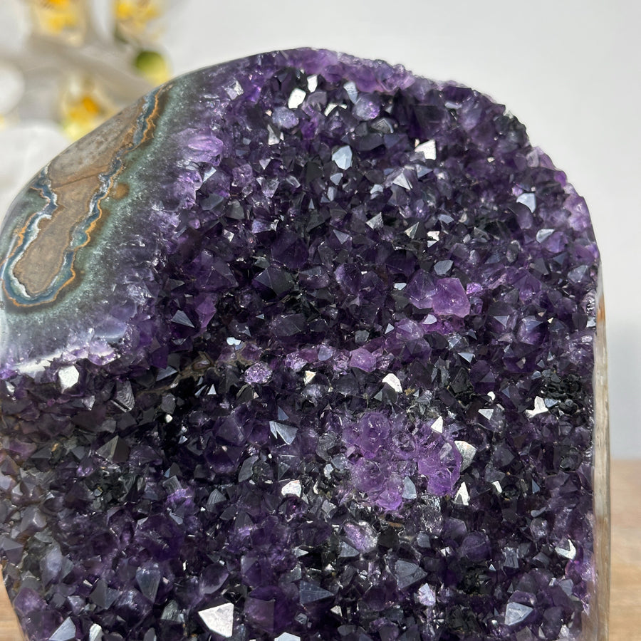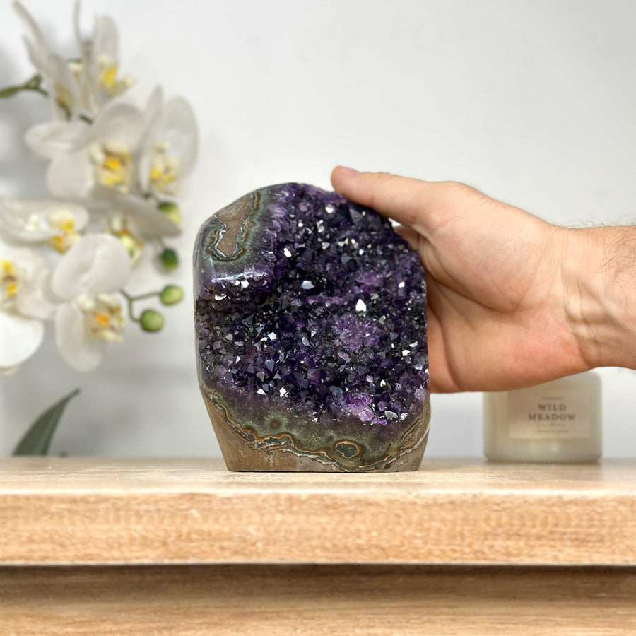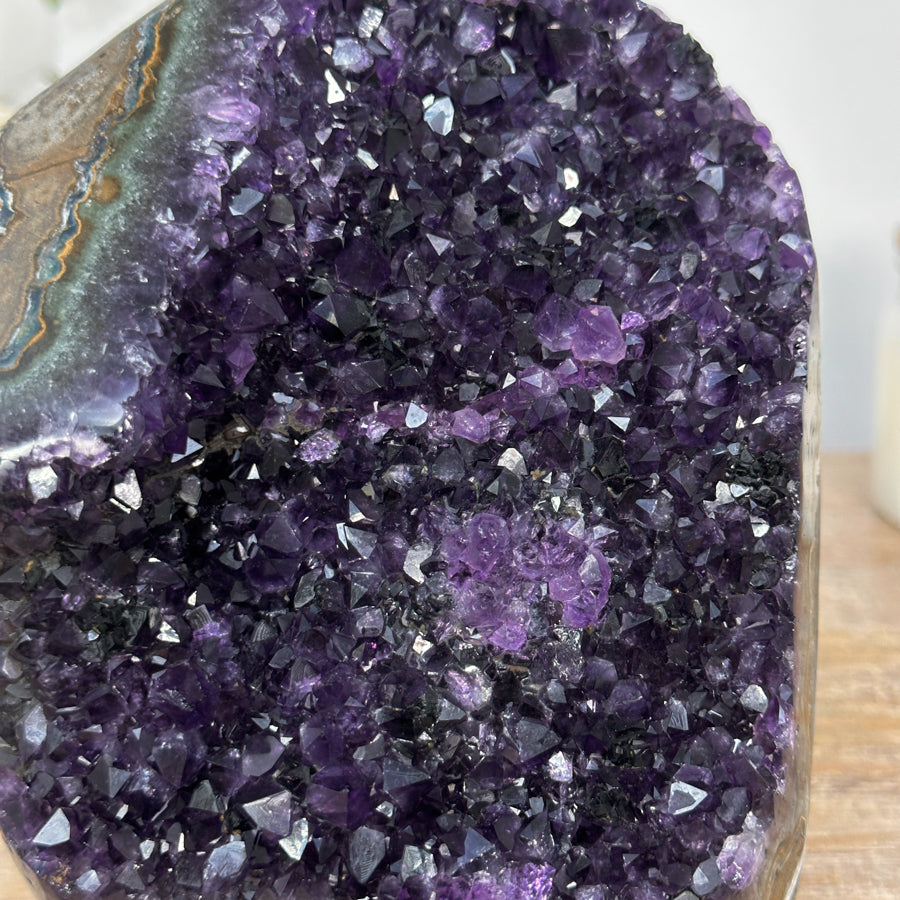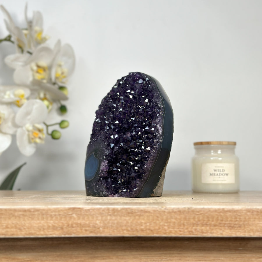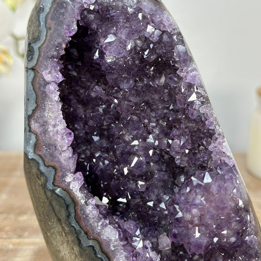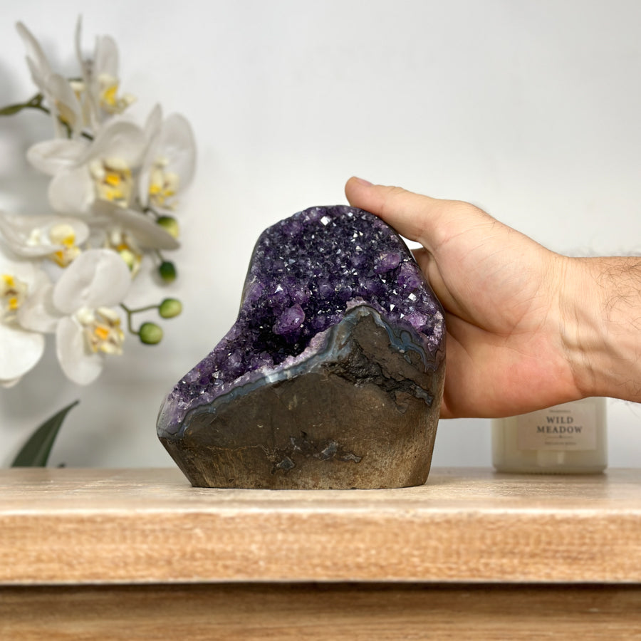 Uruguayan Amethyst Geode With Large Crystals & Black Hematite – Deep Purple Premium Display Piece for Elegant Home Decor - MWS2524