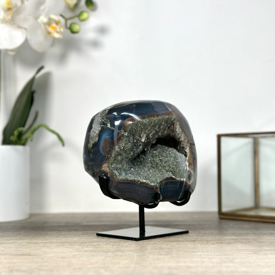Natural Agate Geode with Green Tone Stalactite Formation - MWS2539