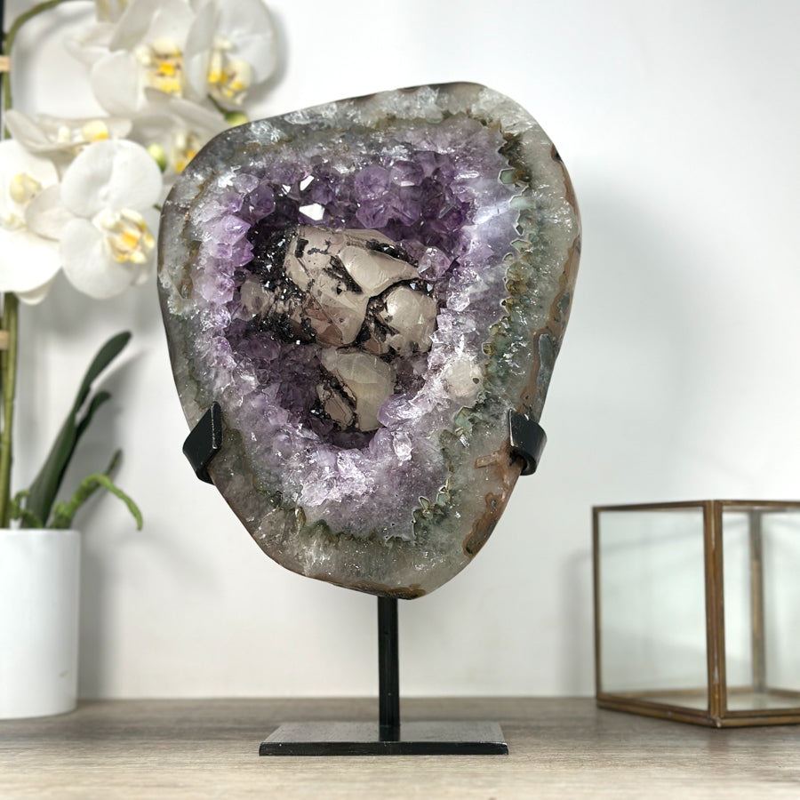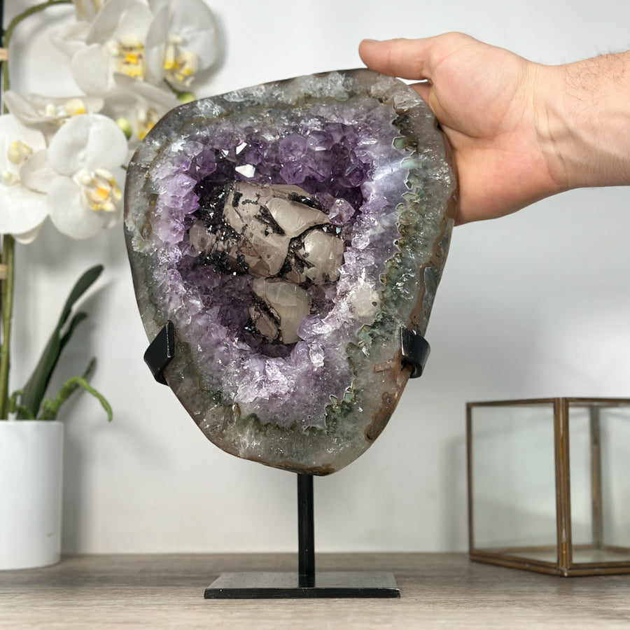 Natural Amethyst Geode with Agate Shell & Calcite Formation - MWS2526