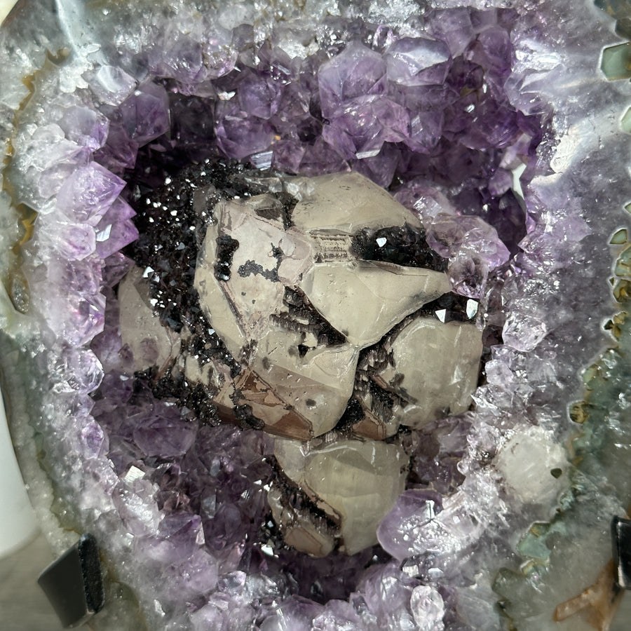 Rare Large Amethyst Geode with Quartz Shell & Black Hematite Calcite Inclusion - MWS2535