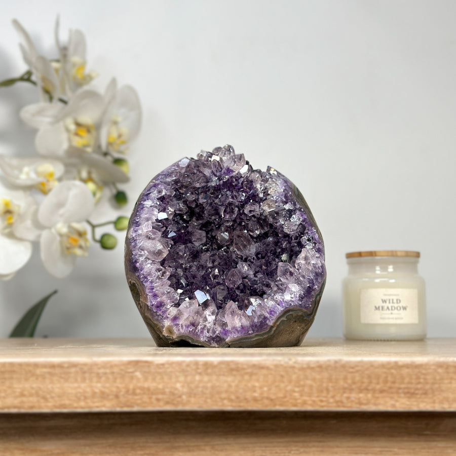 Natural Amethyst Geode with Large & Shinny Crystals - MWS2154