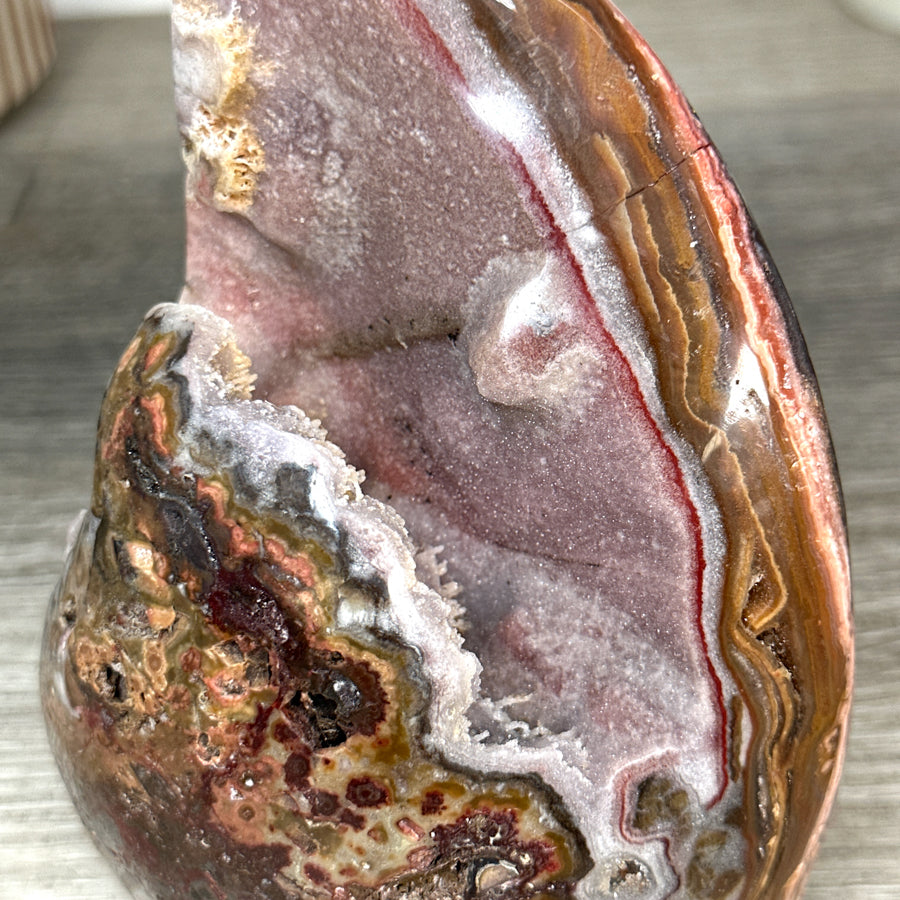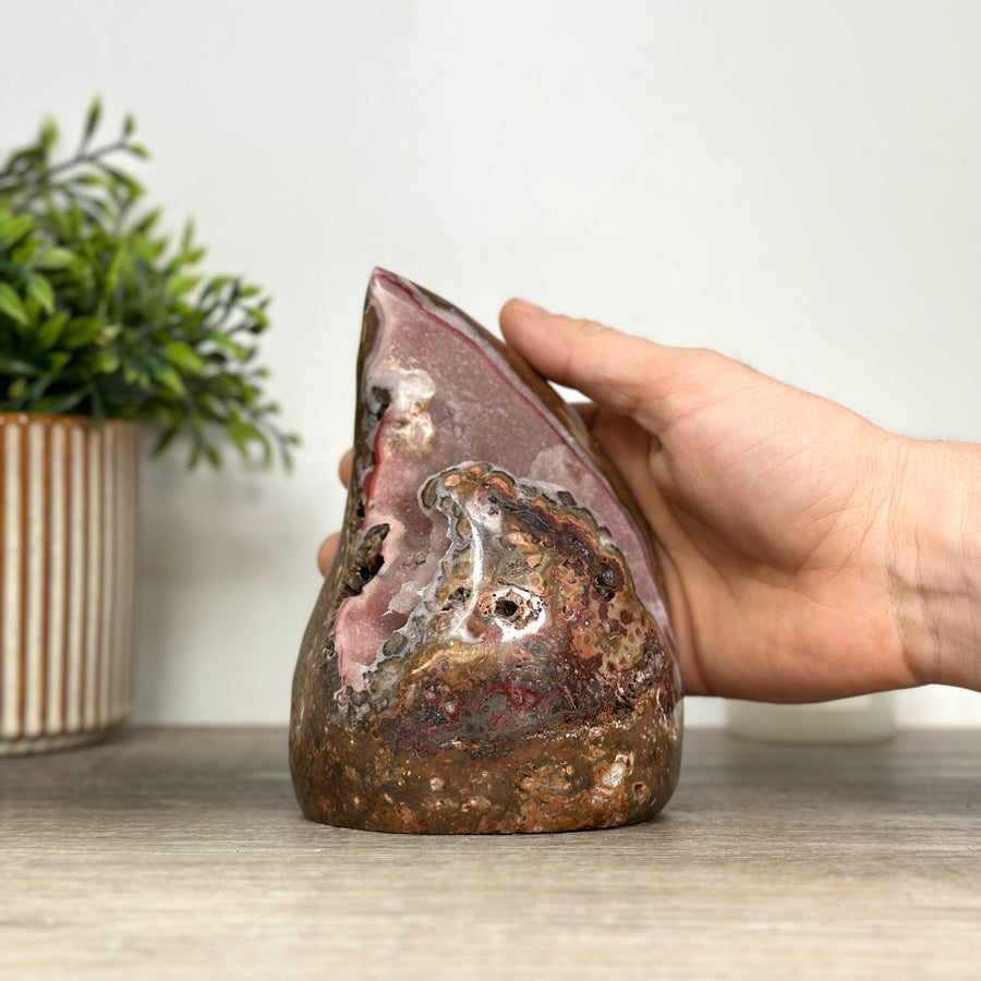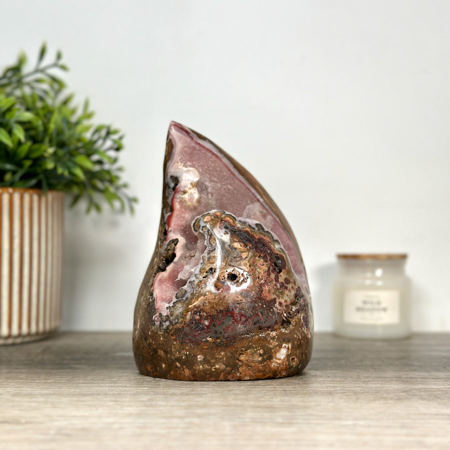 Add a touch of natural beauty and unique style to your home with our hand-carved flame stones. Made from premium Agate, Amethyst, Quartz, and Jasper, each piece is expertly crafted to resemble a graceful flame. Perfect for use as home decor, these stones are sure to make a statement in any room.