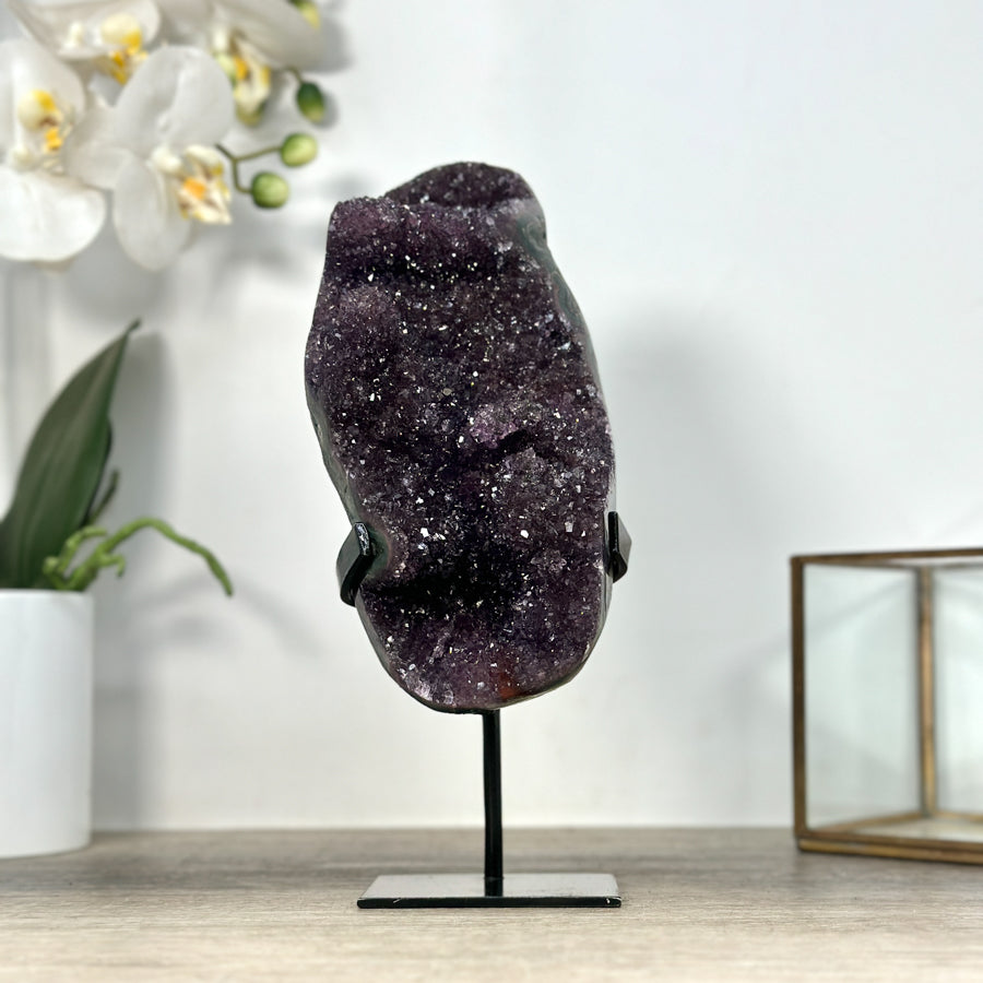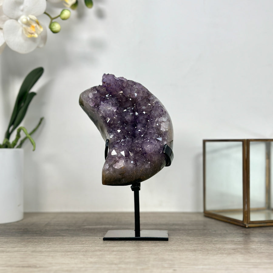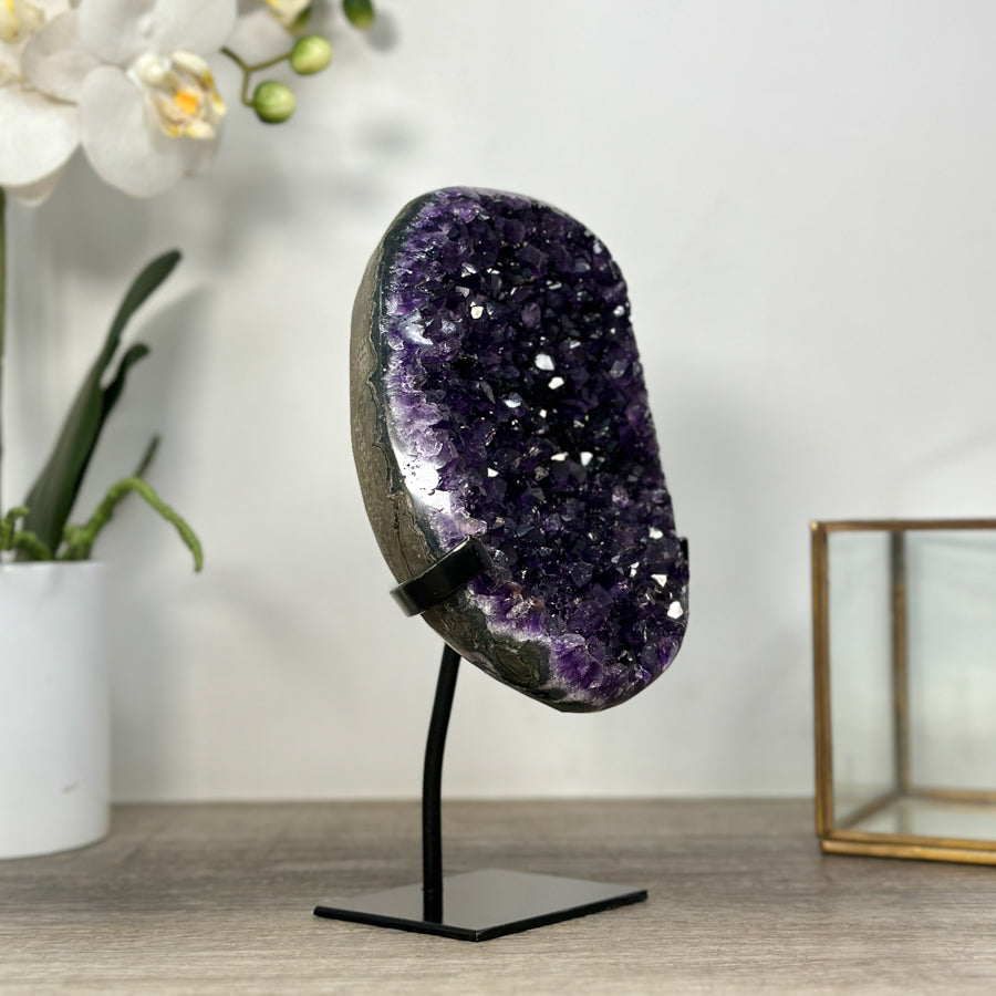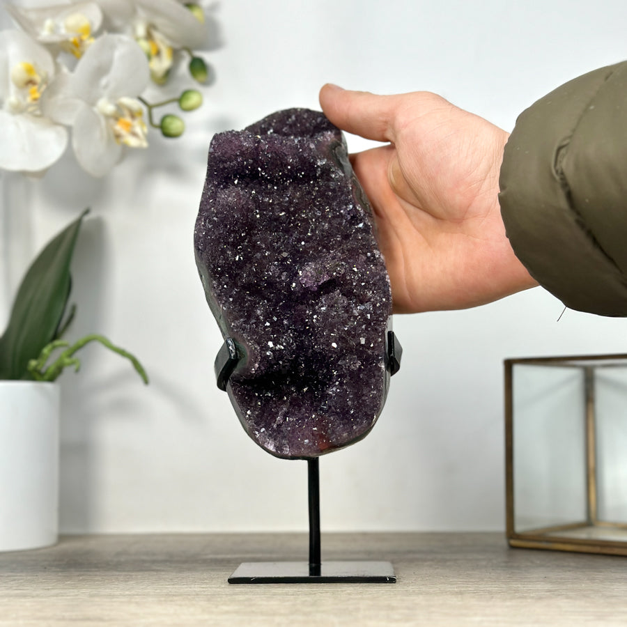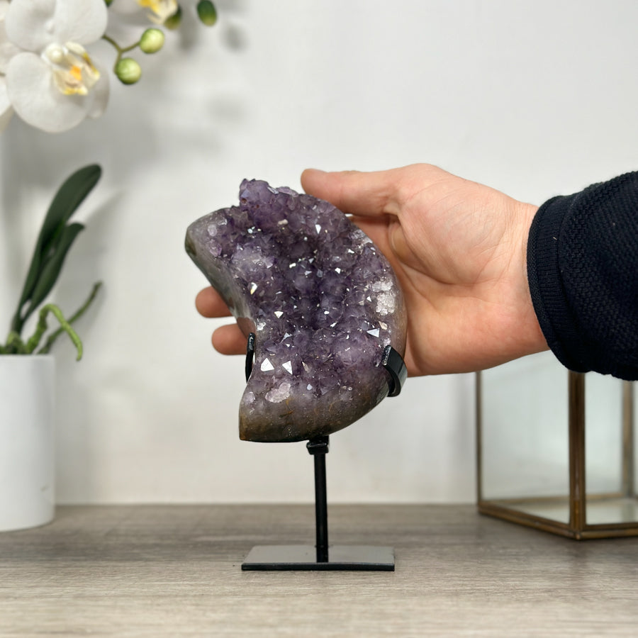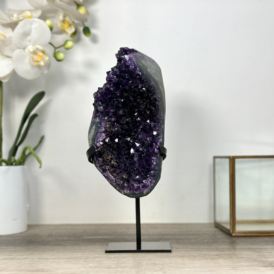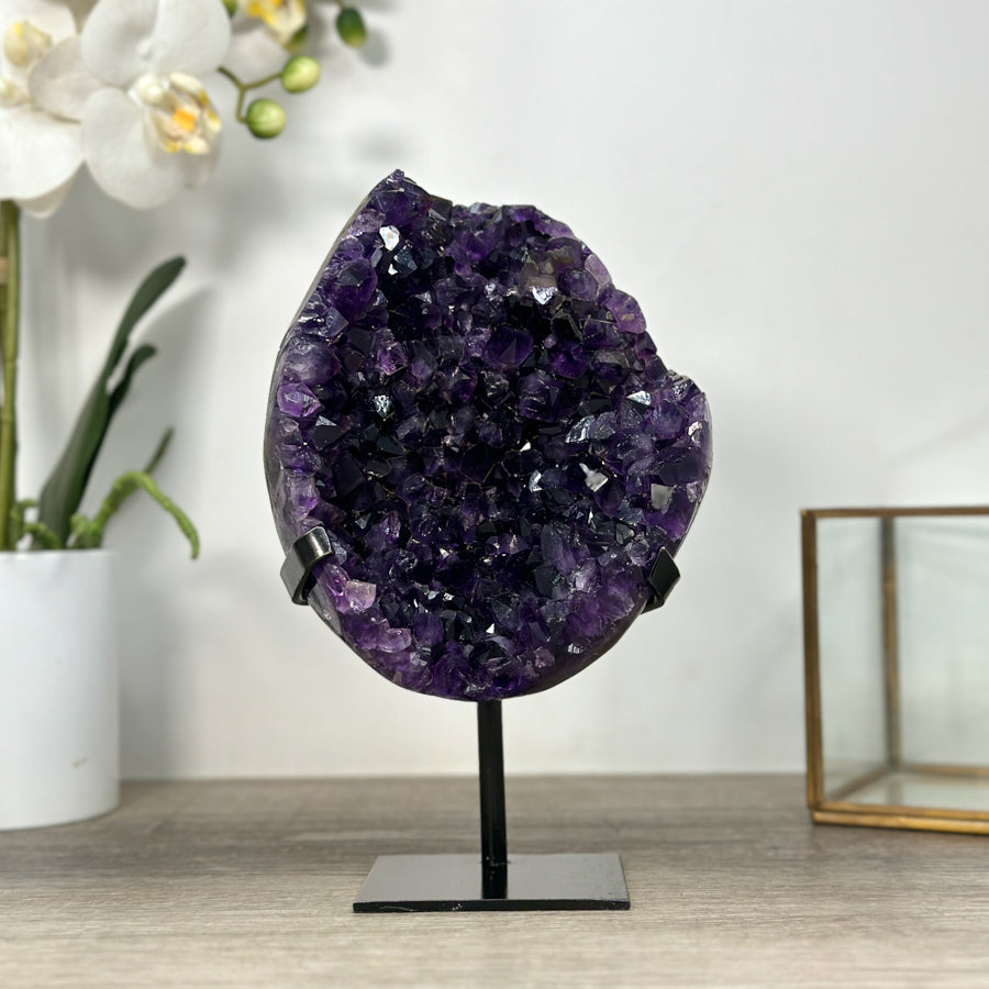 These carefully selected minerals are expertly mounted on handmade metal stands, allowing them to be displayed proudly in any room. With their stunning natural colors and unique characteristics, these mineral pieces will add a touch of elegance and sophistication to any space.