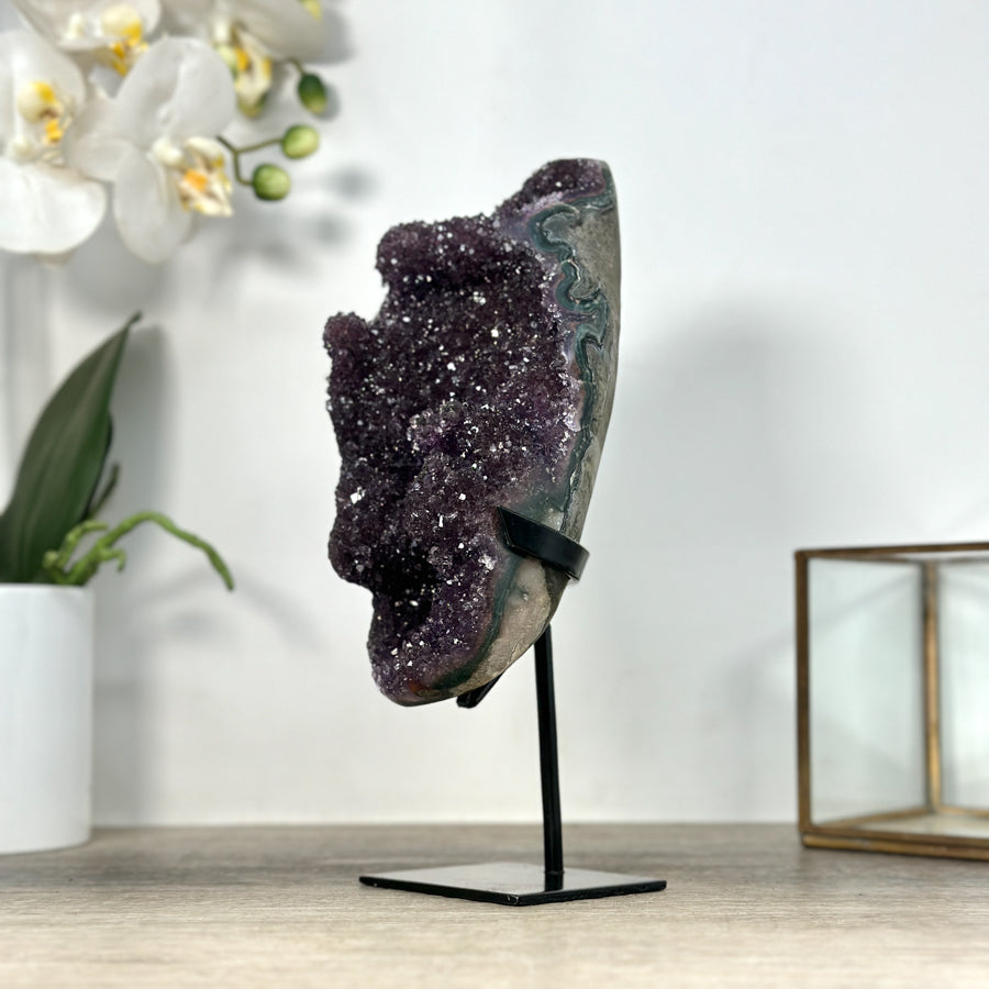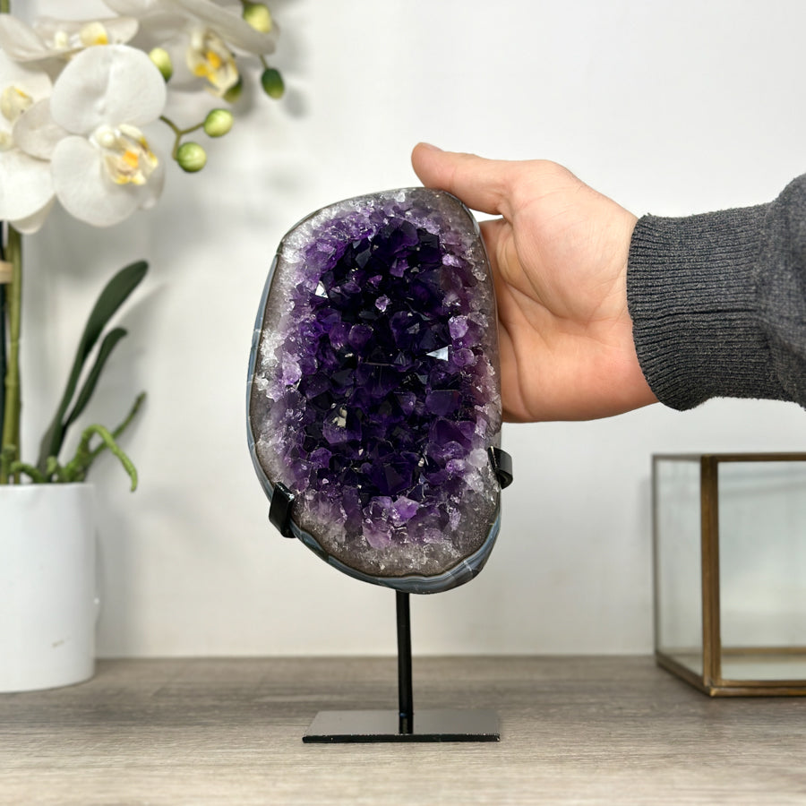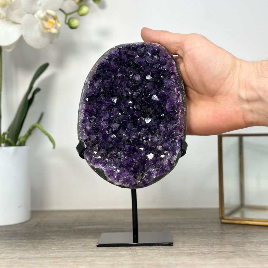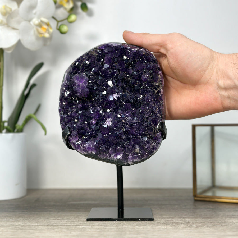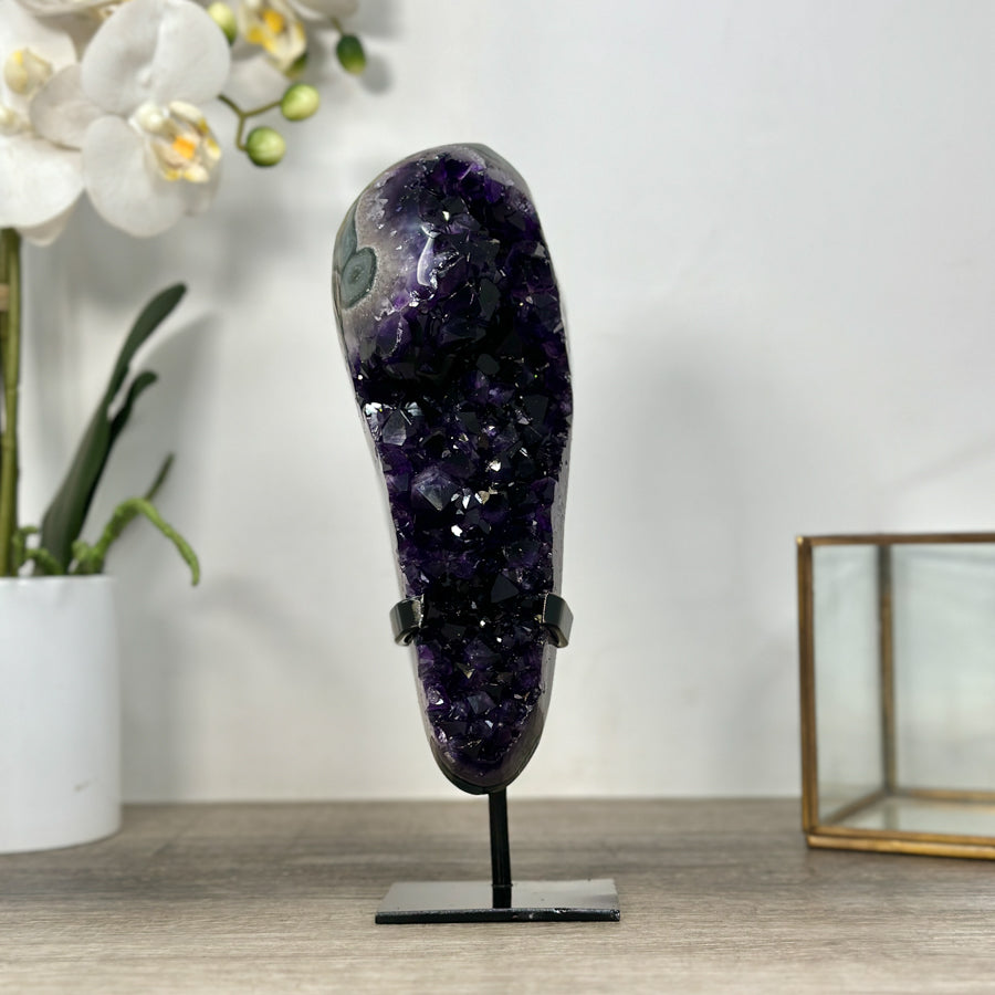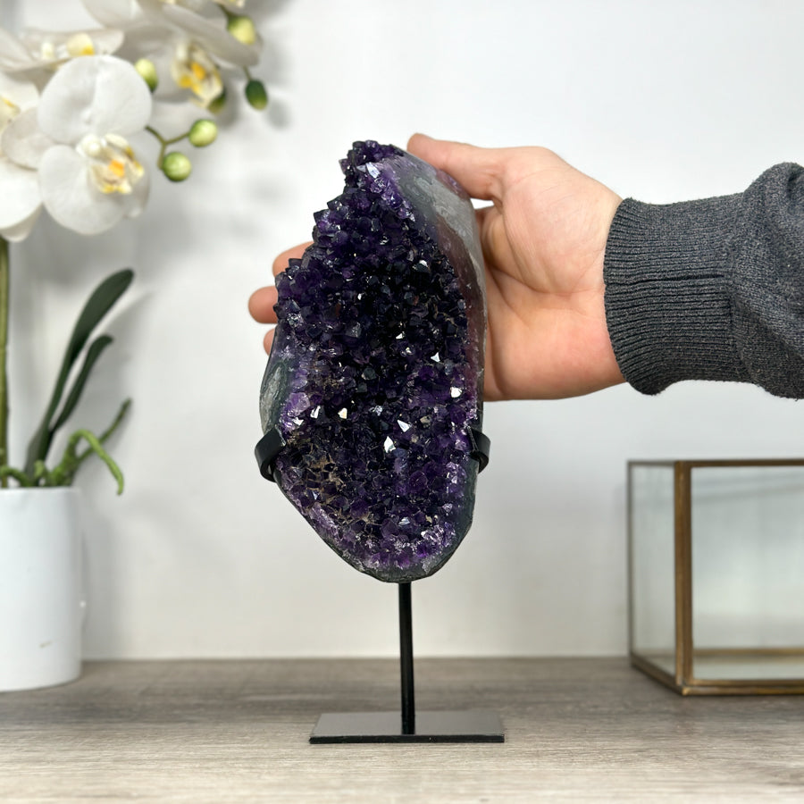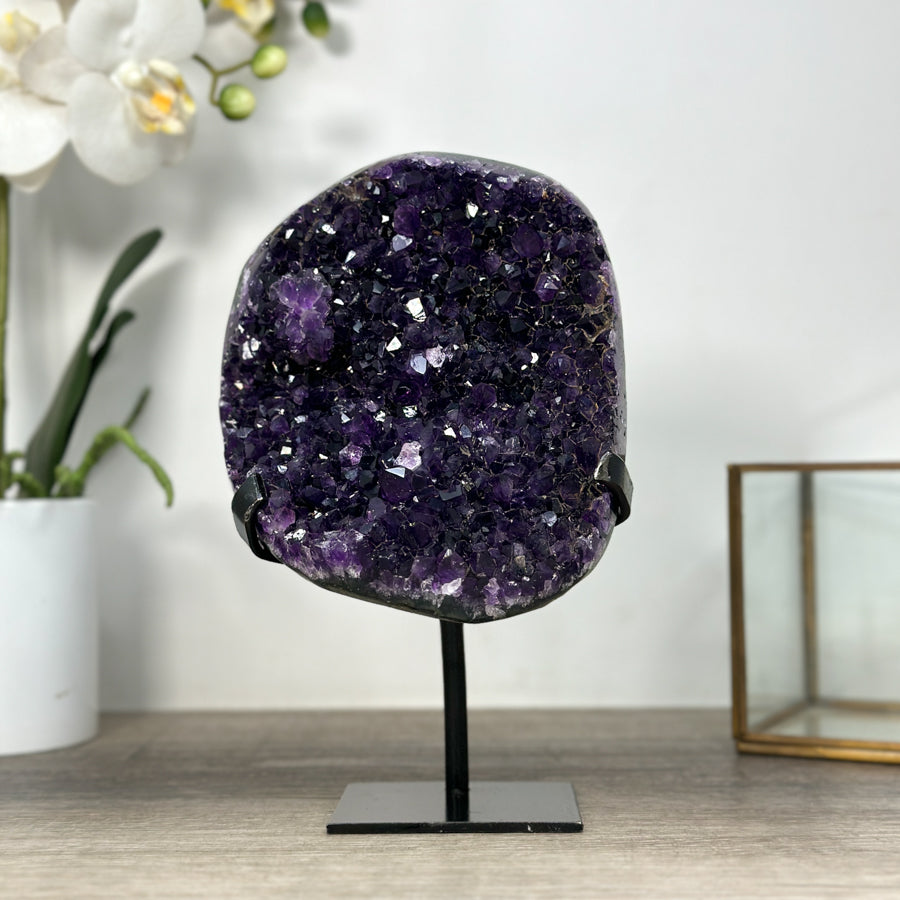 These carefully selected minerals are expertly mounted on handmade metal stands, allowing them to be displayed proudly in any room. With their stunning natural colors and unique characteristics, these mineral pieces will add a touch of elegance and sophistication to any space.