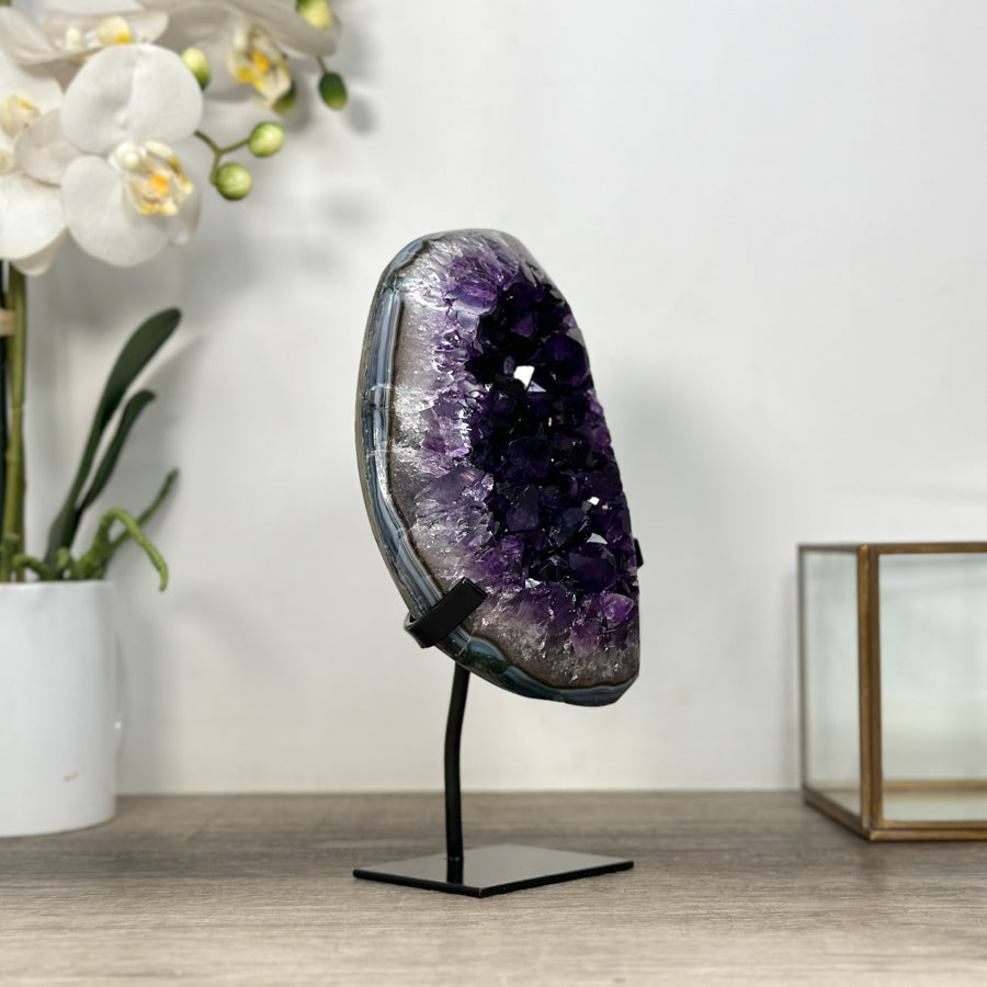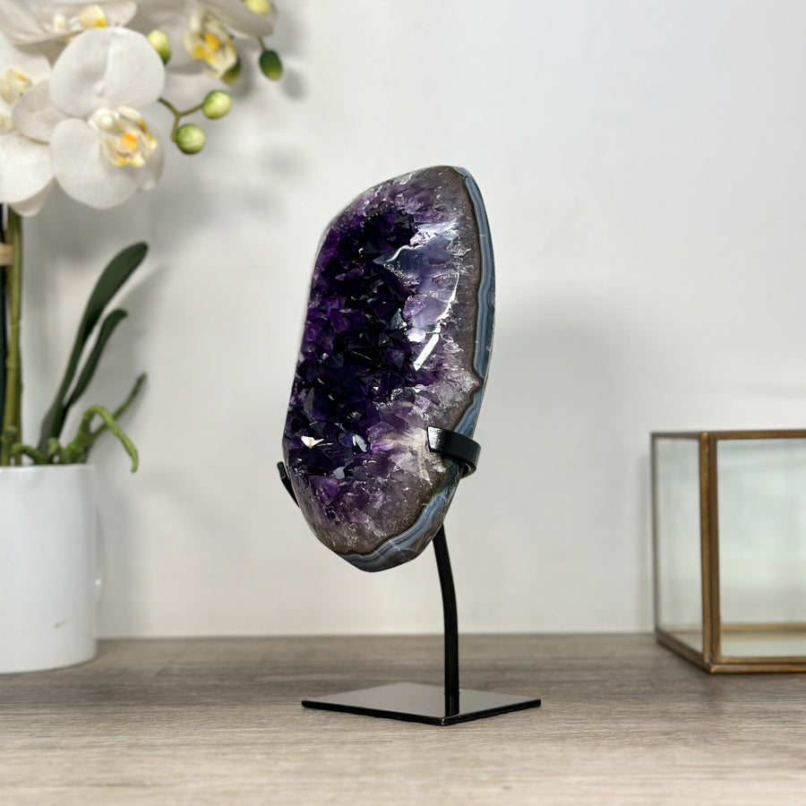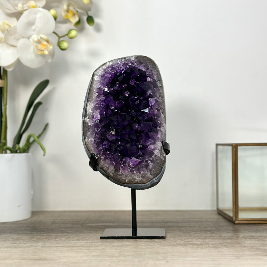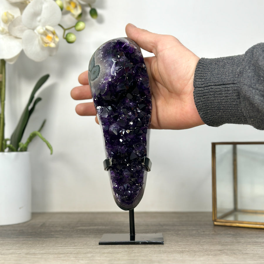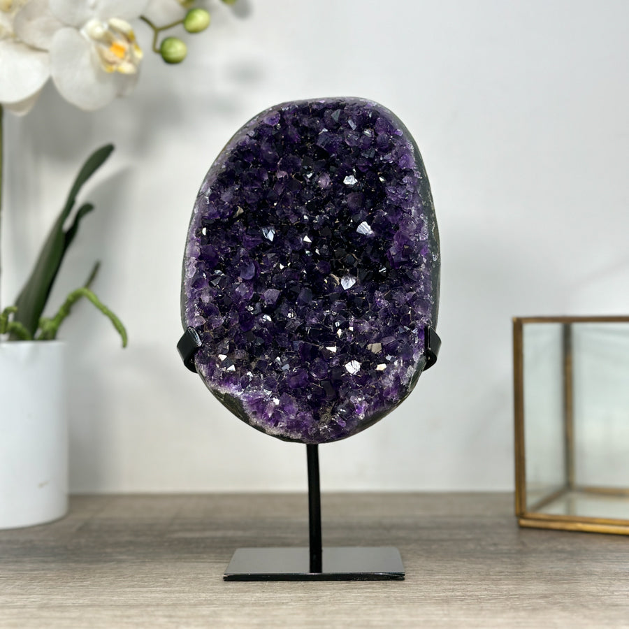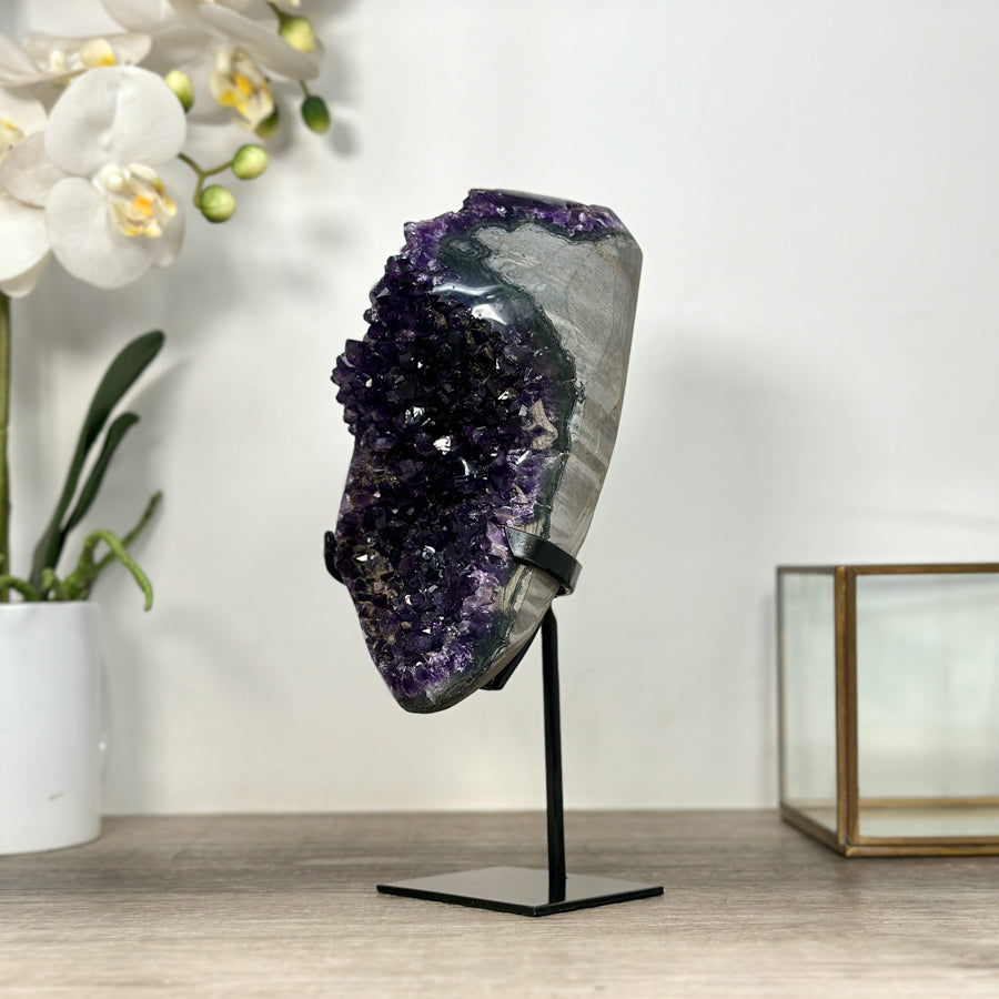 These carefully selected minerals are expertly mounted on handmade metal stands, allowing them to be displayed proudly in any room. With their stunning natural colors and unique characteristics, these mineral pieces will add a touch of elegance and sophistication to any space.