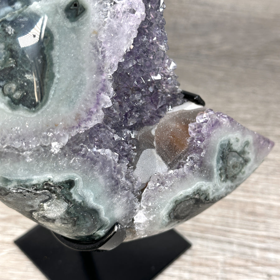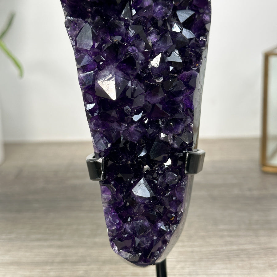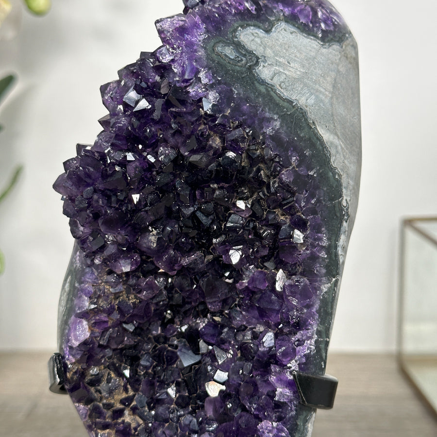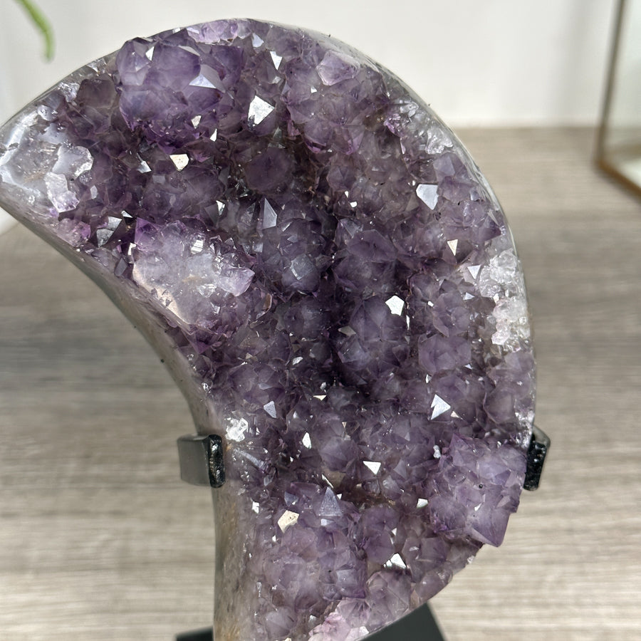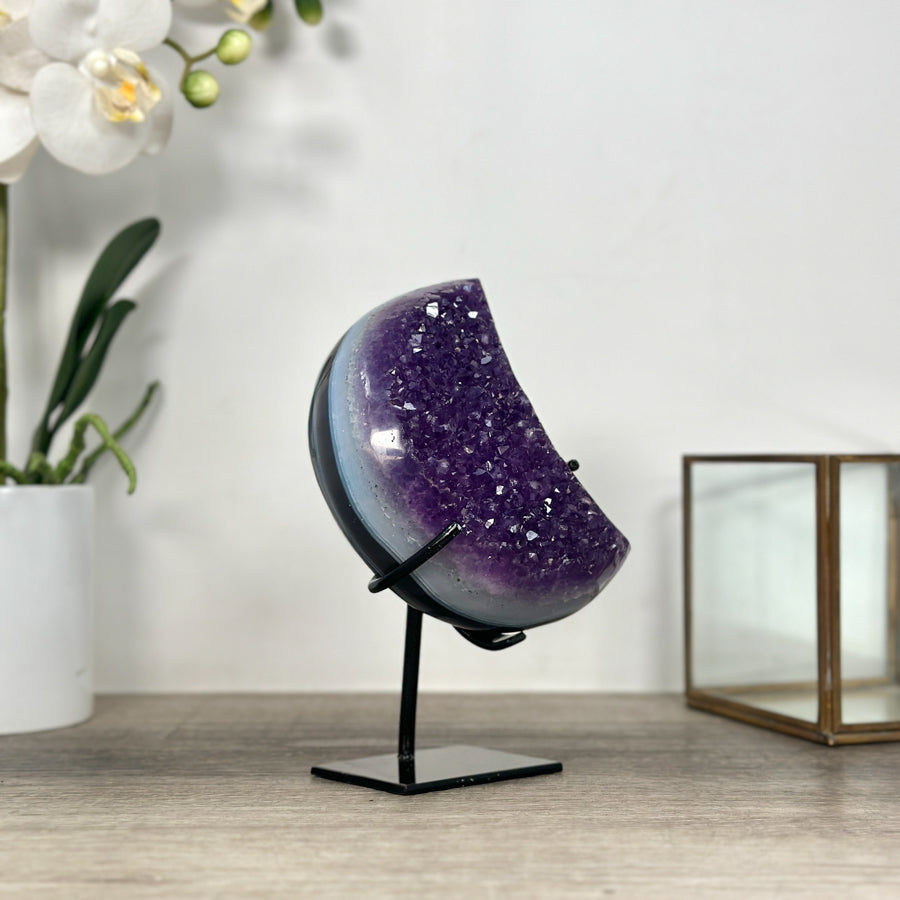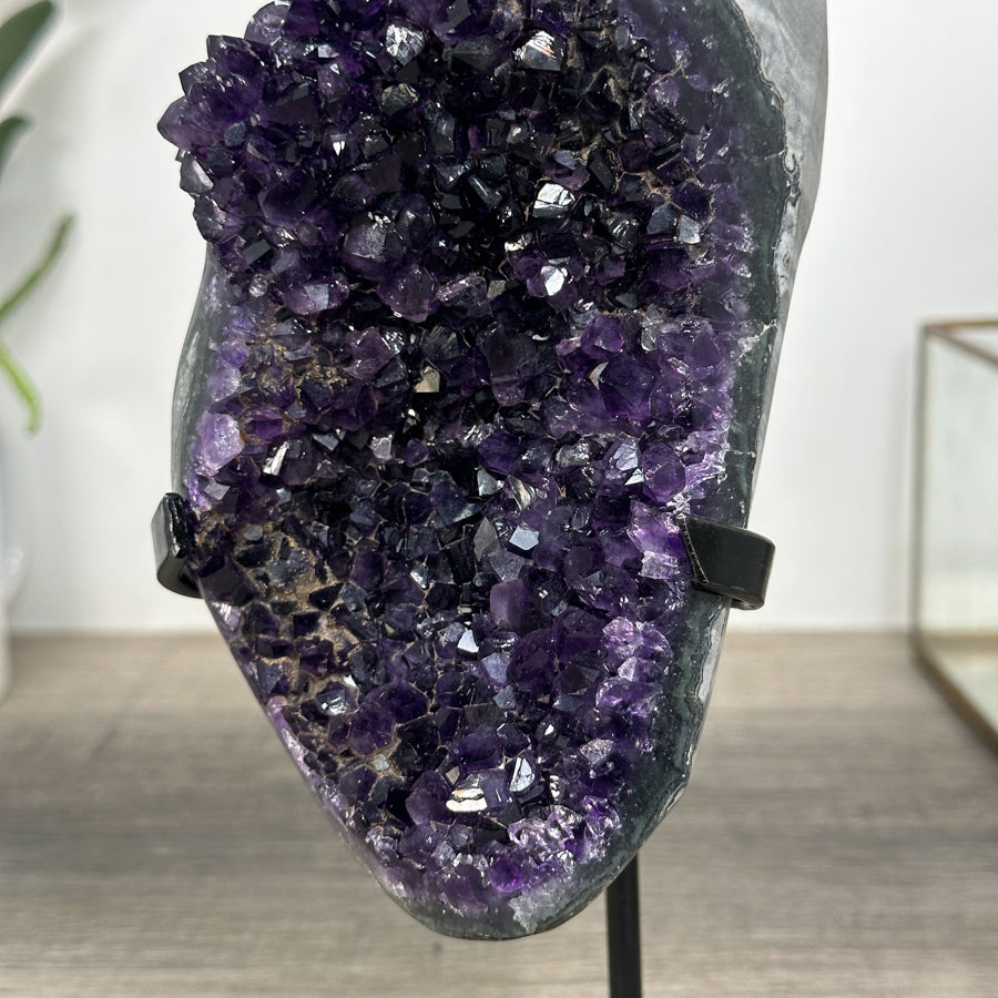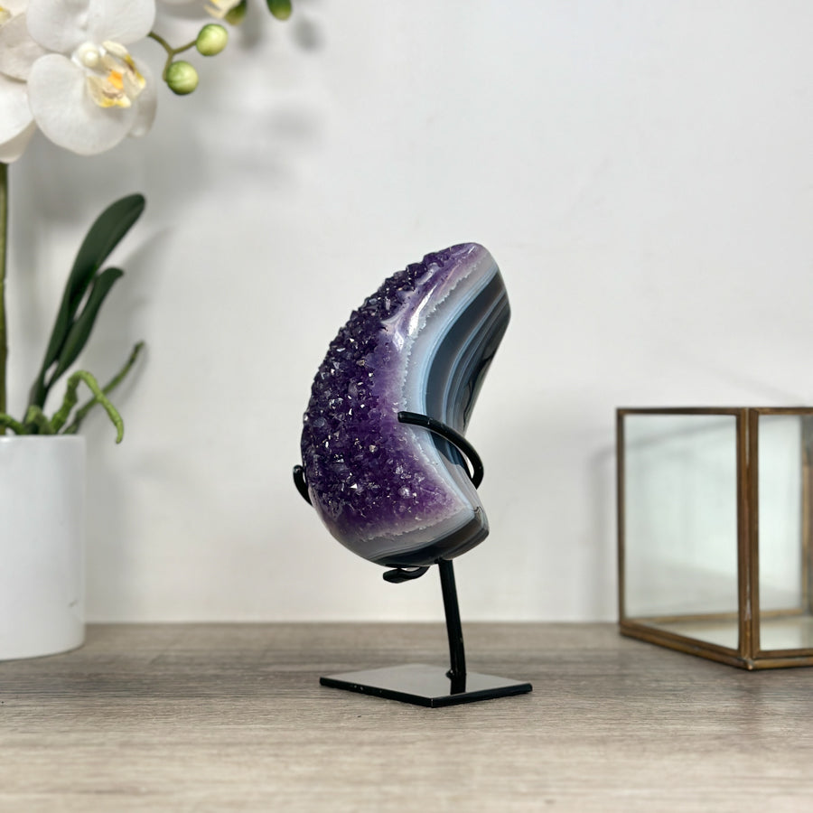 These carefully selected minerals are expertly mounted on handmade metal stands, allowing them to be displayed proudly in any room. With their stunning natural colors and unique characteristics, these mineral pieces will add a touch of elegance and sophistication to any space.