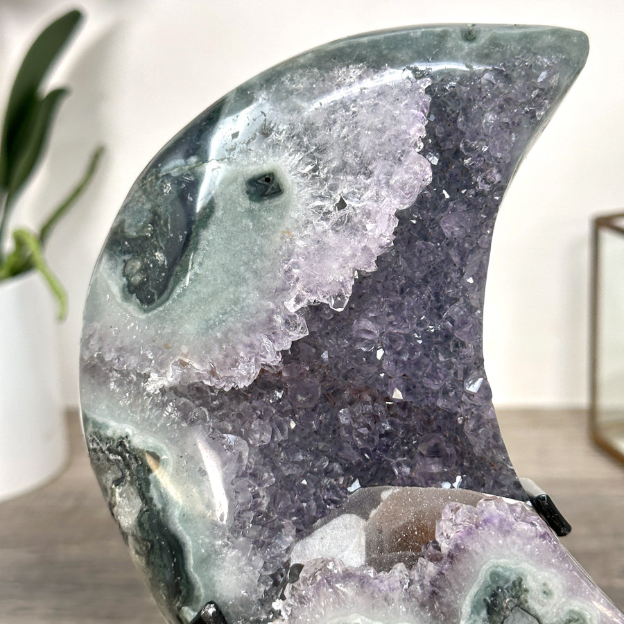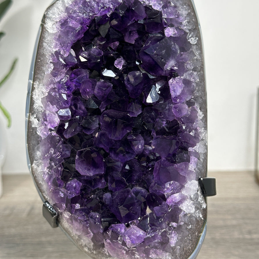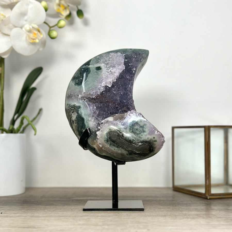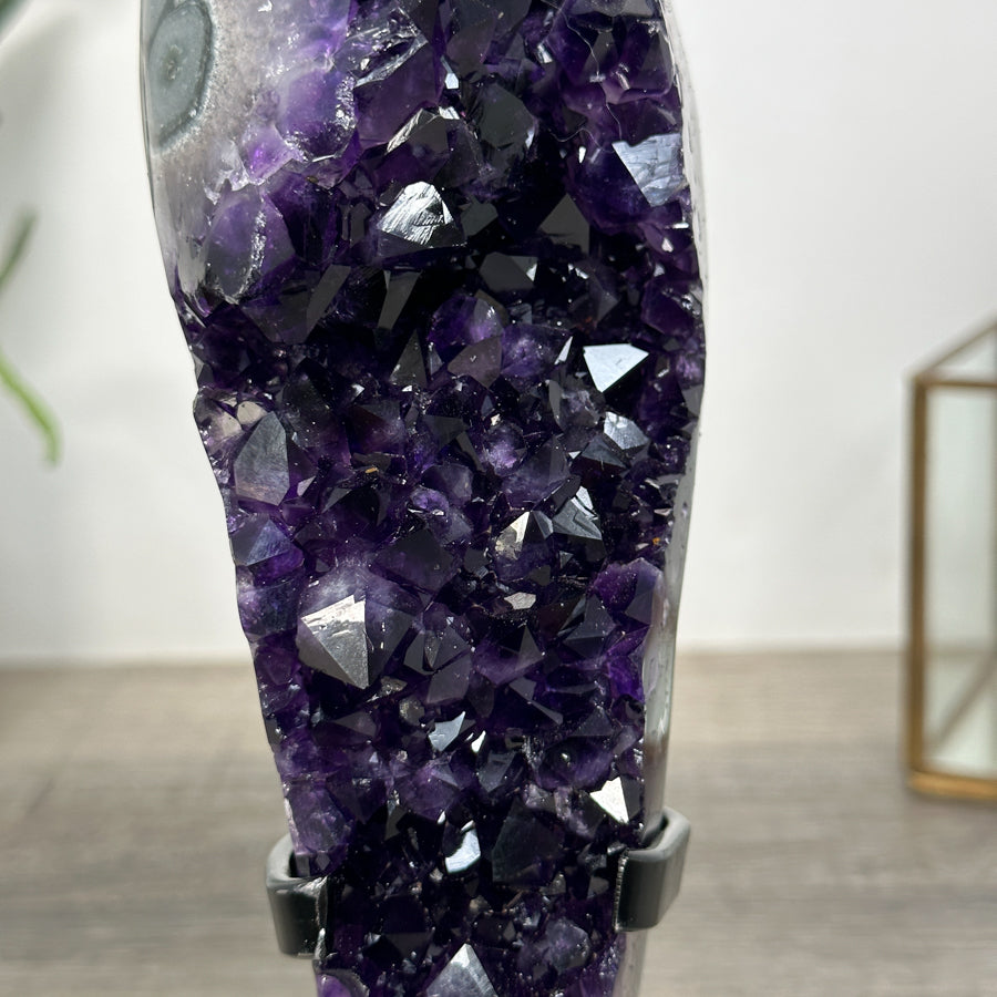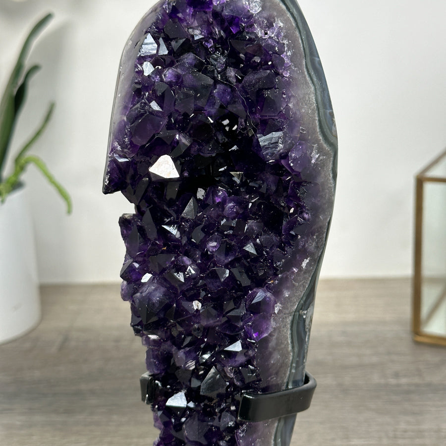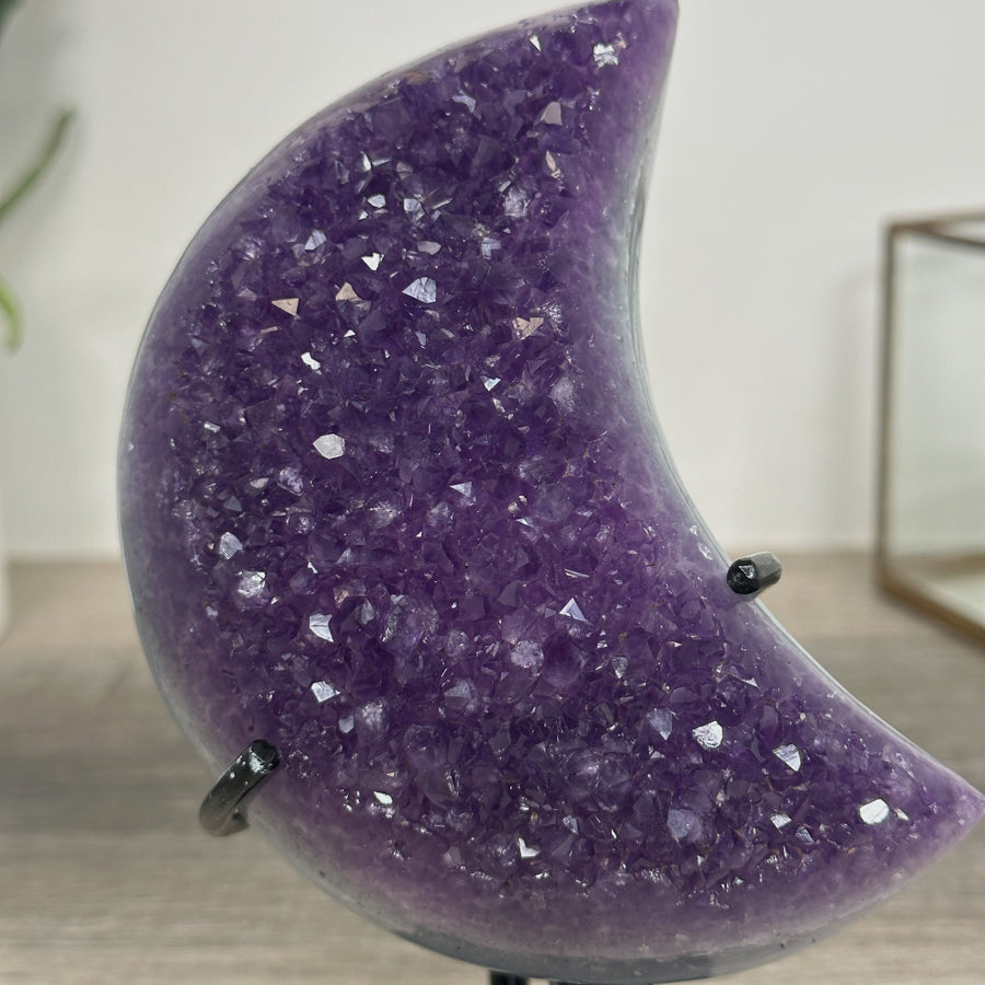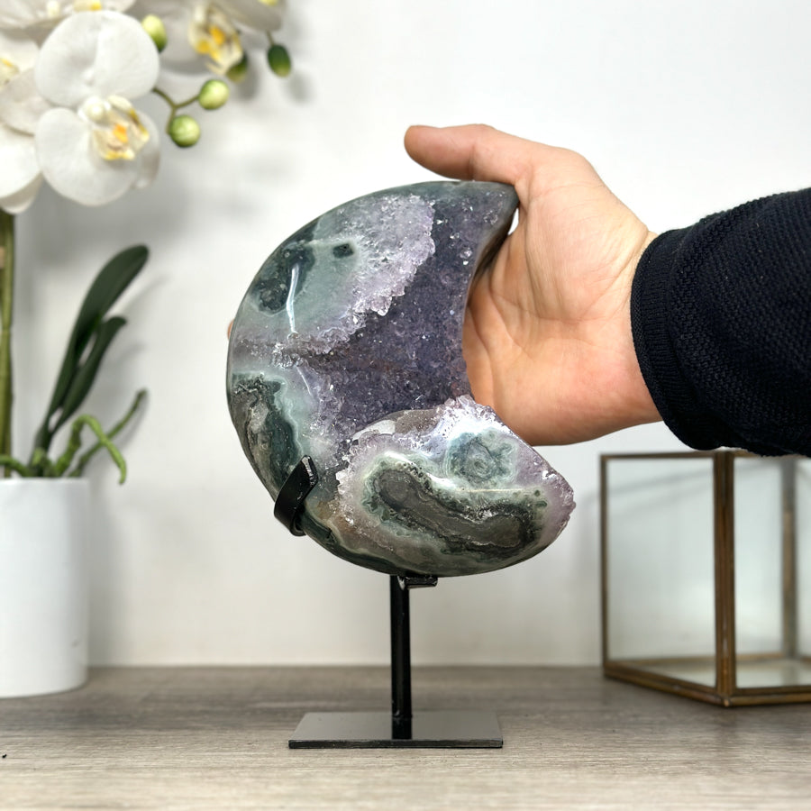 These carefully selected minerals are expertly mounted on handmade metal stands, allowing them to be displayed proudly in any room. With their stunning natural colors and unique characteristics, these mineral pieces will add a touch of elegance and sophistication to any space.