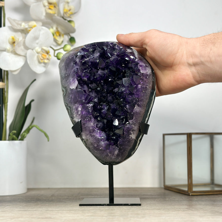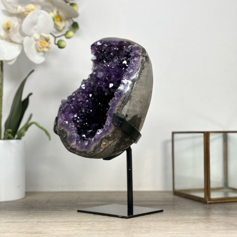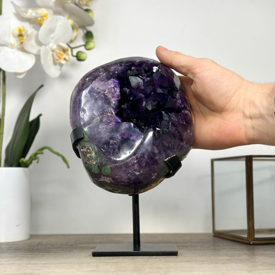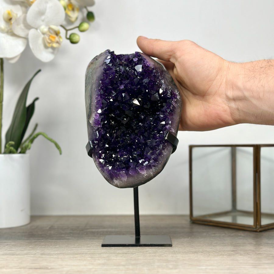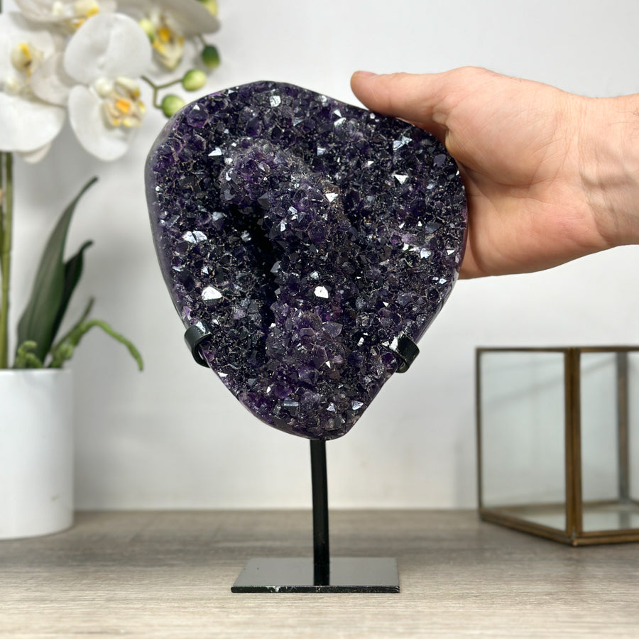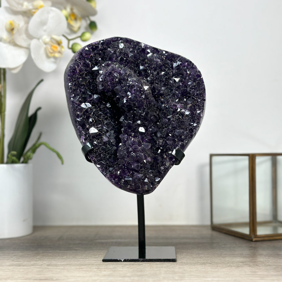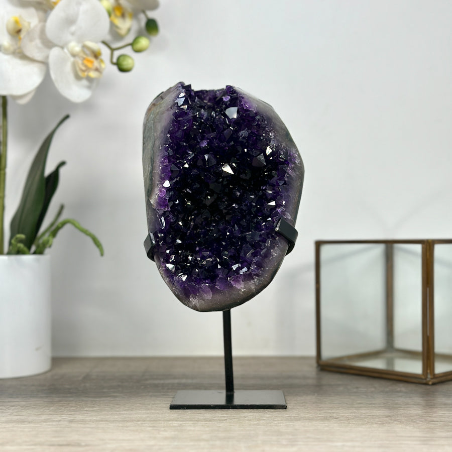 These carefully selected minerals are expertly mounted on handmade metal stands, allowing them to be displayed proudly in any room. With their stunning natural colors and unique characteristics, these mineral pieces will add a touch of elegance and sophistication to any space.
