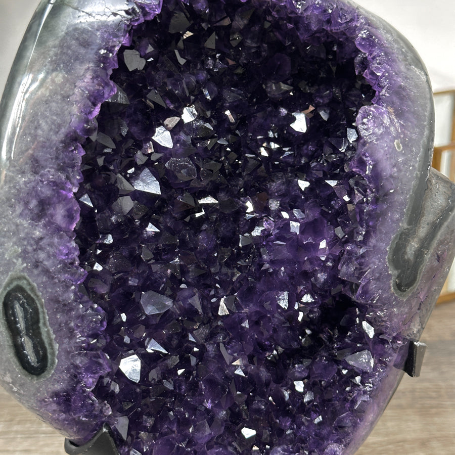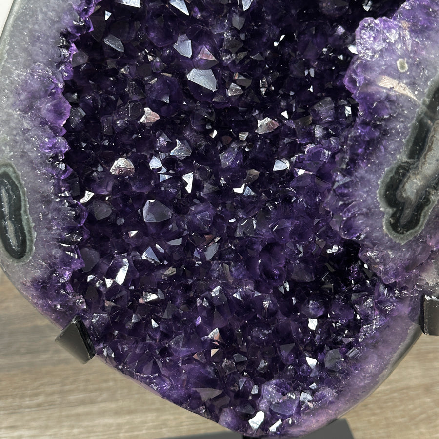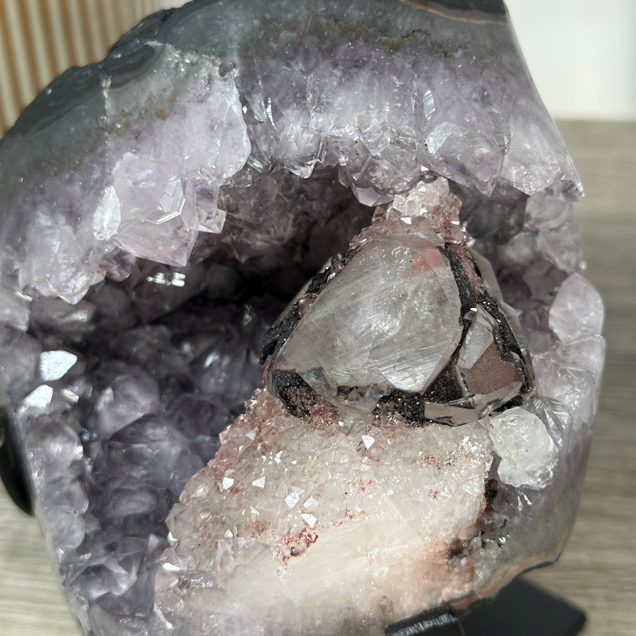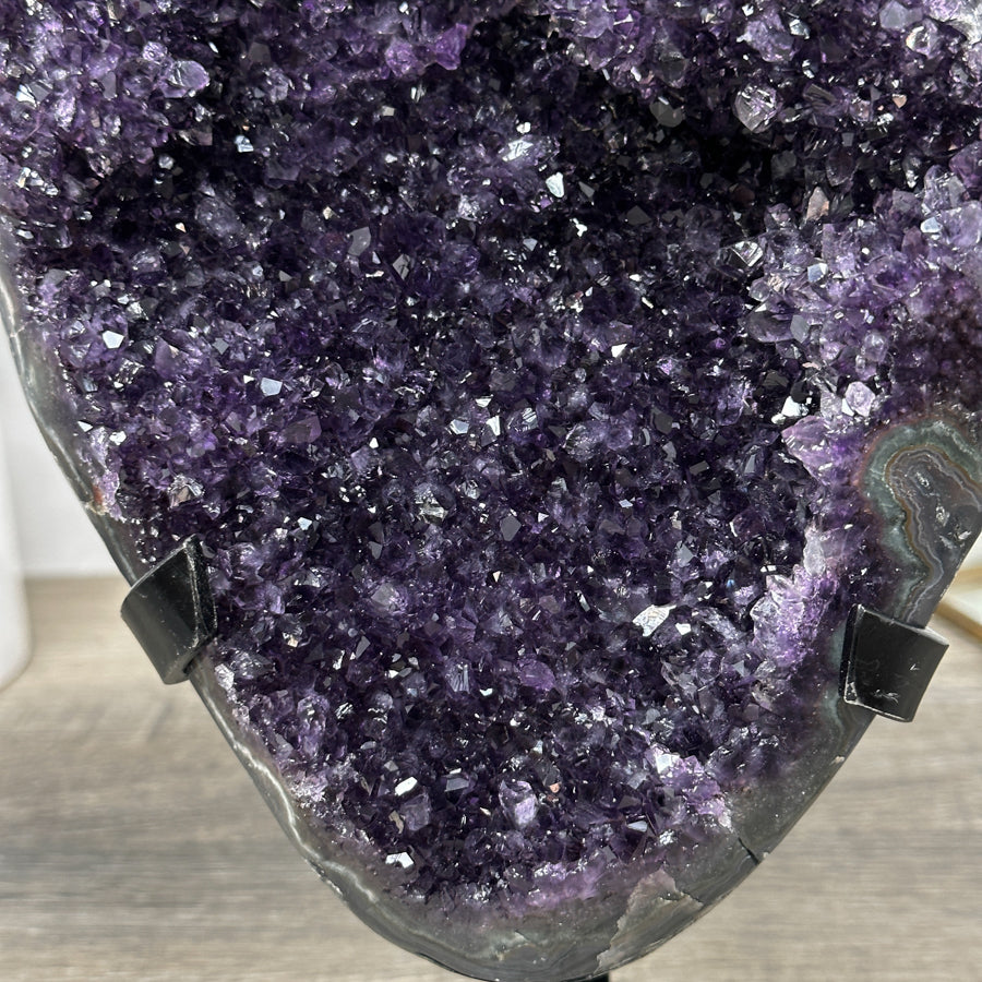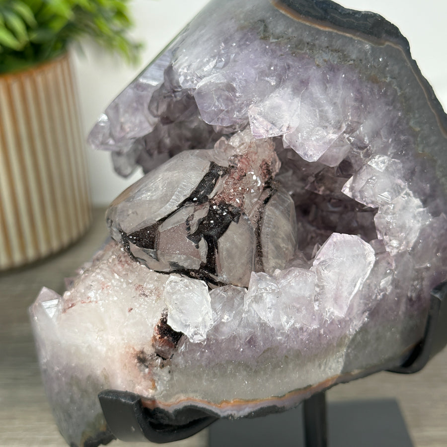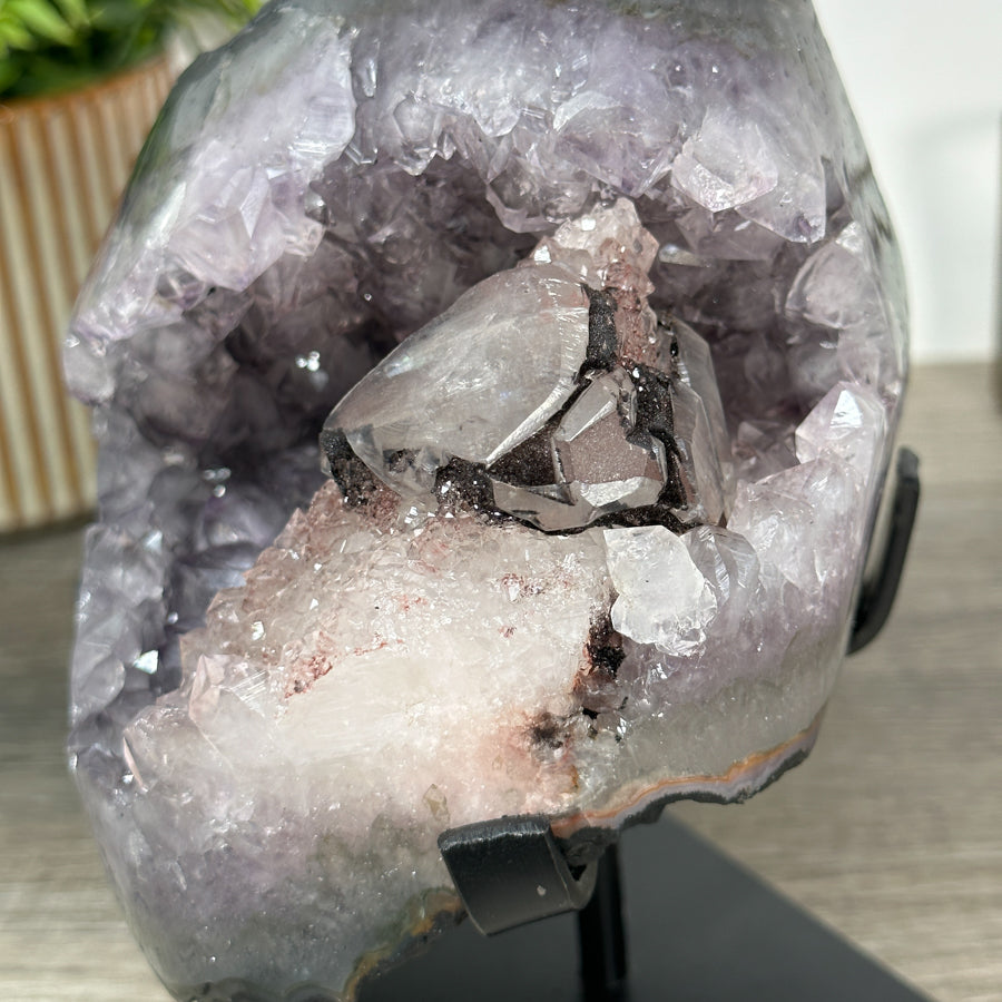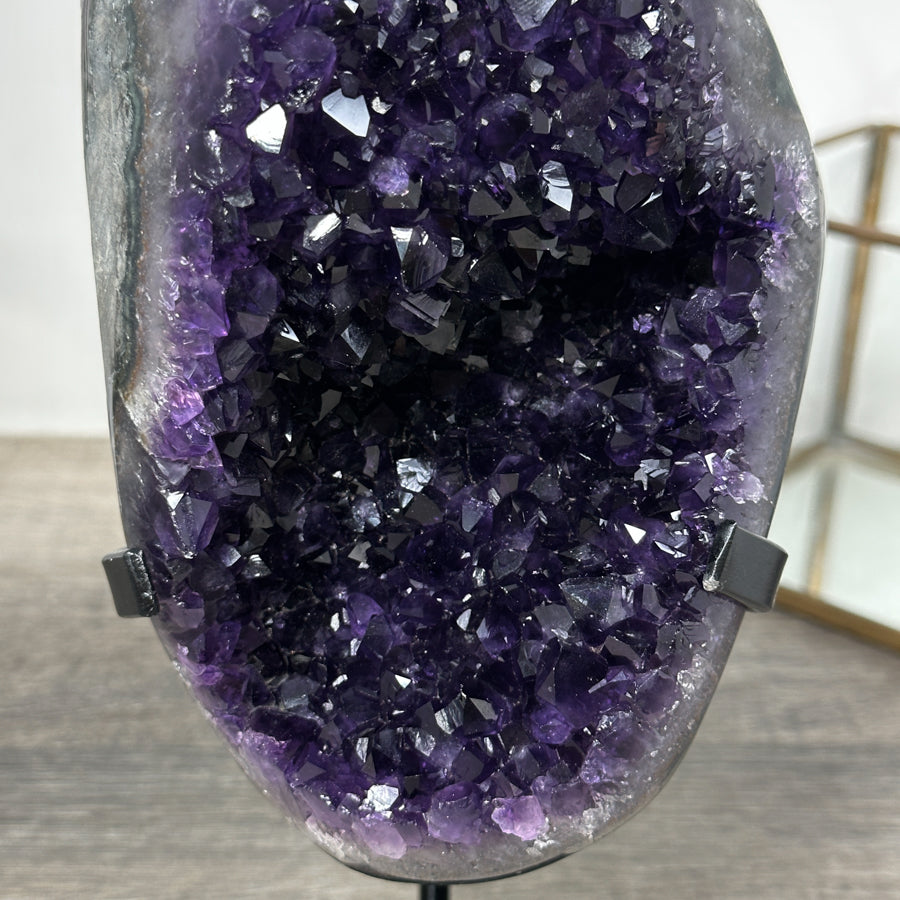 These carefully selected minerals are expertly mounted on handmade metal stands, allowing them to be displayed proudly in any room. With their stunning natural colors and unique characteristics, these mineral pieces will add a touch of elegance and sophistication to any space.