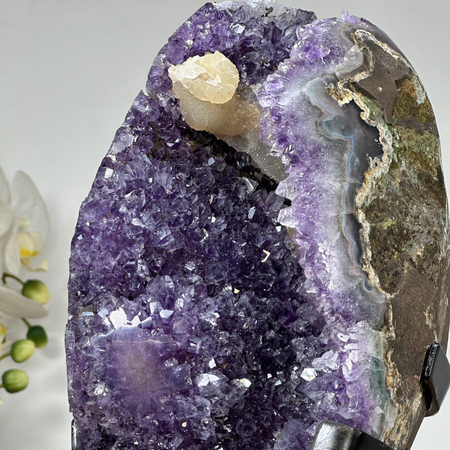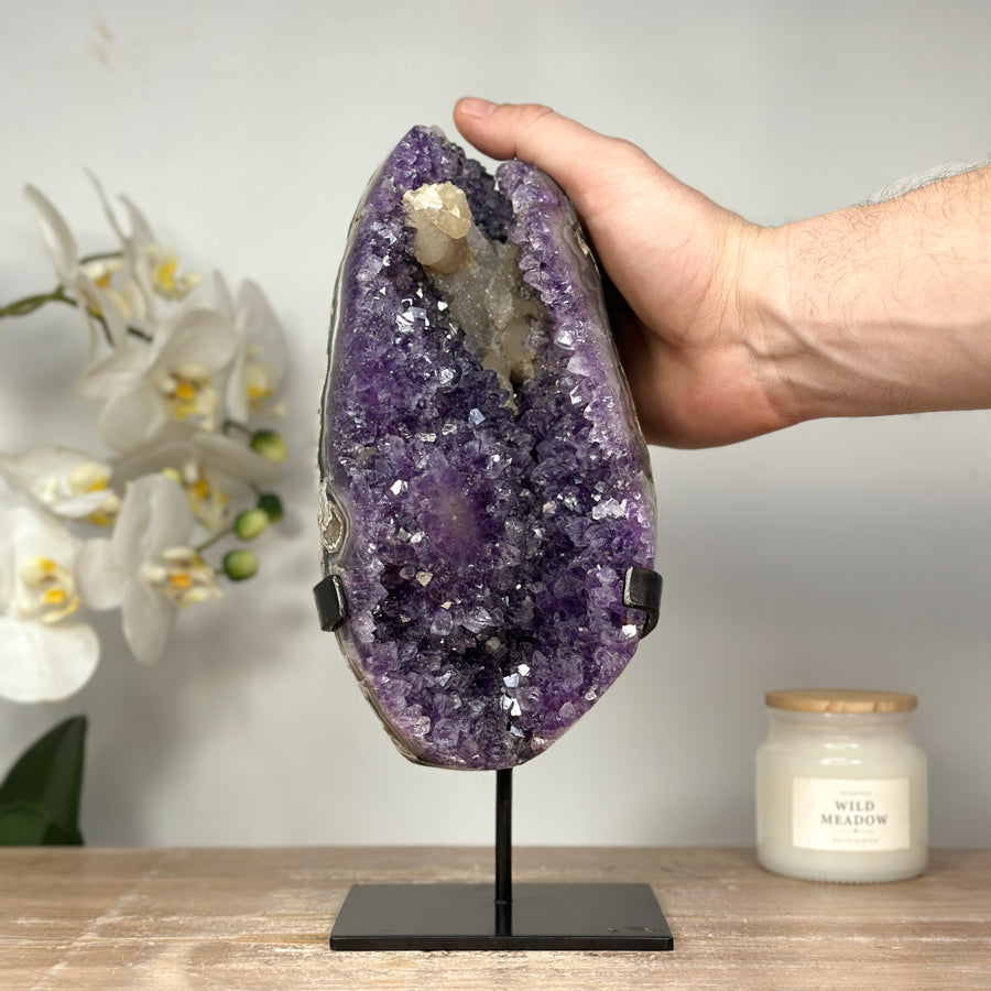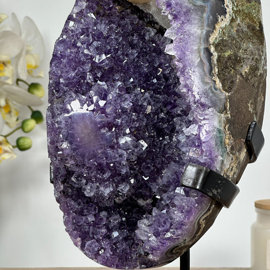 These carefully selected minerals are expertly mounted on handmade metal stands, allowing them to be displayed proudly in any room. With their stunning natural colors and unique characteristics, these mineral pieces will add a touch of elegance and sophistication to any space.