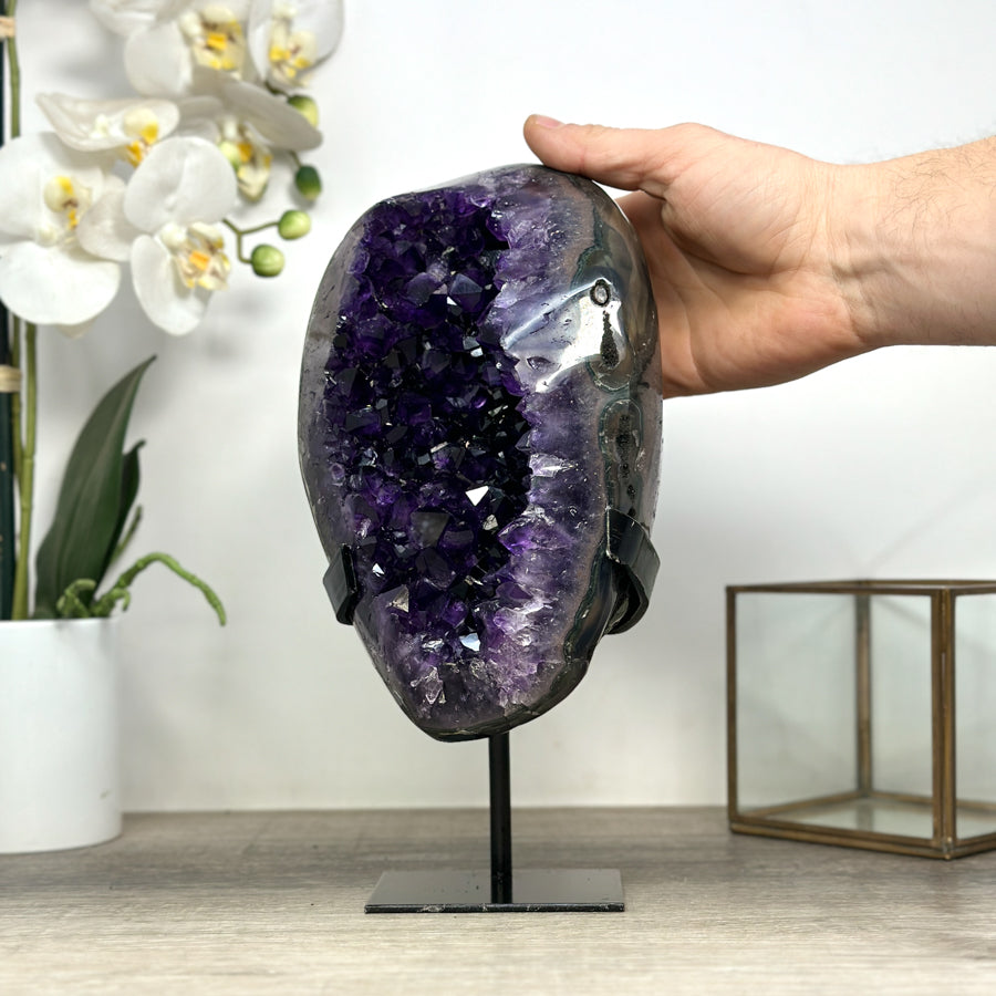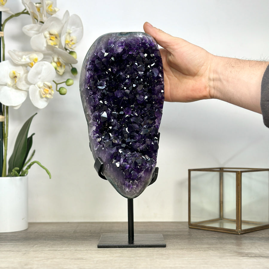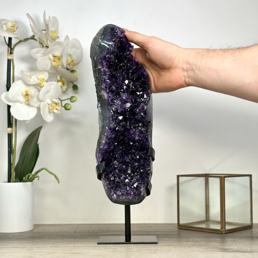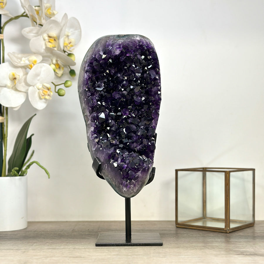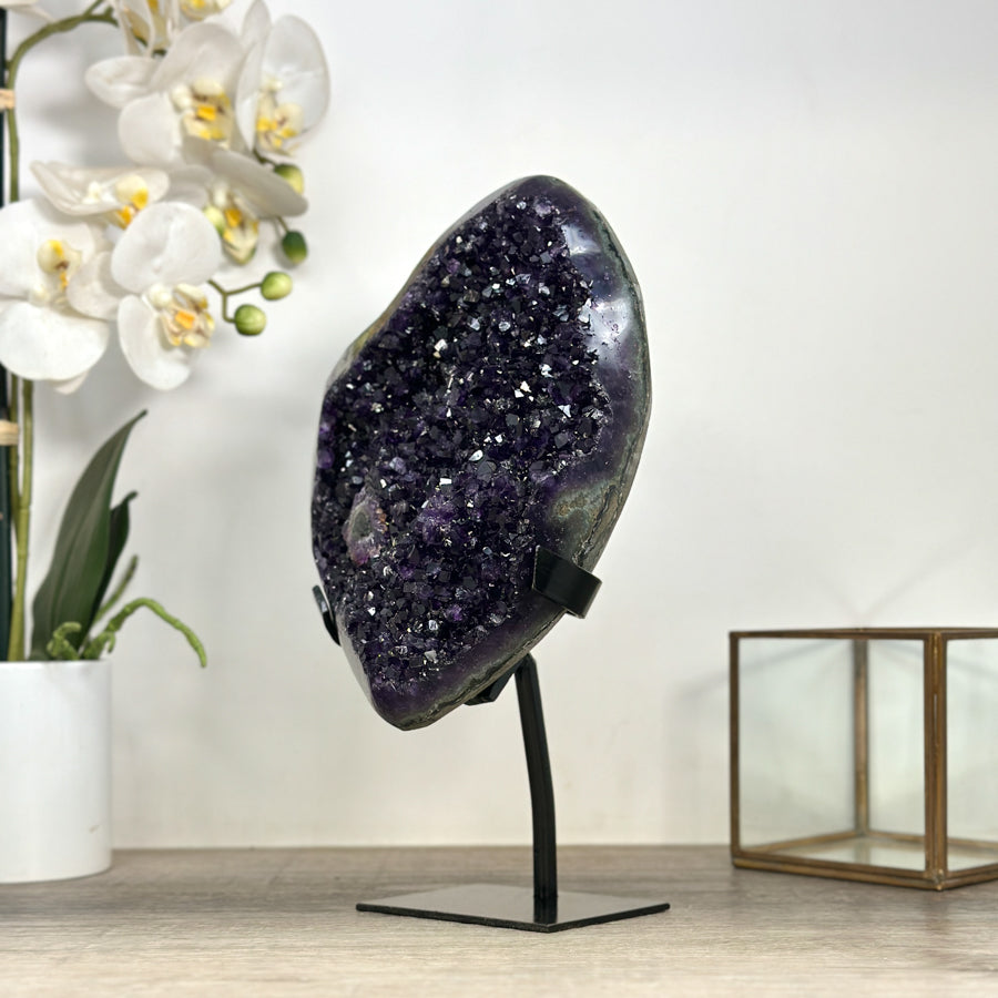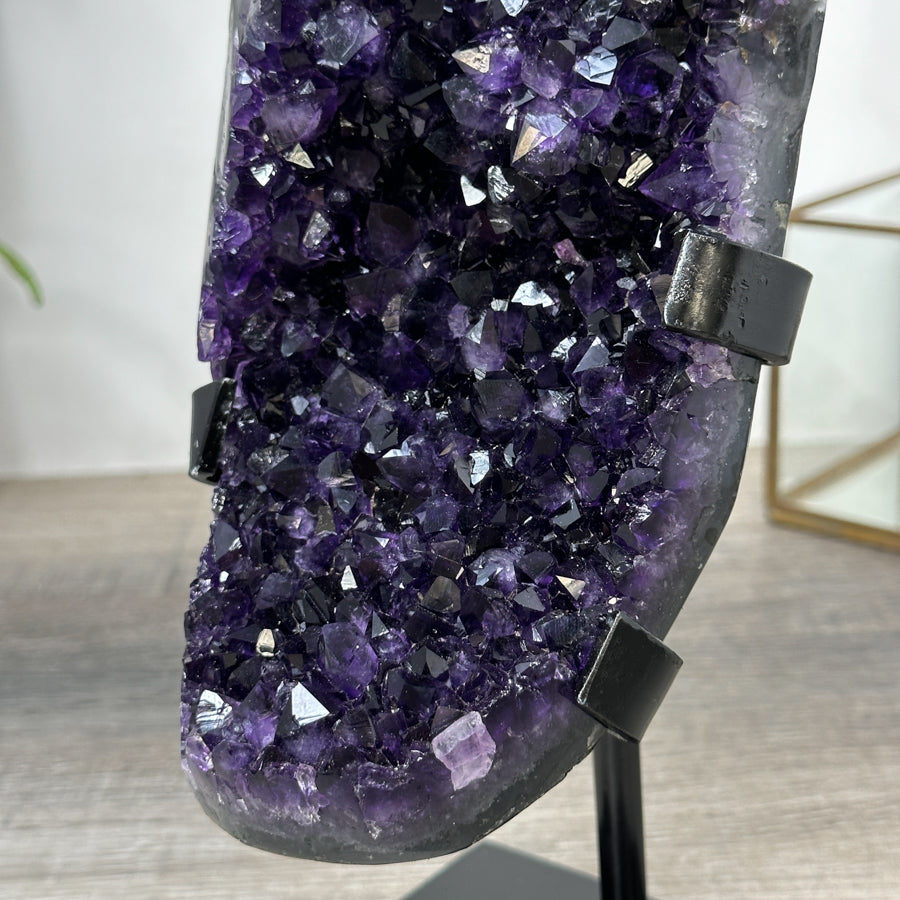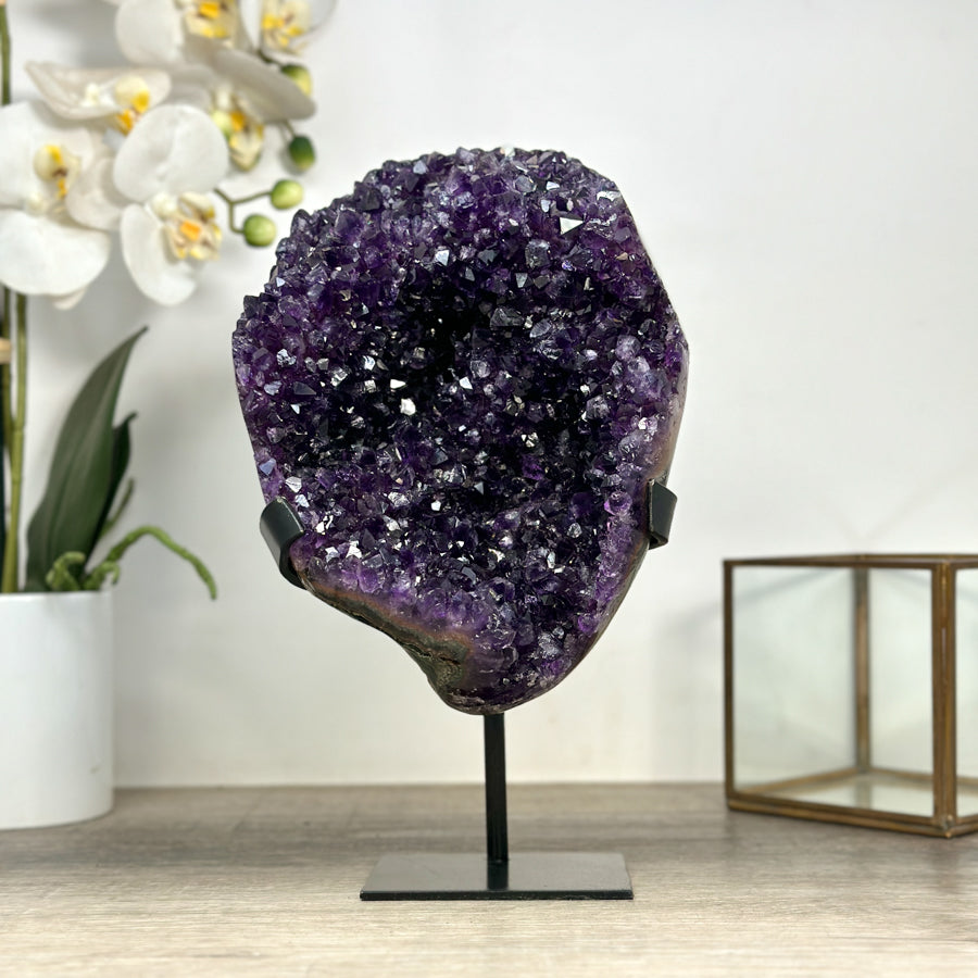These carefully selected minerals are expertly mounted on handmade metal stands, allowing them to be displayed proudly in any room. With their stunning natural colors and unique characteristics, these mineral pieces will add a touch of elegance and sophistication to any space.